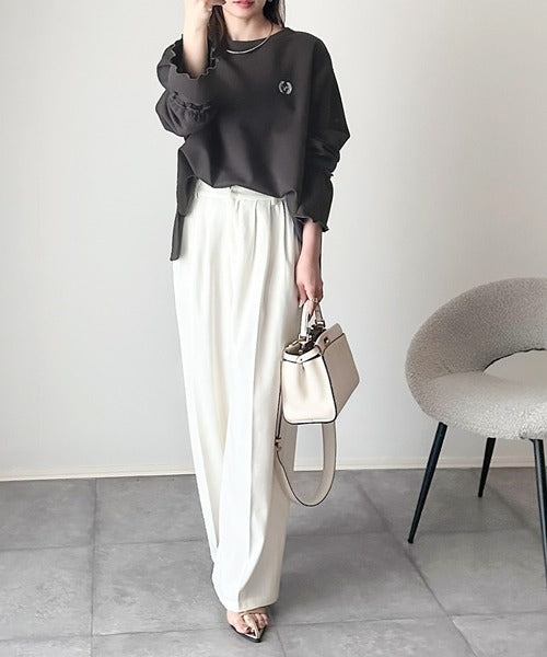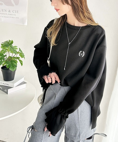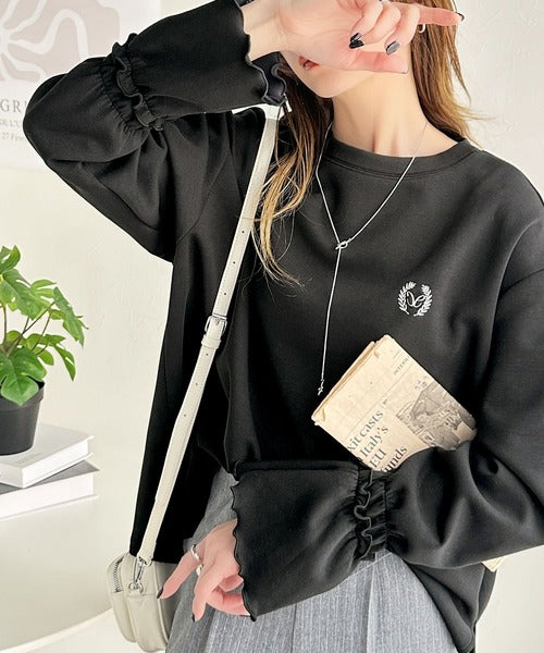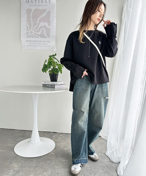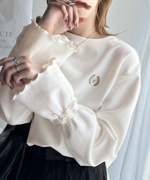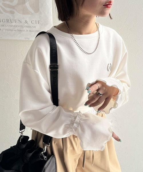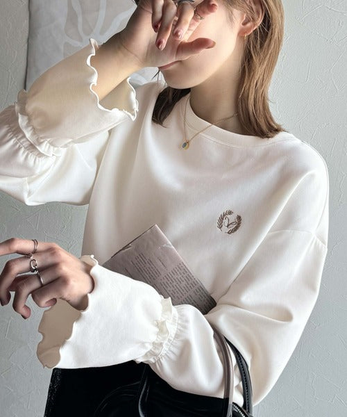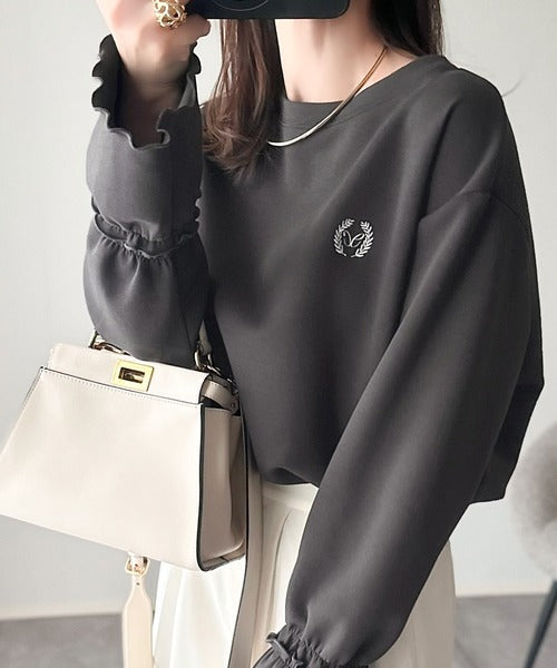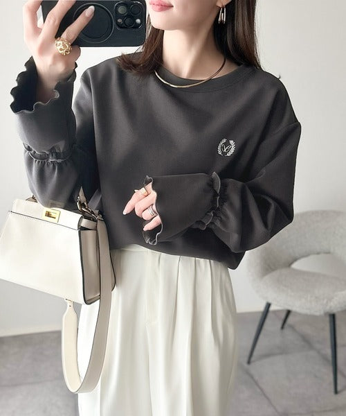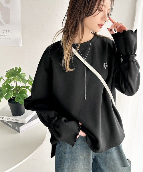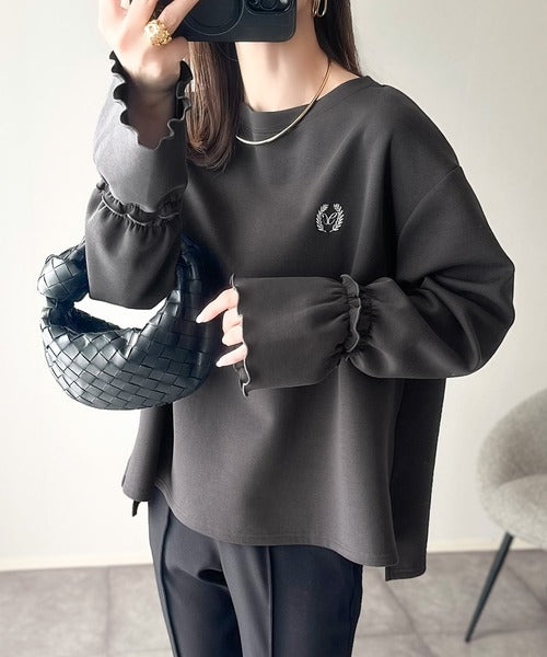 ワンポイントで魅せる大人可愛い。ワンポイントロゴ刺繍キャンディースリーブダンボールニットカットソー(長袖) ce1110110