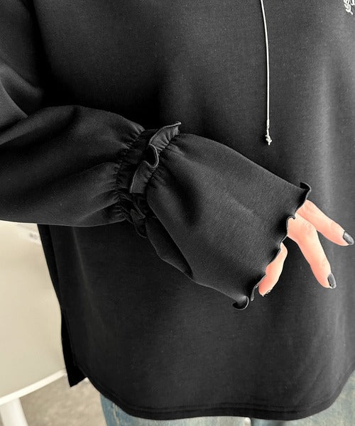 袖口にはメローフリルをあしらい、動きのあるデザインで