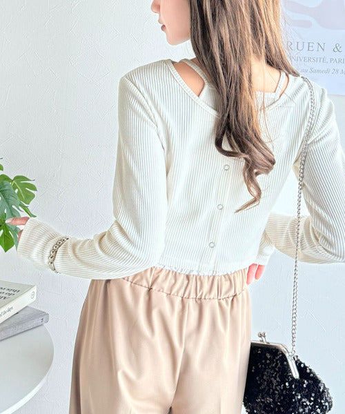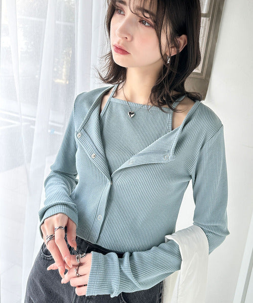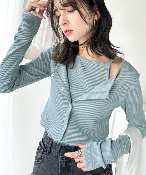 マルチwayに楽しむ♪着回し自在なテレコリブ素材カーディガンセットアンサンブル(長袖) ce1240061