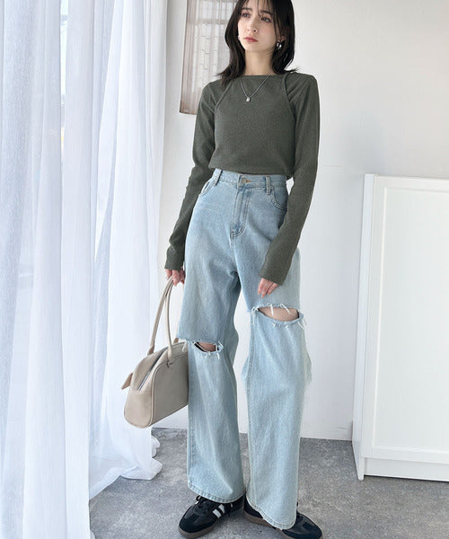 ボトムはダメージデニムパンツと合わせて、
