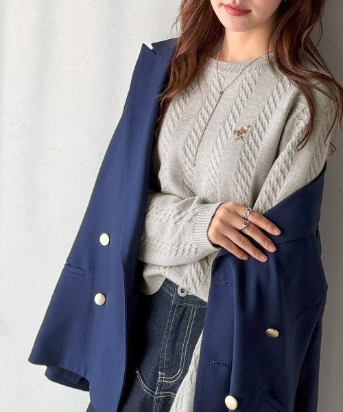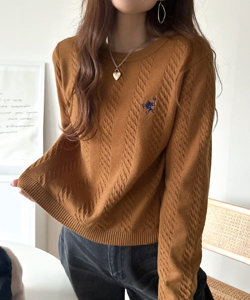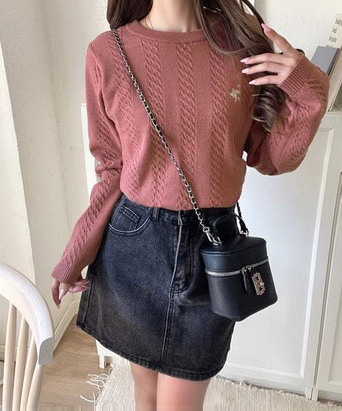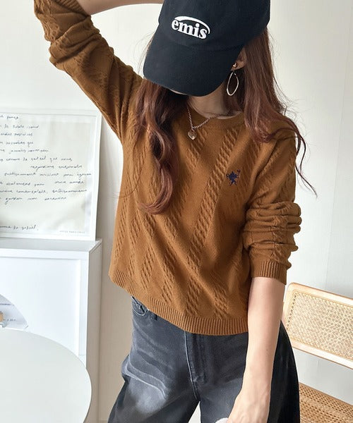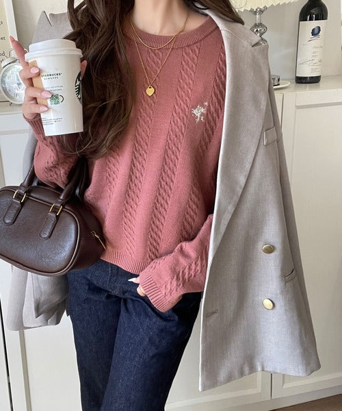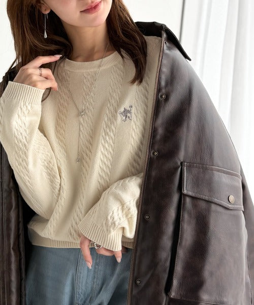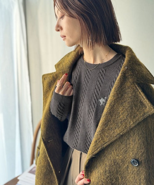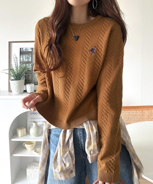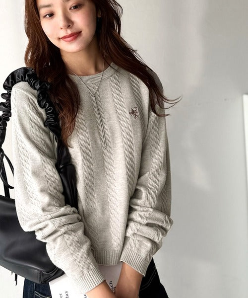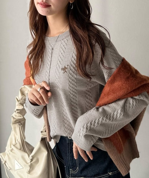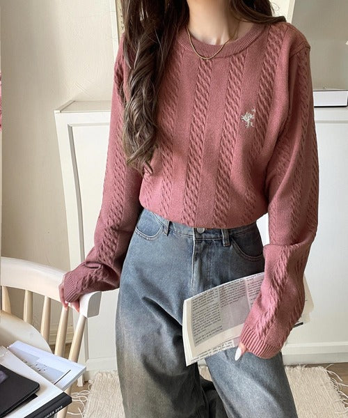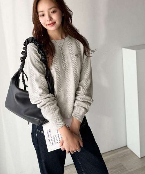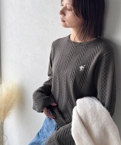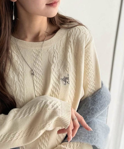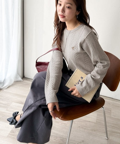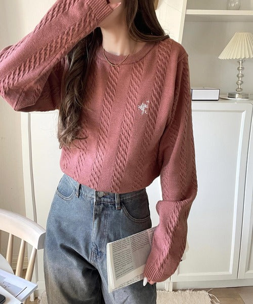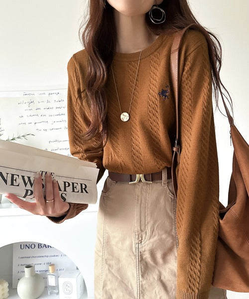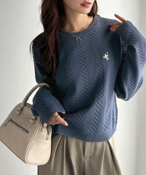 大人のためのコンパクトニット。胸刺繍ショート丈ケーブル編みニット(長袖) ce1260453