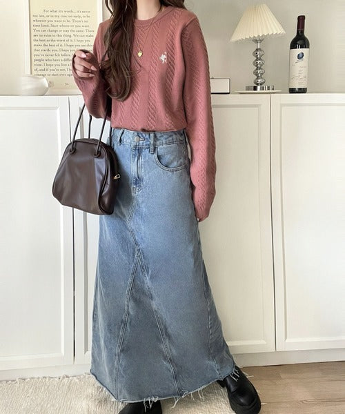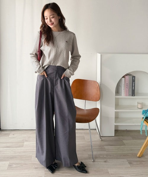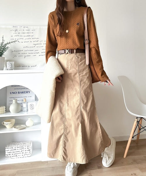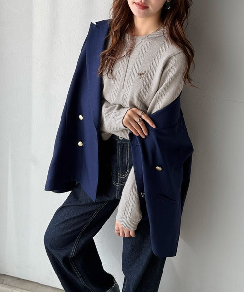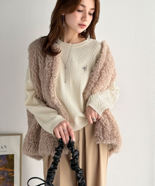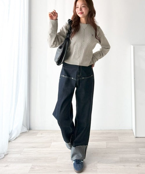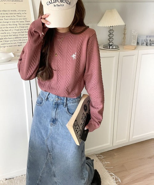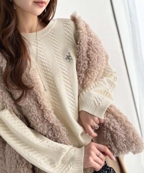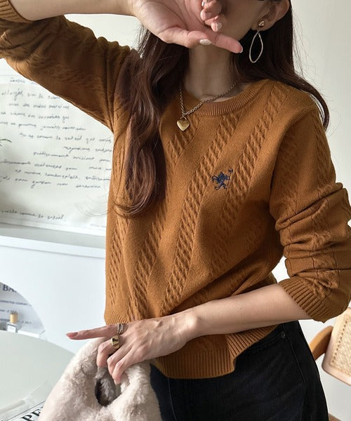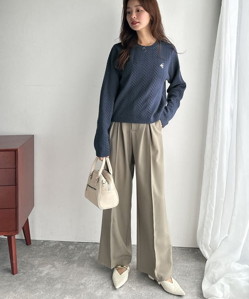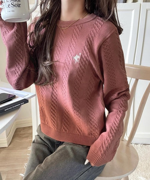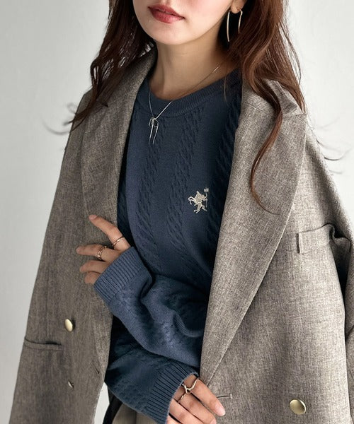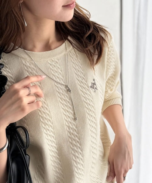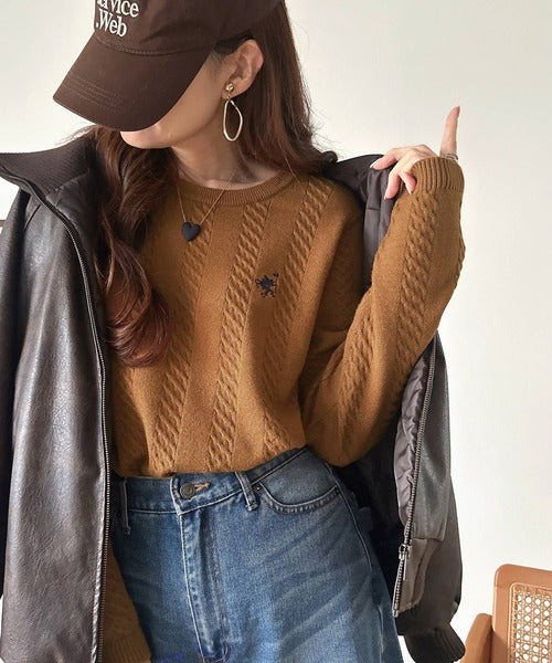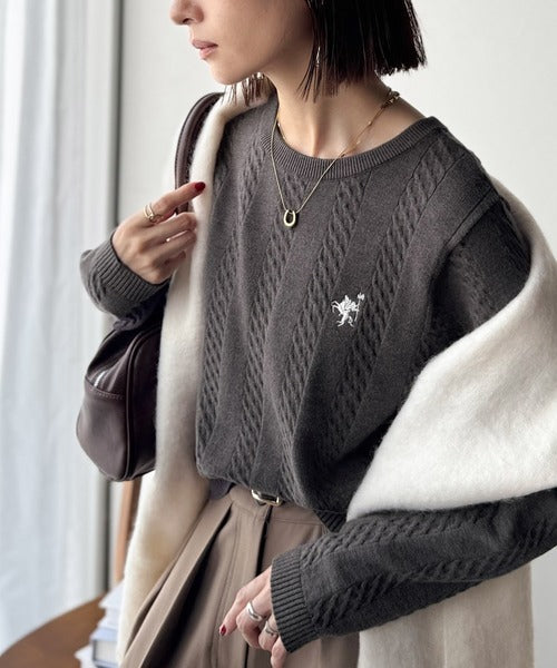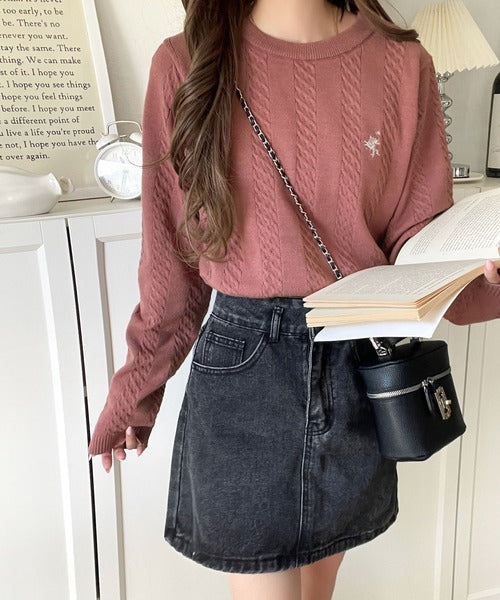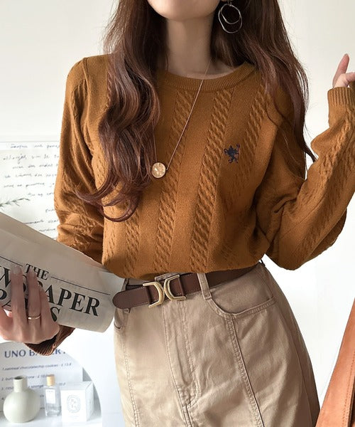 大人のためのコンパクトニット。胸刺繍ショート丈ケーブル編みニット(長袖) ce1260453