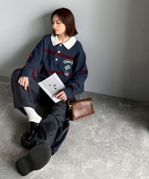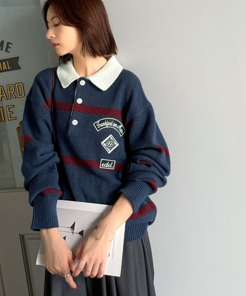 新しいスタイルを提案するワッペンデザインラガーポロニット。