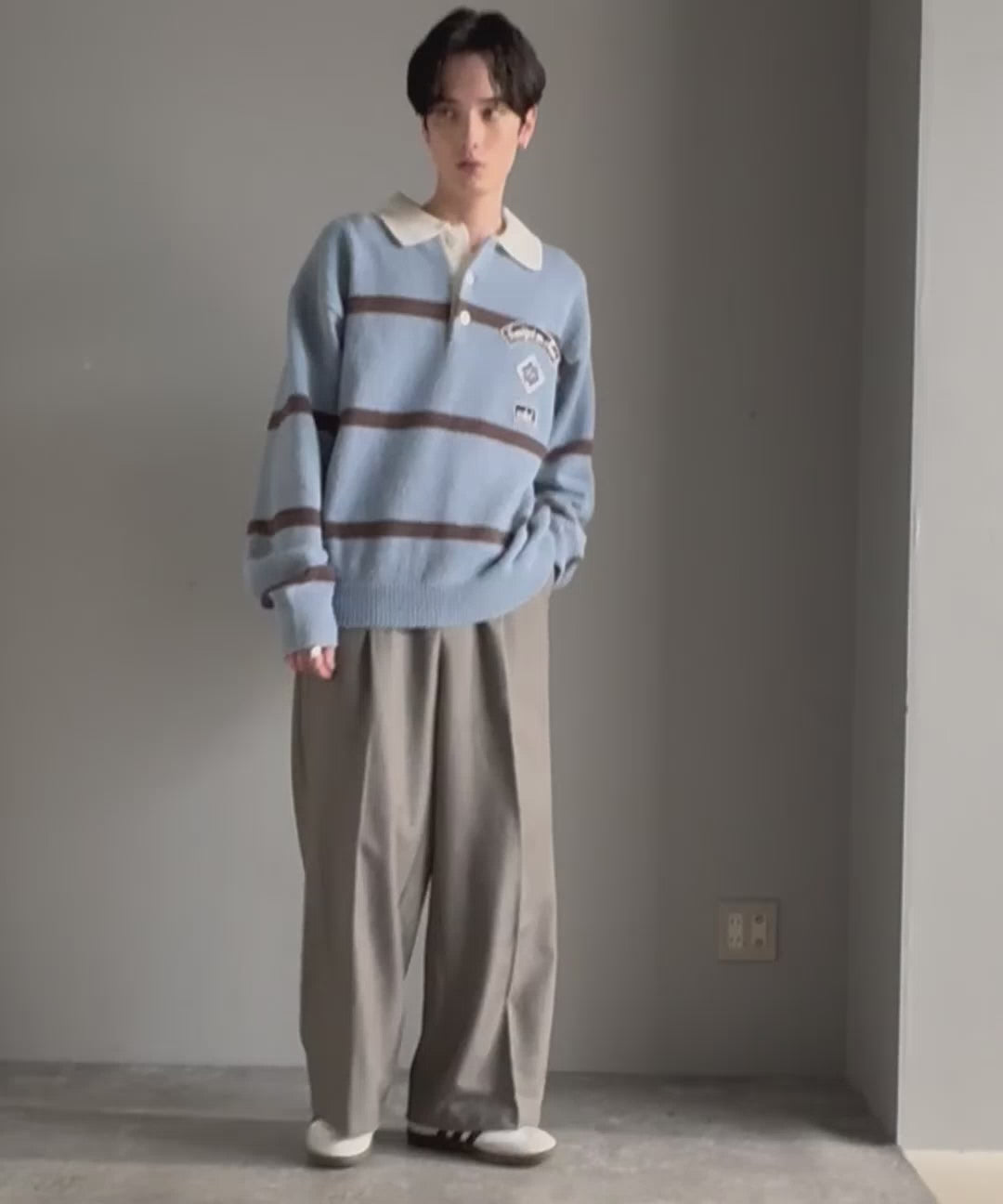トレンド感満載のラガーポロニット。軽やかなニット素材で、着心地も抜群。