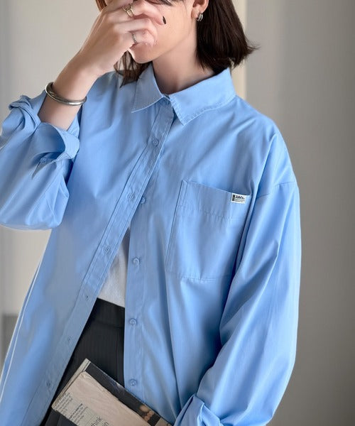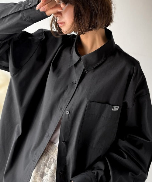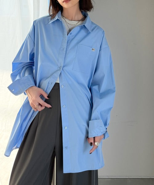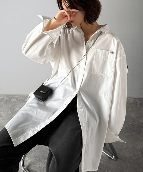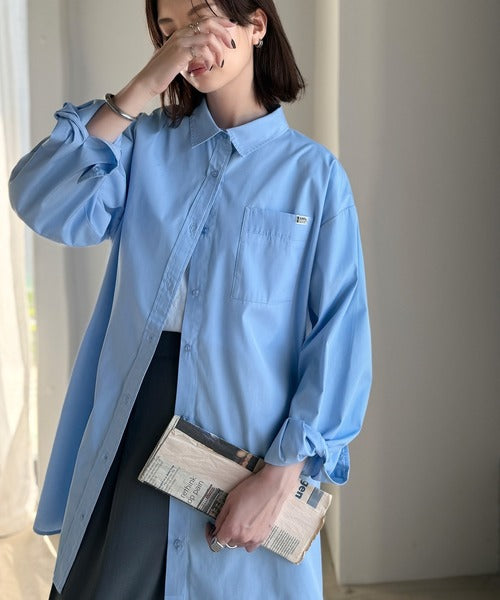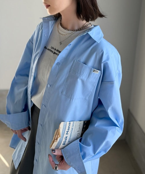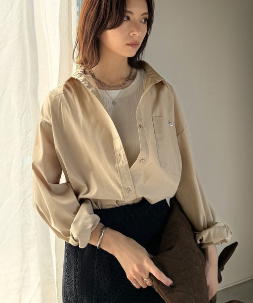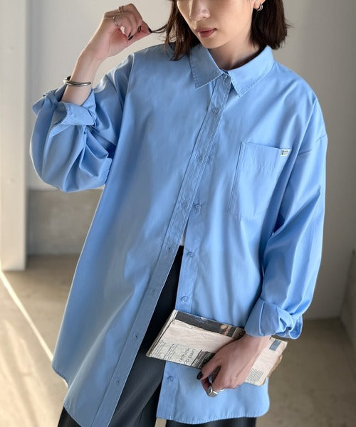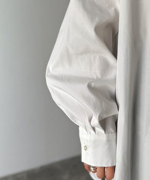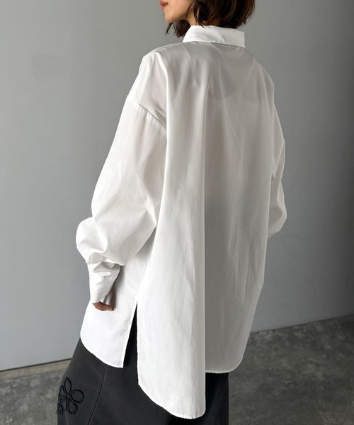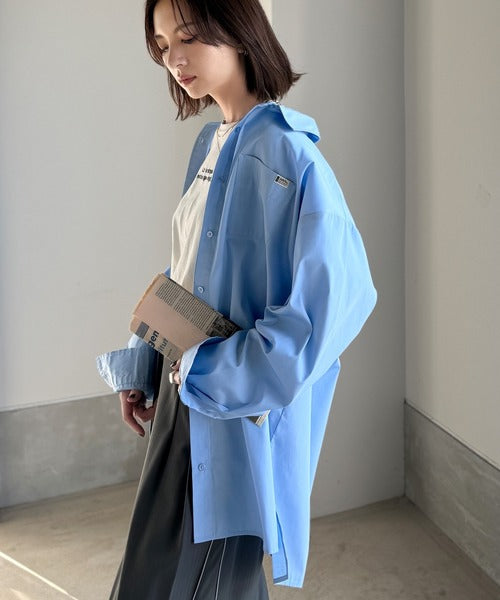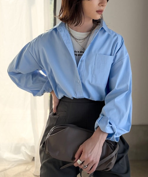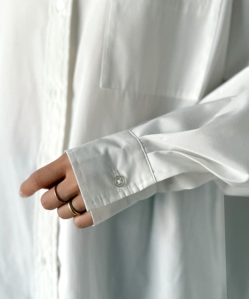 程よいハリとコシをもたせた素材を使用しているので、着た瞬間にシルエットがきれいに決まりやすいビッグシャツ。