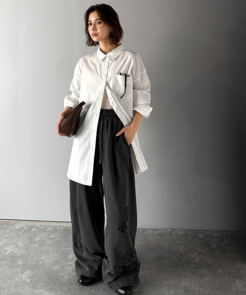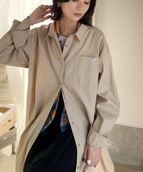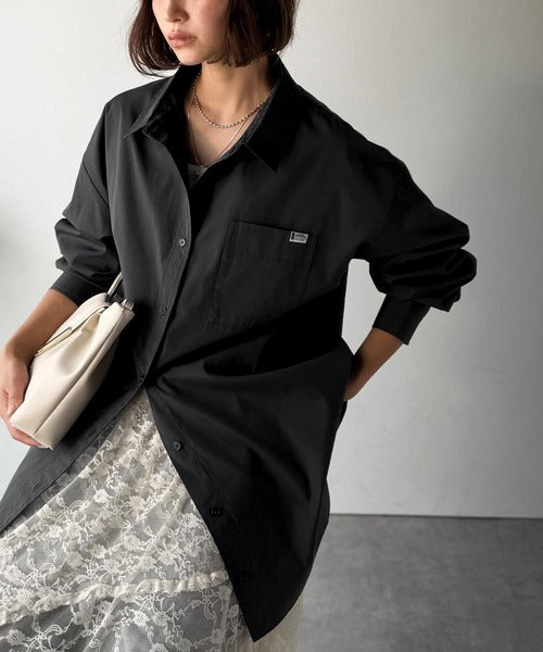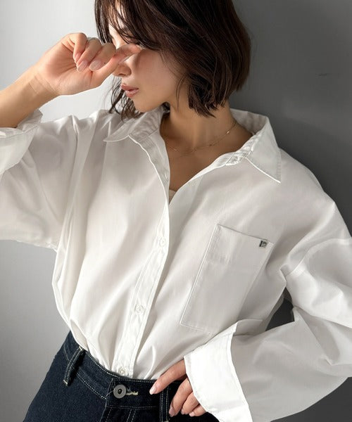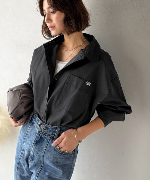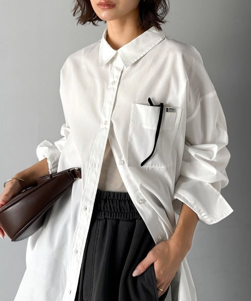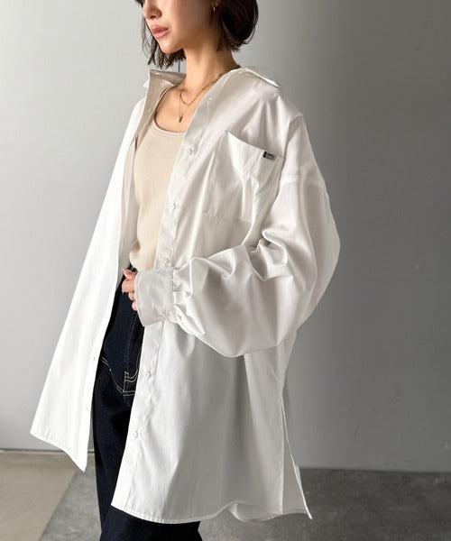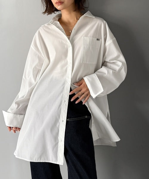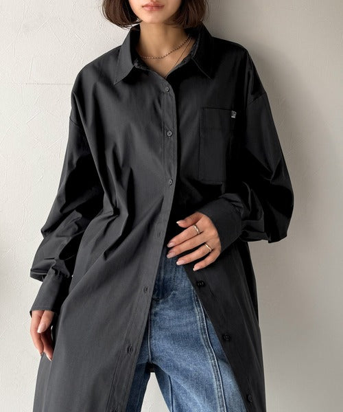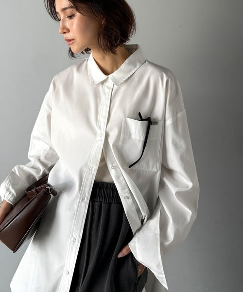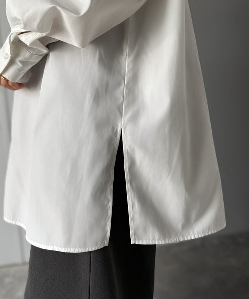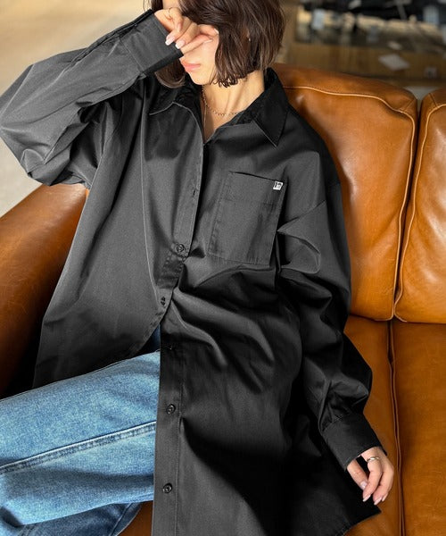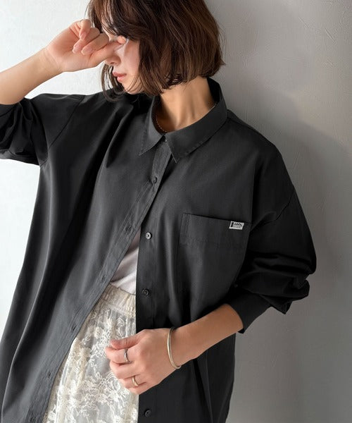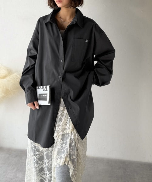 程よいハリとコシをもたせた素材を使用しているので、着た瞬間にシルエットがきれいに決まりやすいビッグシャツ。