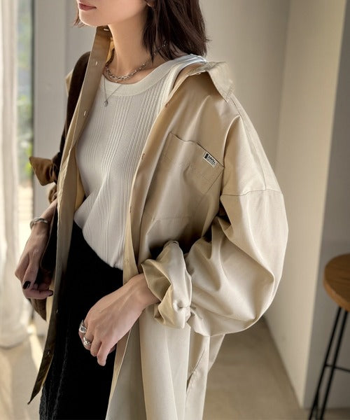 両サイドに深めのスリットを入れることで、前を閉じても開けても抜け感のあるスタイルが完成します。