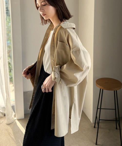 《JaVa ジャバコラボ》こなれ感を引き寄せる。胸ポケットつきサイドスリットビックシャツ(長袖) jv1010479