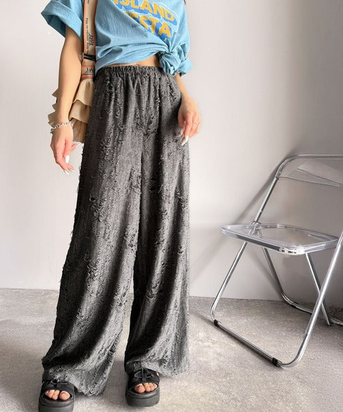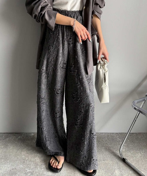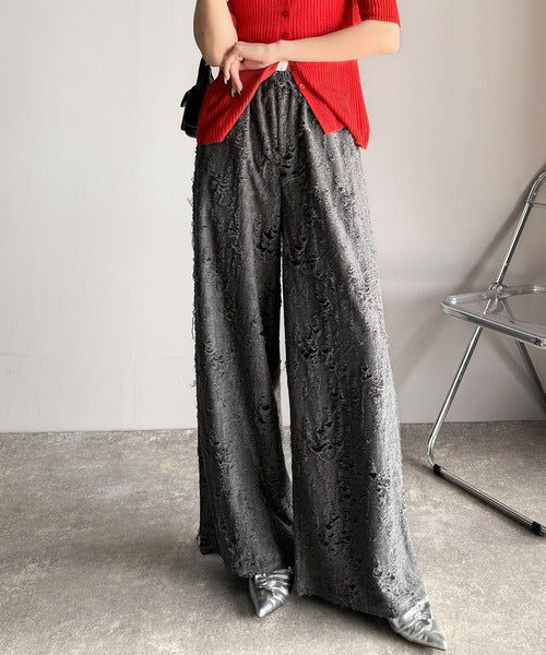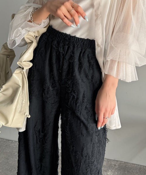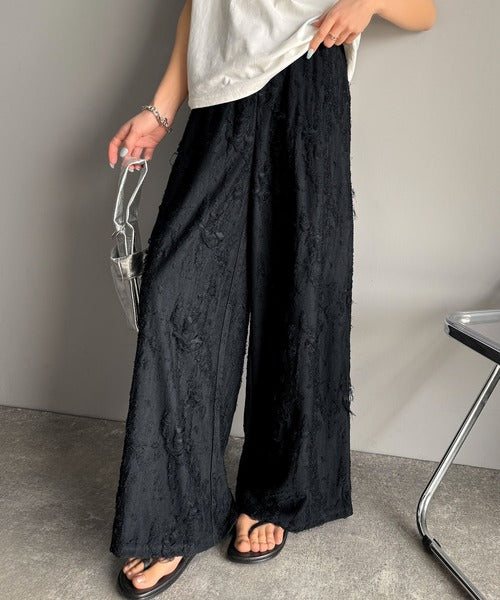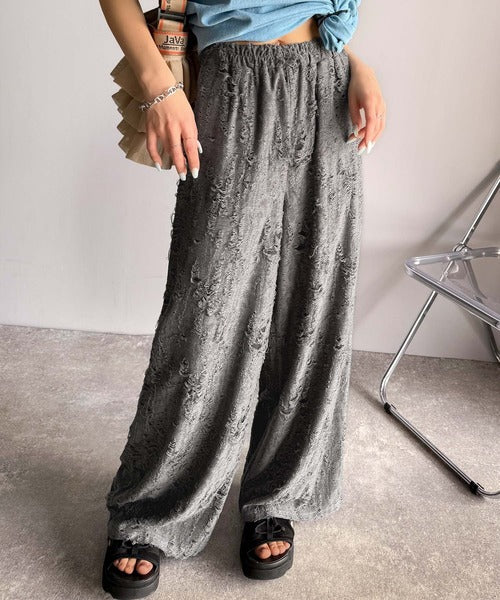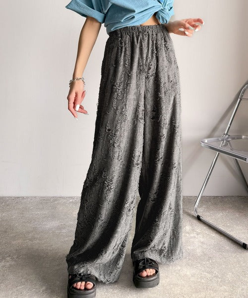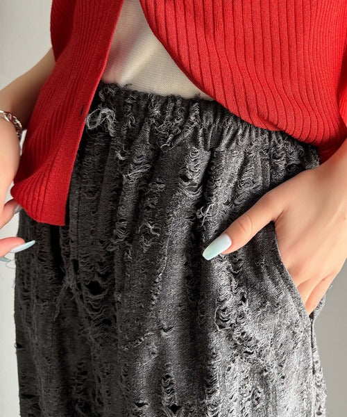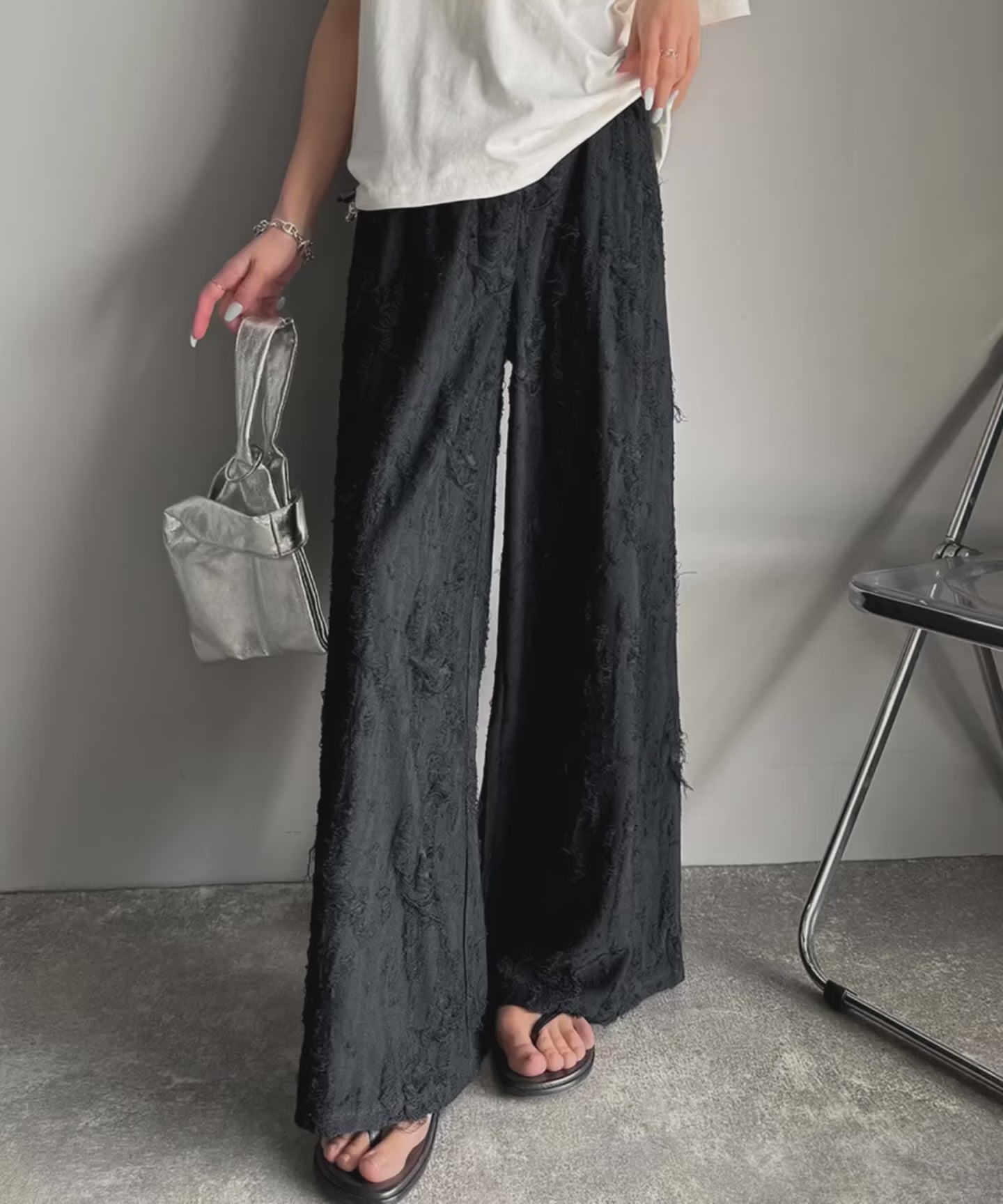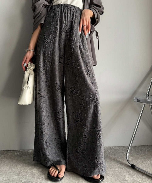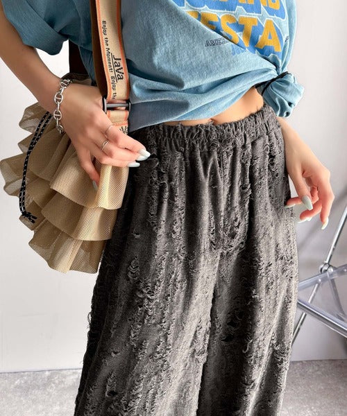 【mily bilet】旬なおしゃれダメージ加工。クラッシュジャガードワイドイージーパンツ mi1019087
