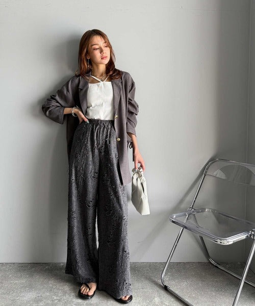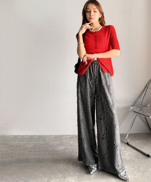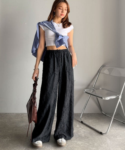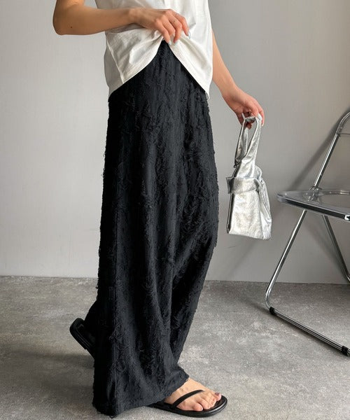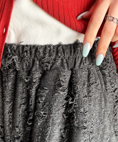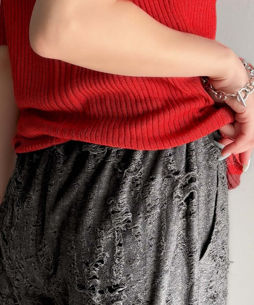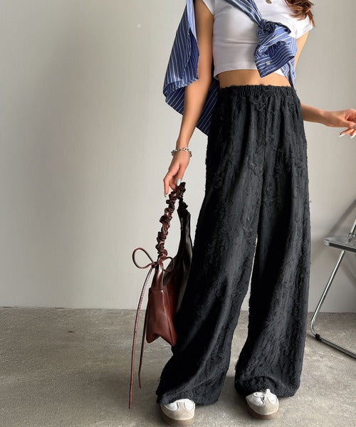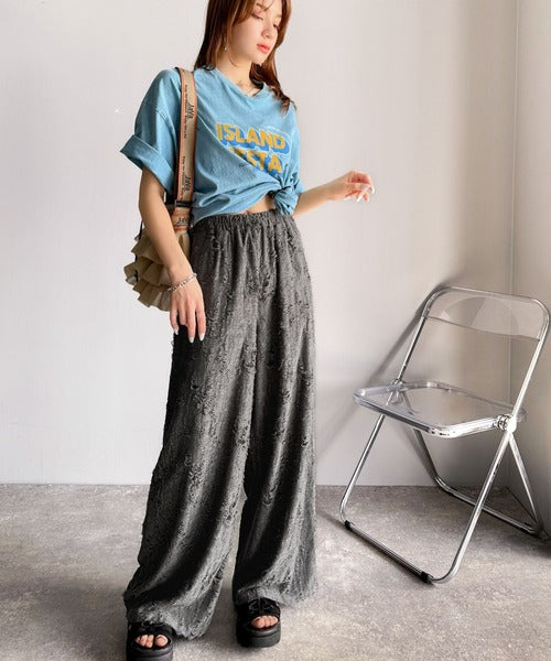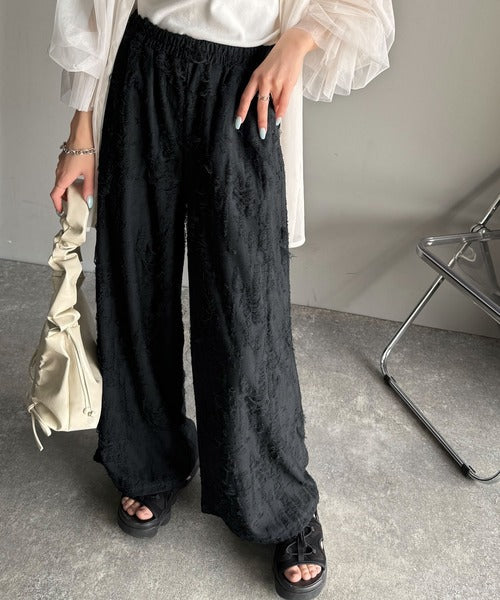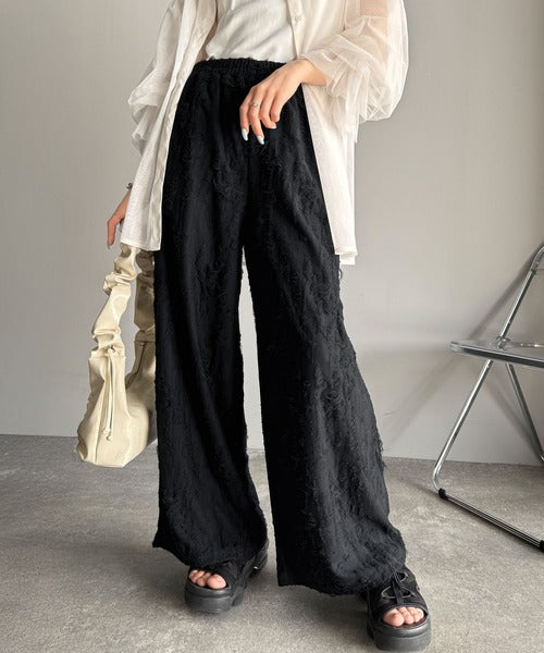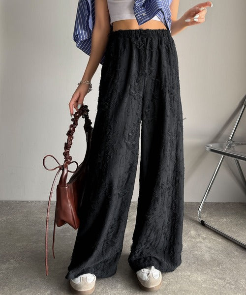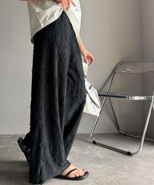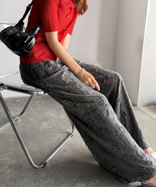 【mily bilet】旬なおしゃれダメージ加工。クラッシュジャガードワイドイージーパンツ mi1019087