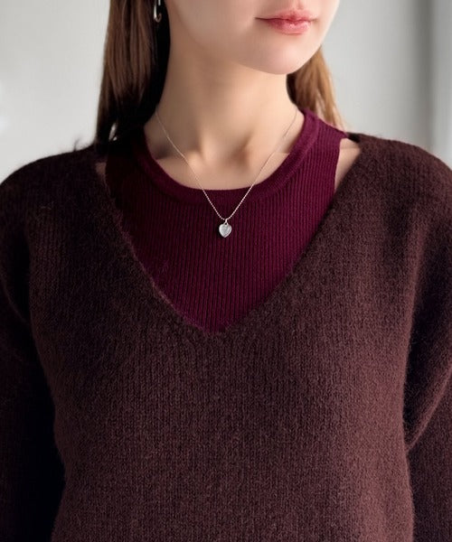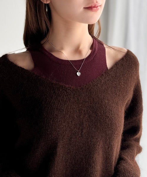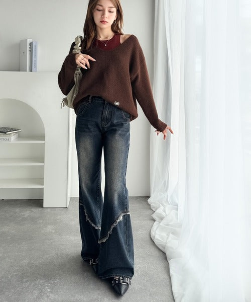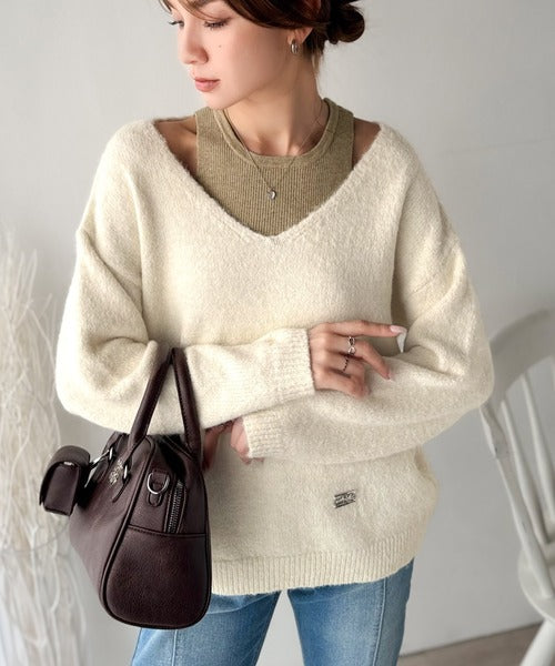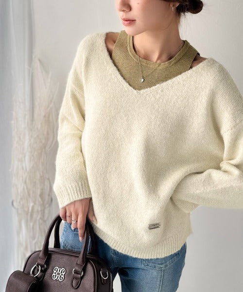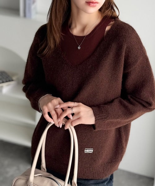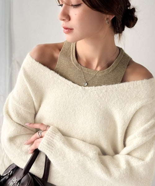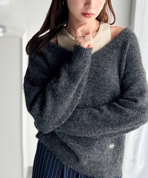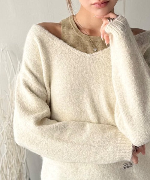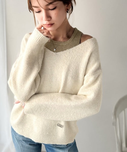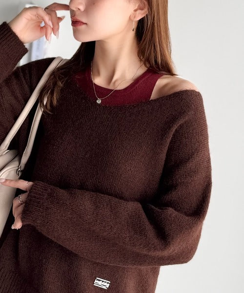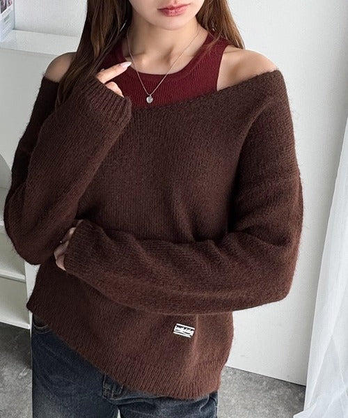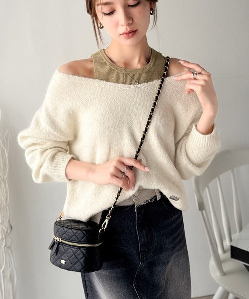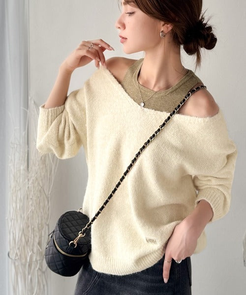【mily bilet】洗練されたレイヤードスタイル!プレート使い異素材ニットレイヤードオフショル見せアンサンブルニット mi1029143