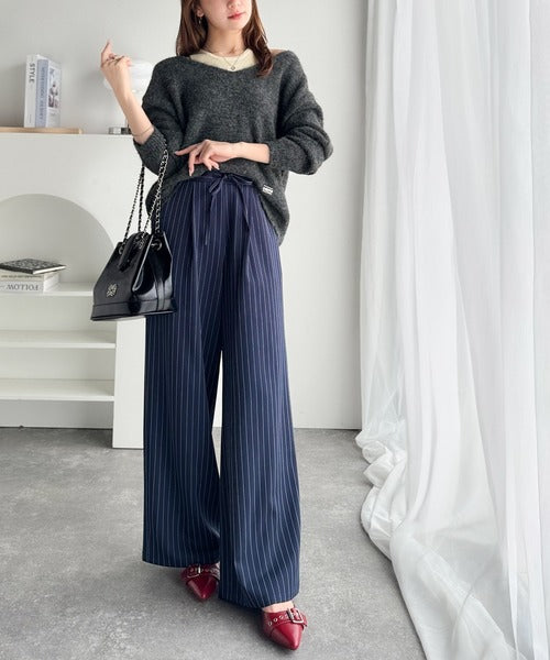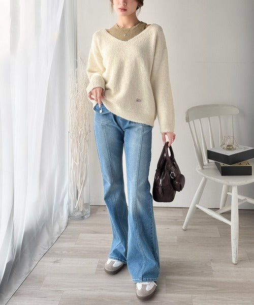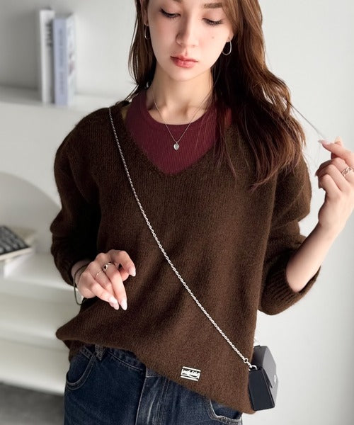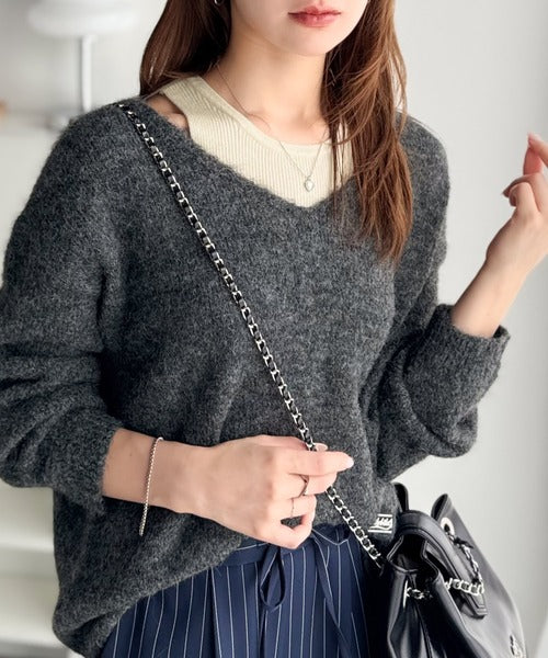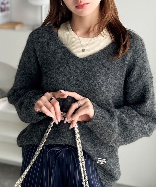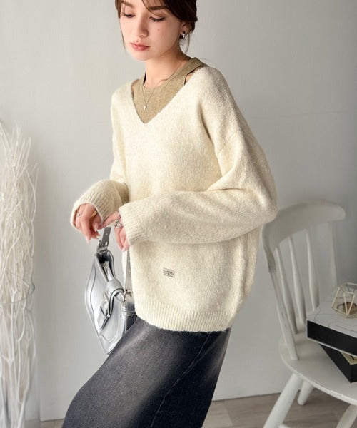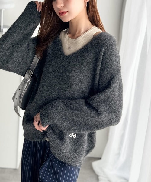 ふんわりとした柔らかな毛足のニットは、着心地も抜群で、ドロップショルダーのデザインがリラックスした雰囲気を演出します。