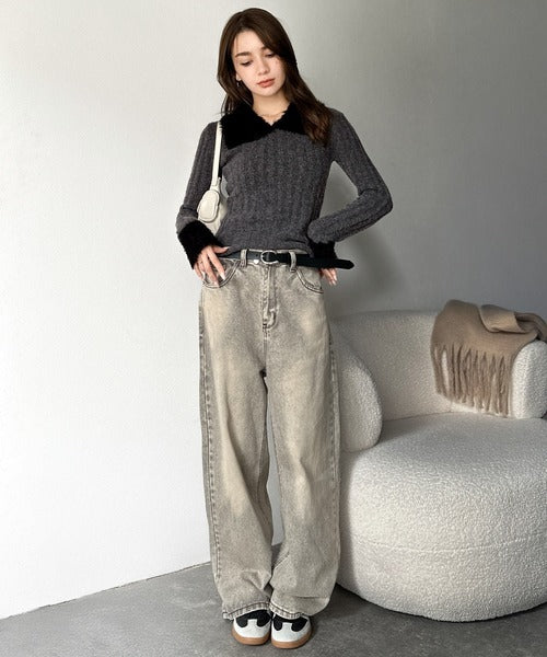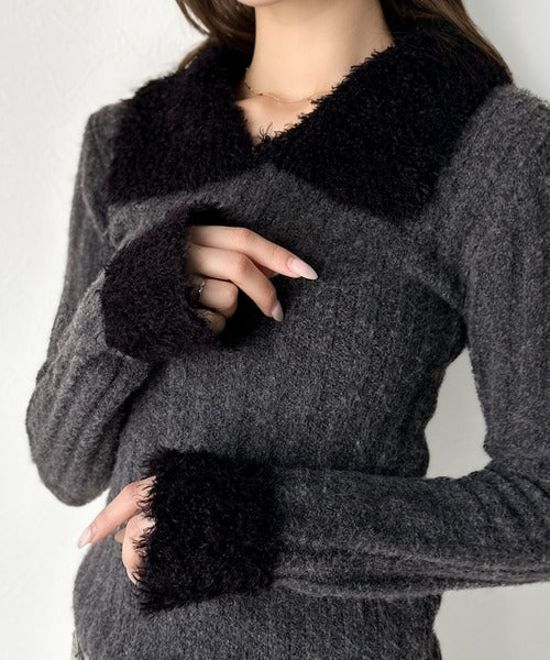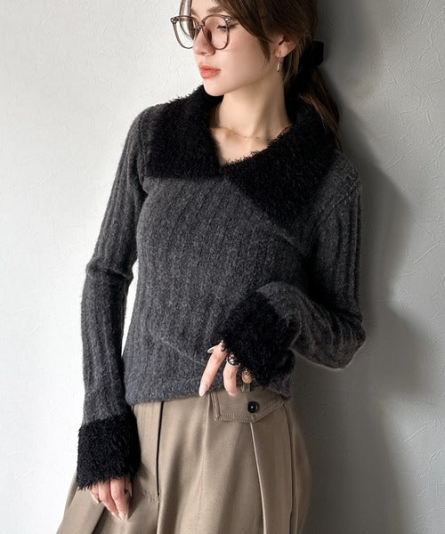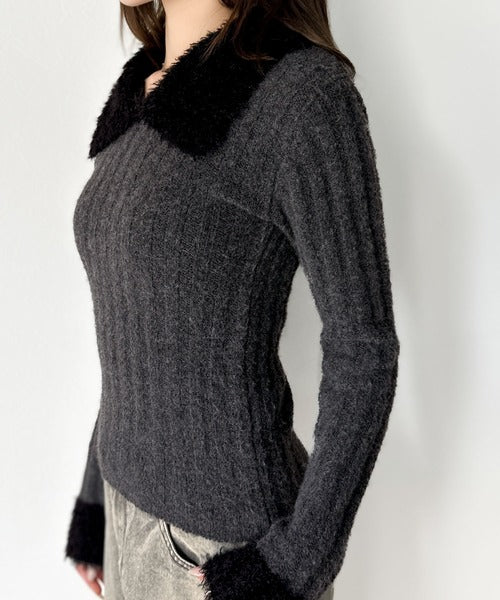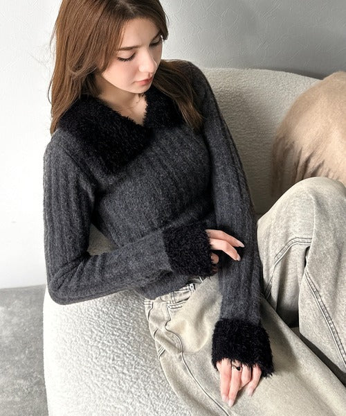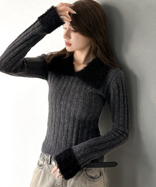 【mily bilet】可愛さ、ふわり2倍増し◎配色ファー衿リブニットプルオーバー(長袖) mi1029145