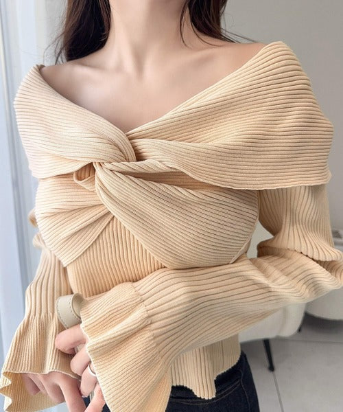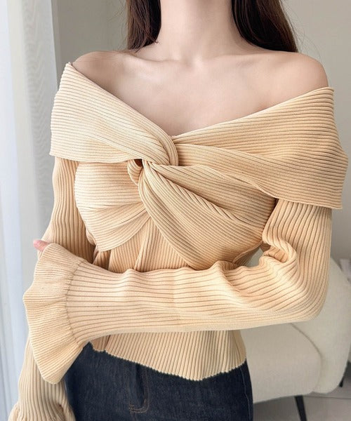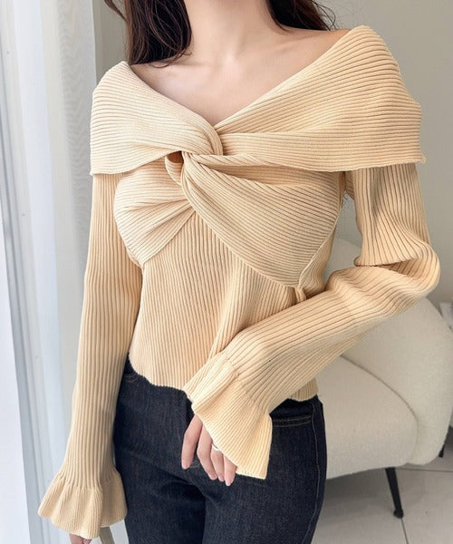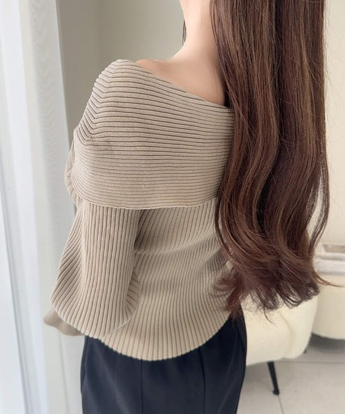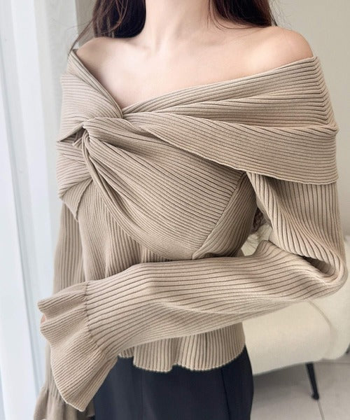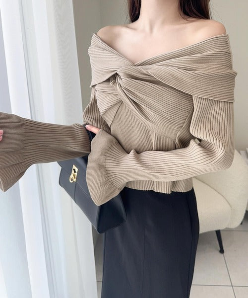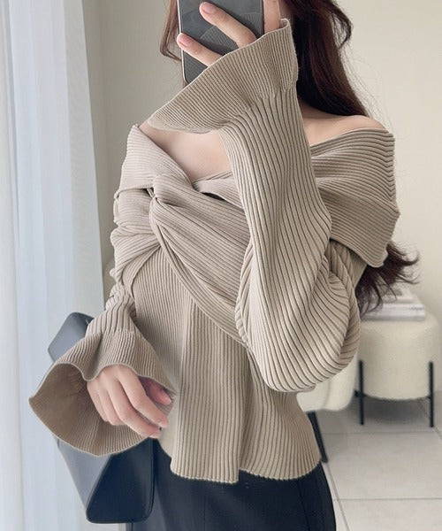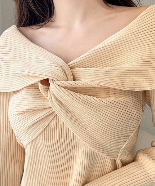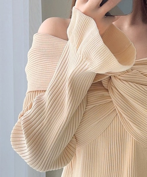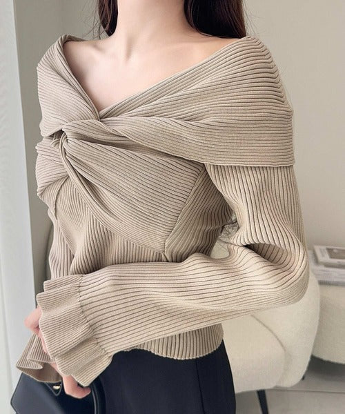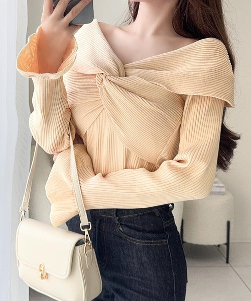 【mily bilet】デコルテ美人を叶える一着♪ツイストオフショル2WAYリブニットプルオーバー(長袖) mi1269006