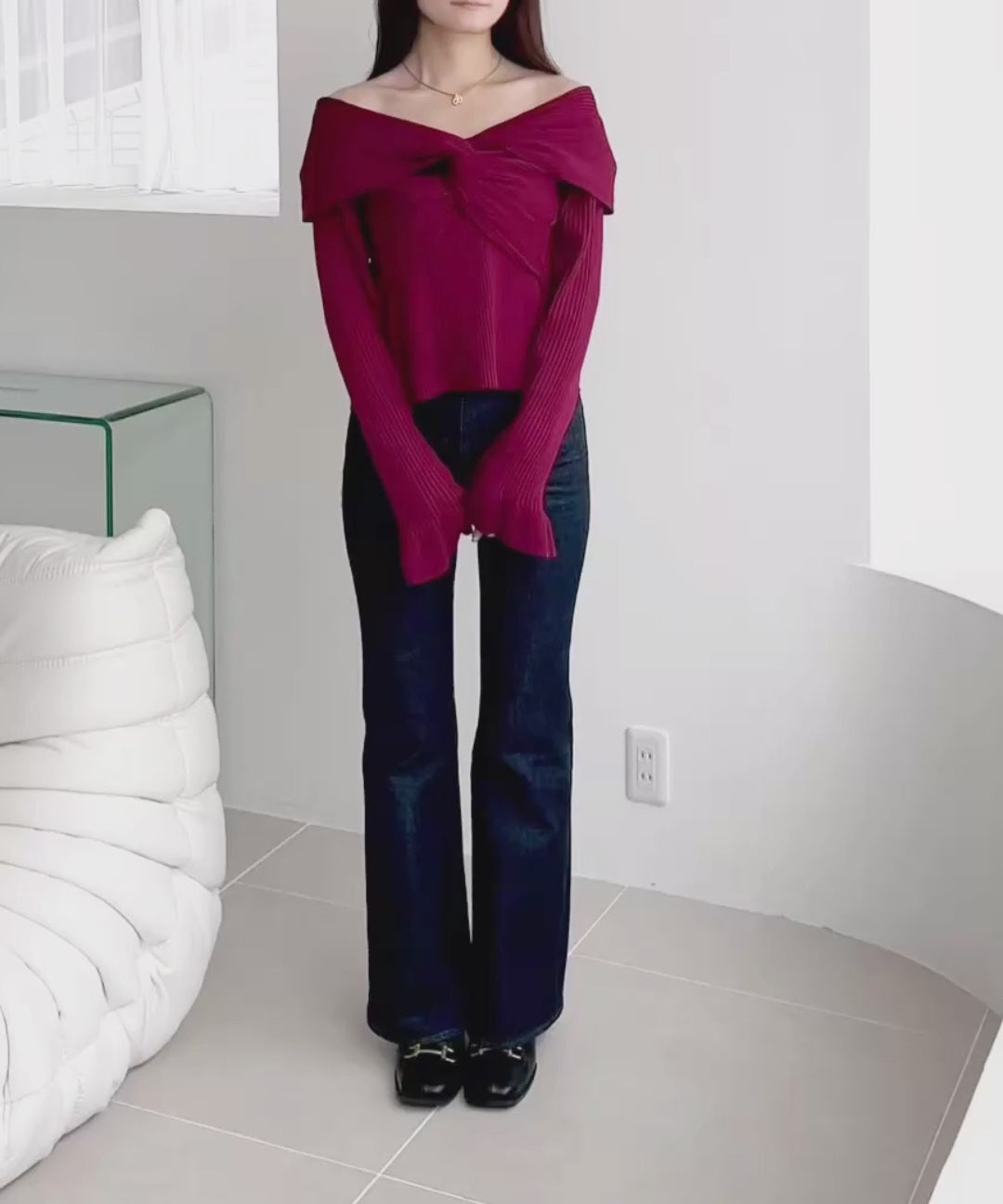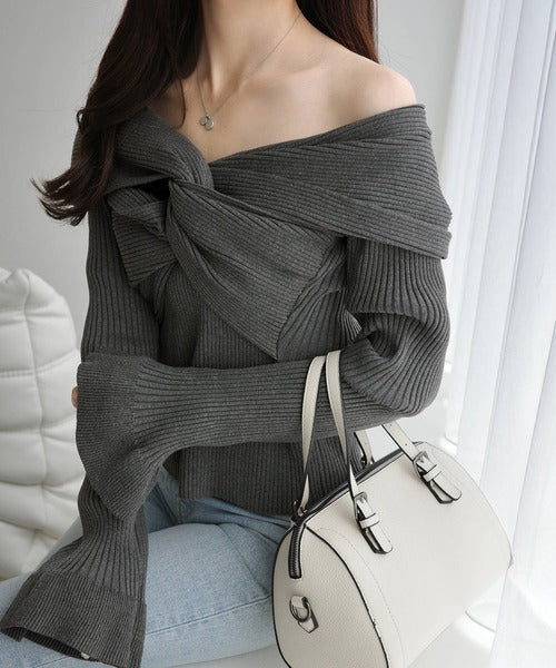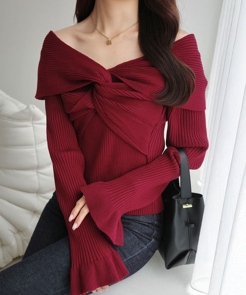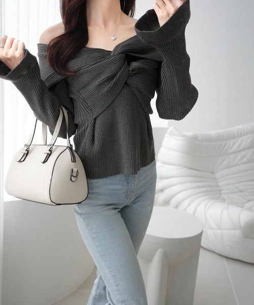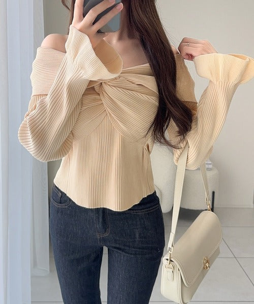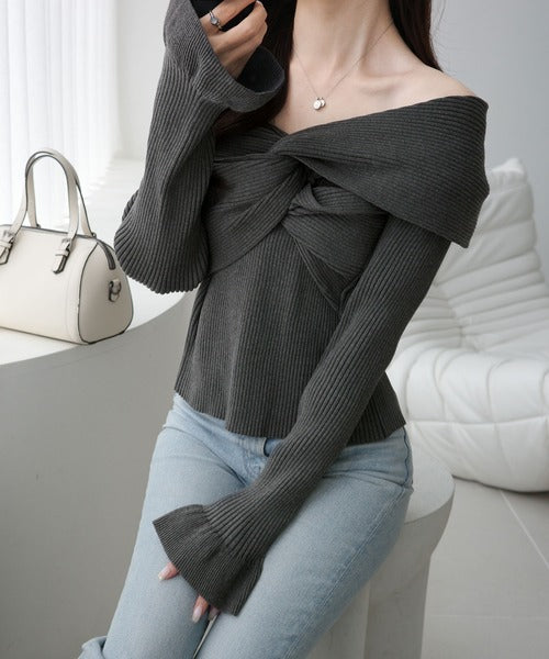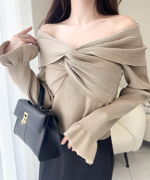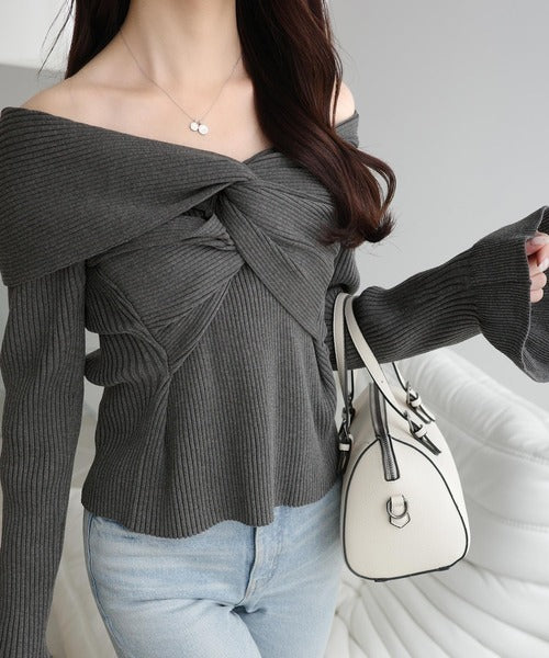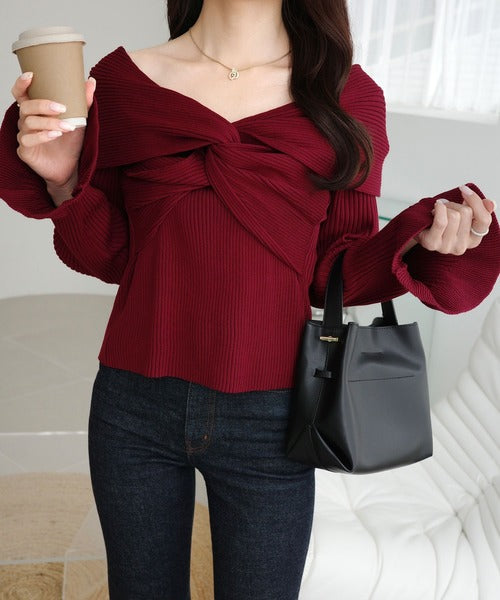 【mily bilet】デコルテ美人を叶える一着♪ツイストオフショル2WAYリブニットプルオーバー(長袖) mi1269006