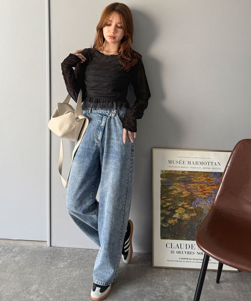大人フェミニンなデザインで、カジュアルからきれいめまで幅広く着こなせます。