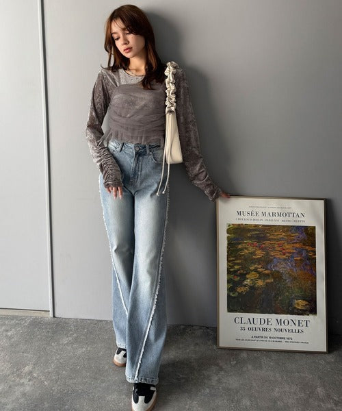 またカットソーはベロア素材なのでアウターから除くインナーとしても大活躍!
