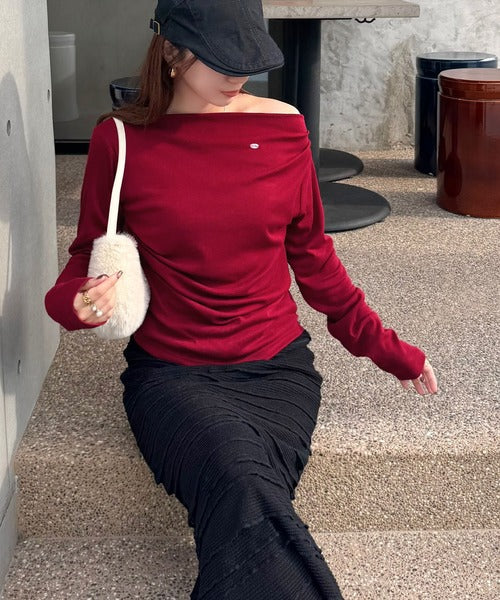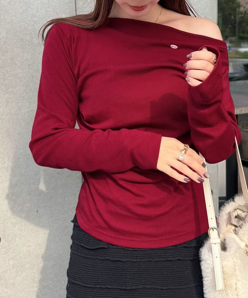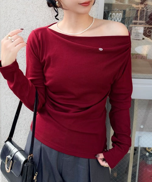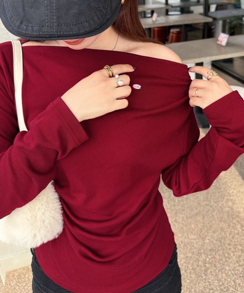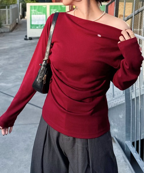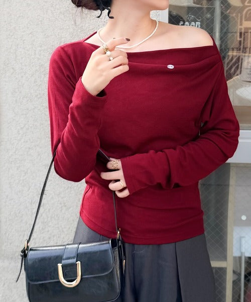 アシメネックなので肩出しでヘルシーにも着こなせて、着回し力も◎