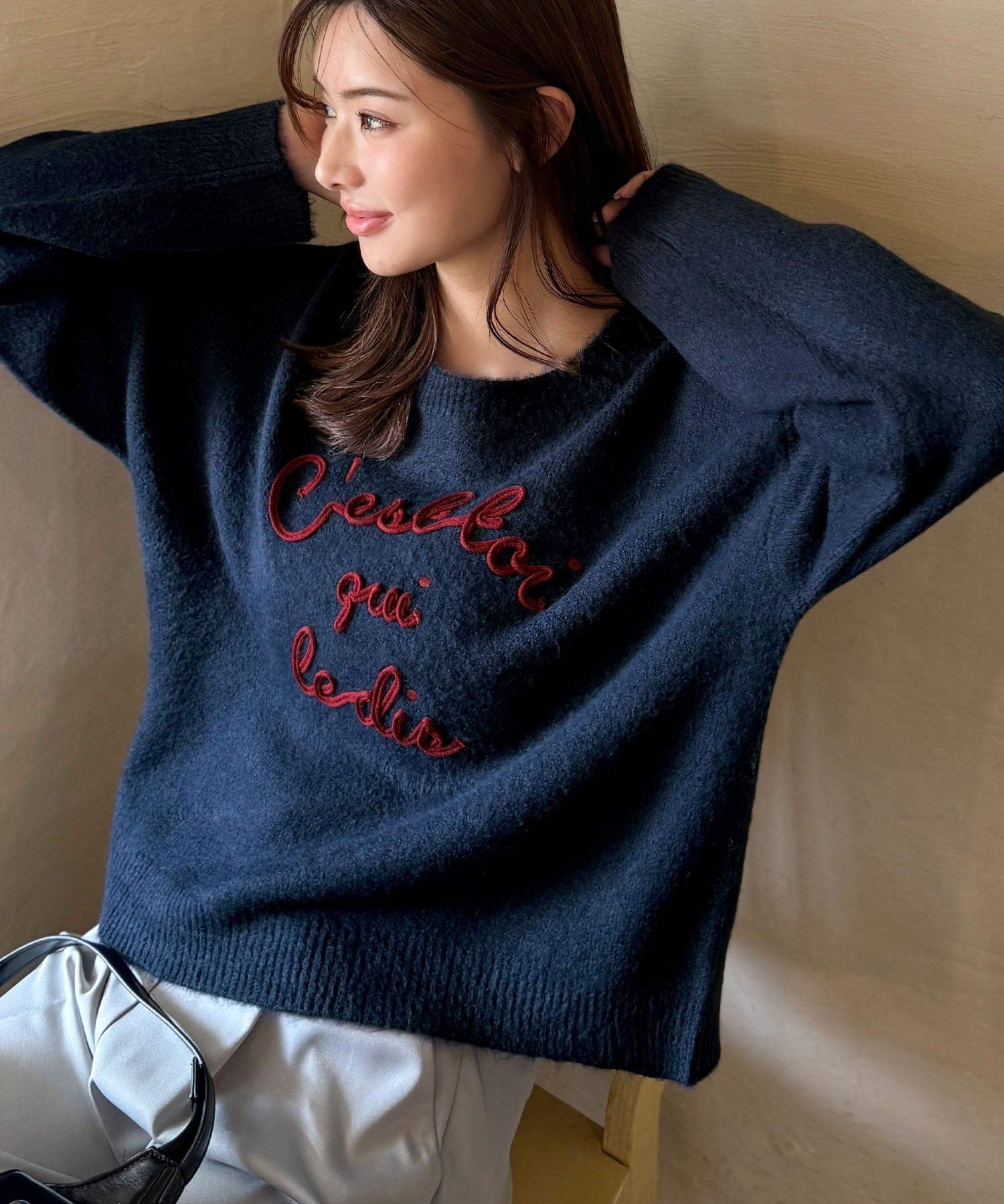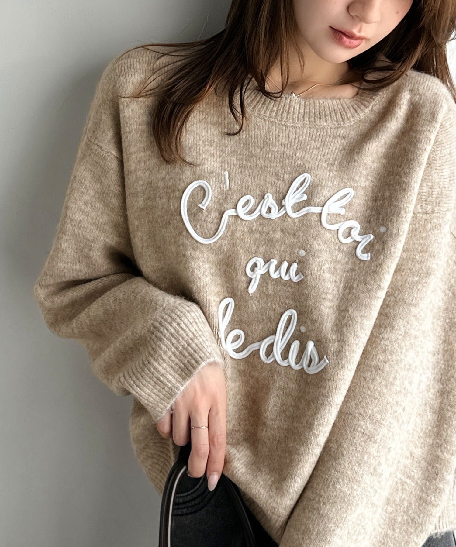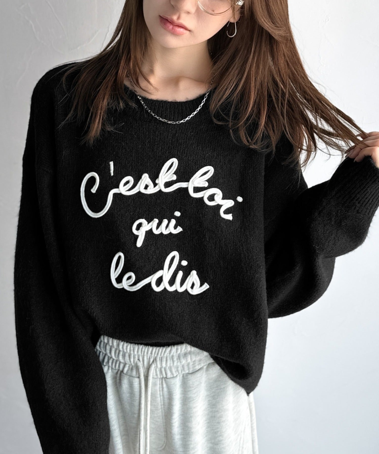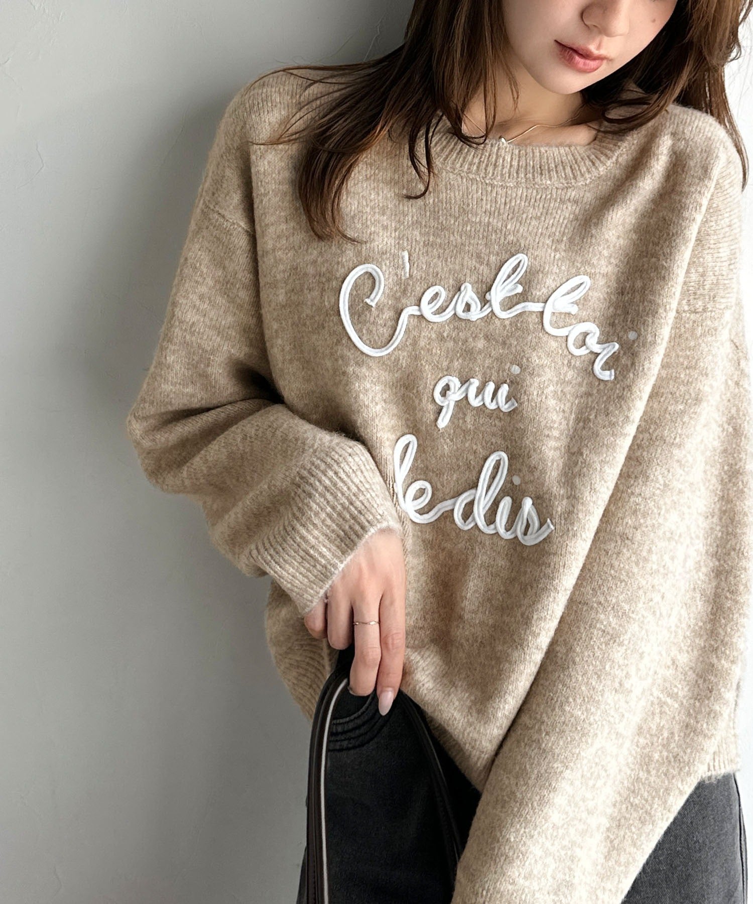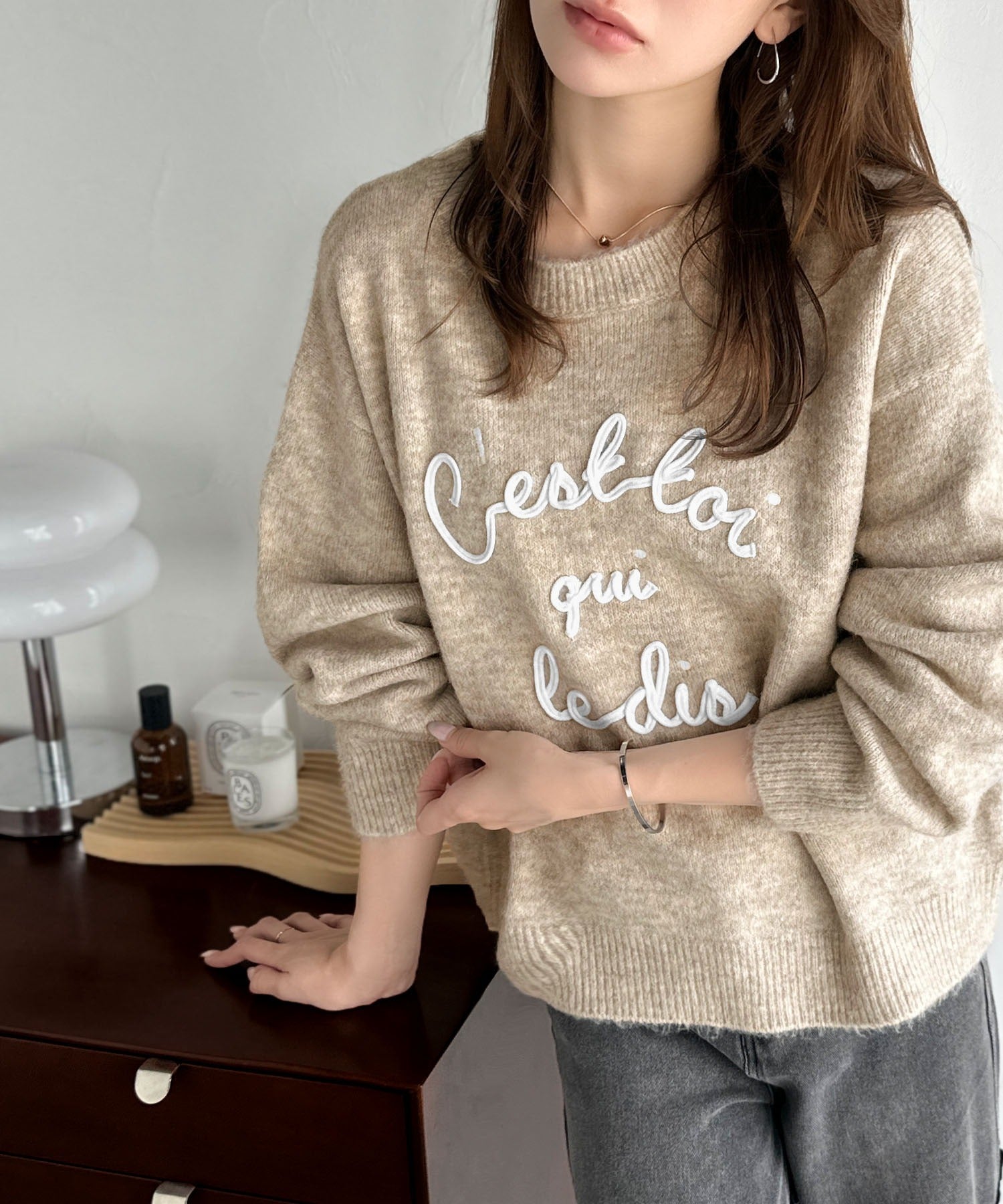 一枚で映える立体ロゴ刺繍のリラックスニット。