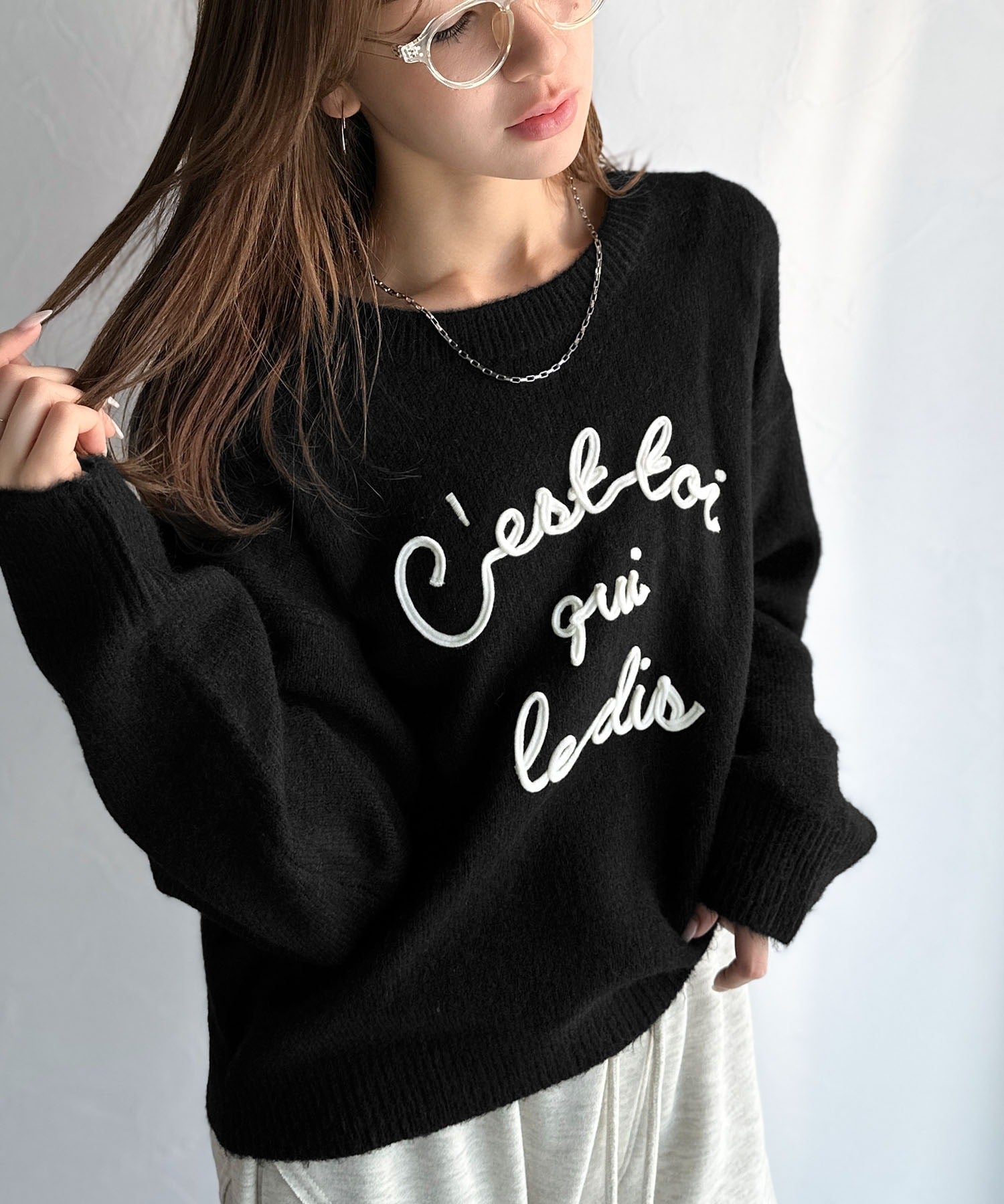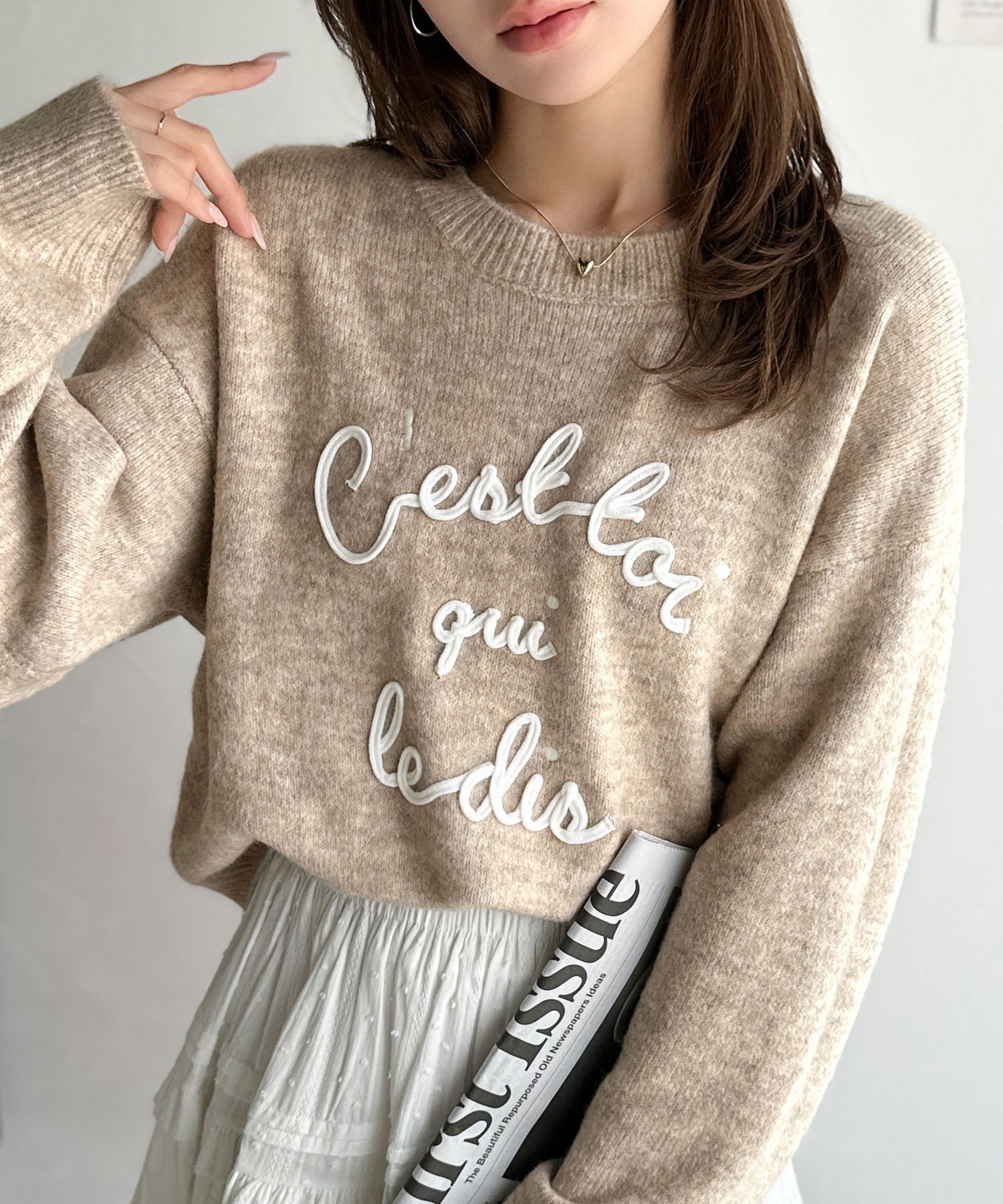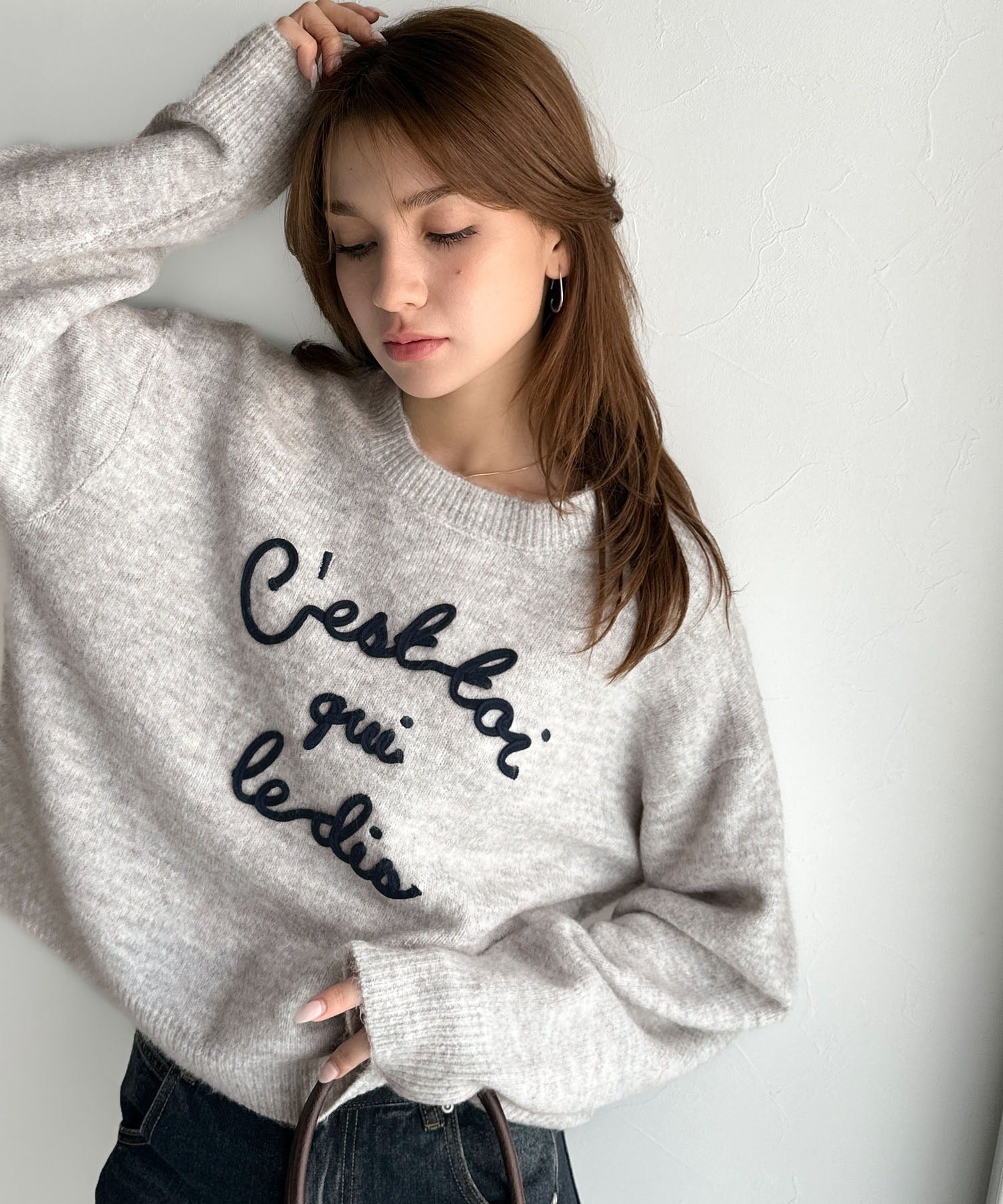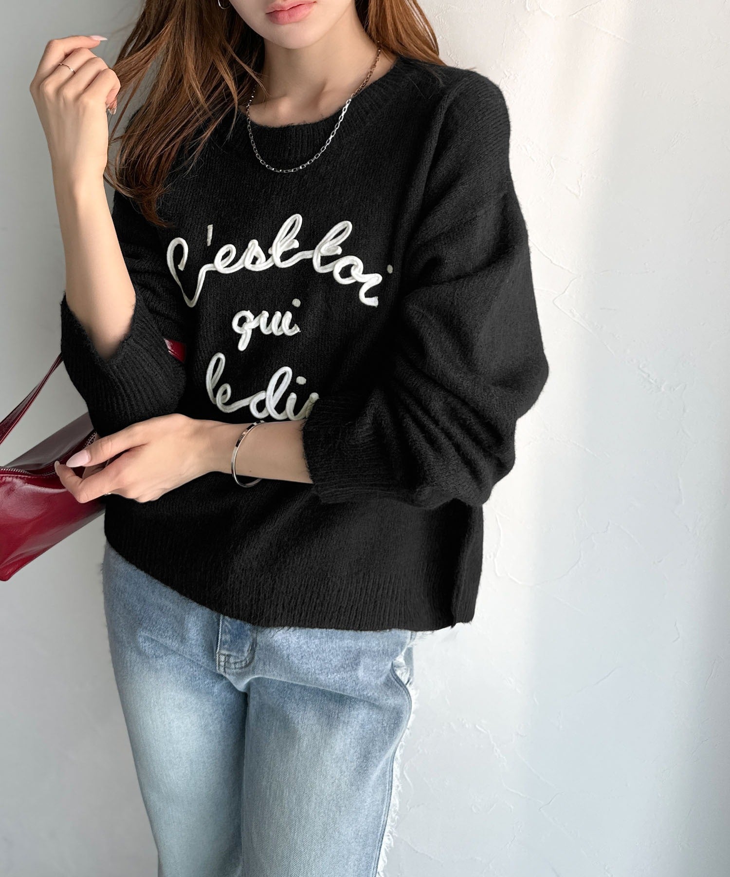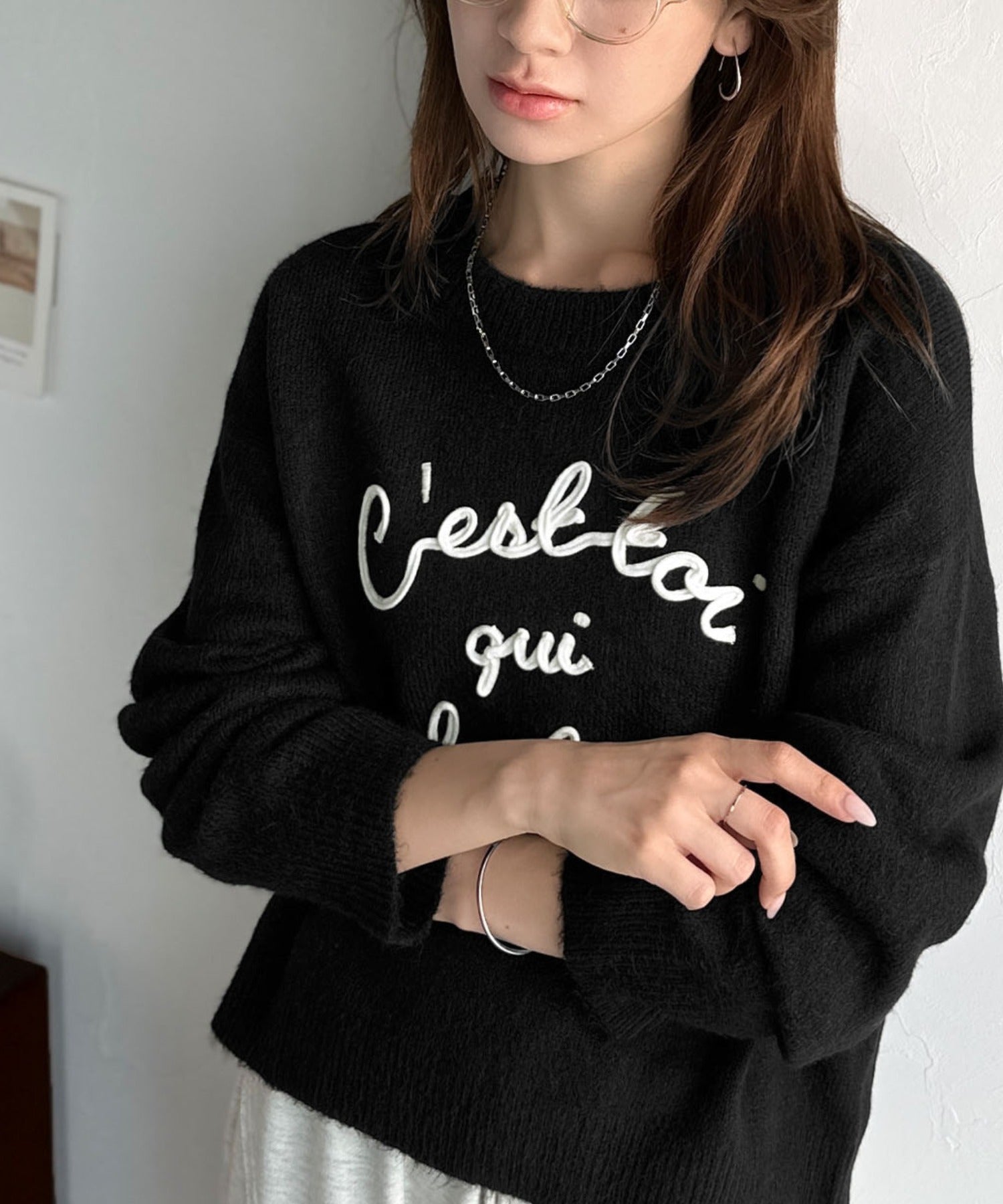 一枚で映える立体ロゴ刺繍のリラックスニット。