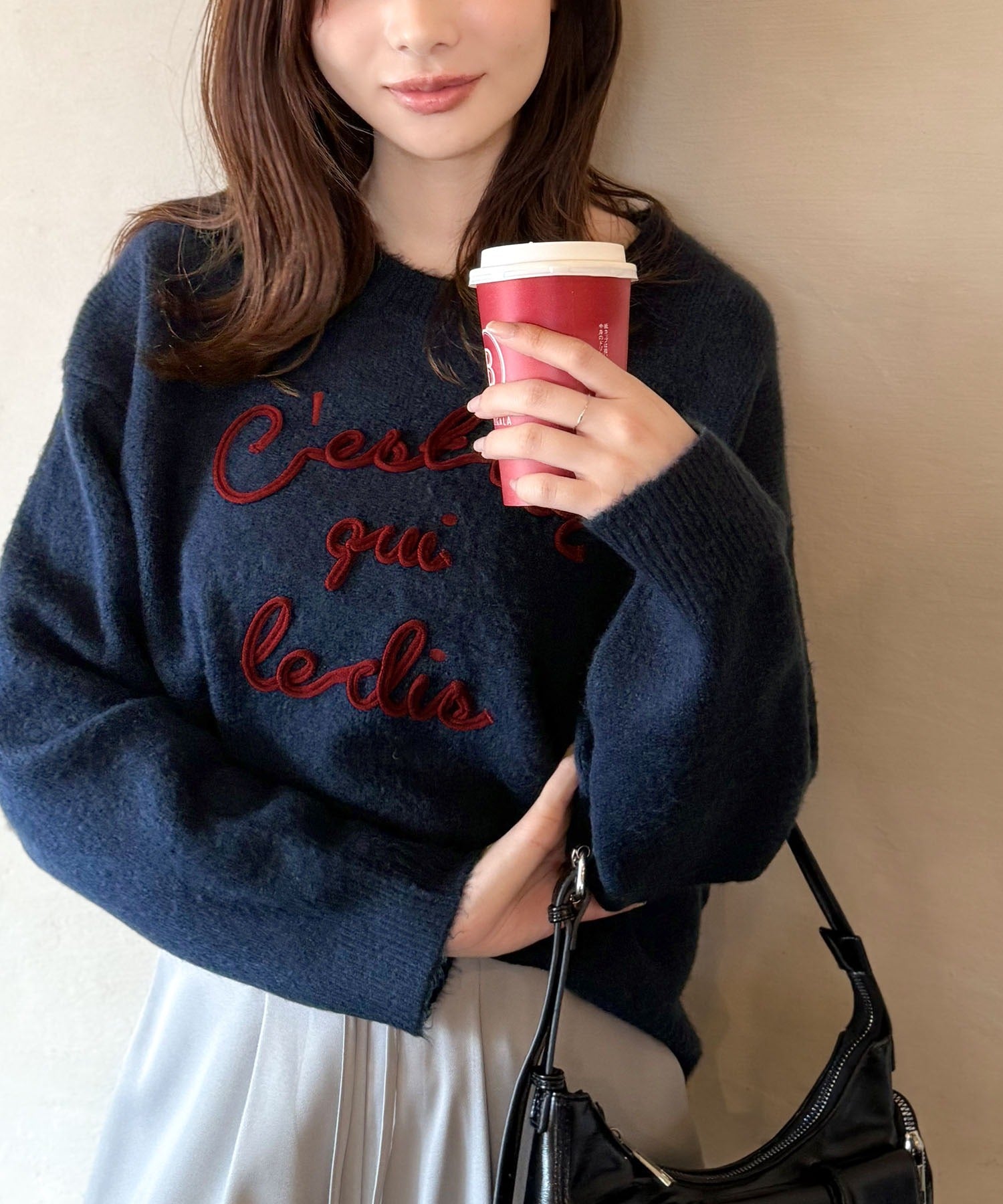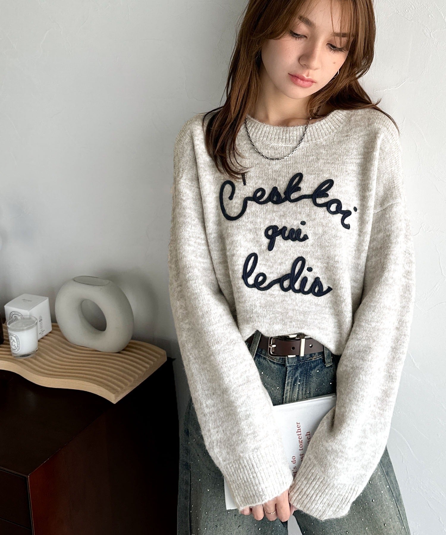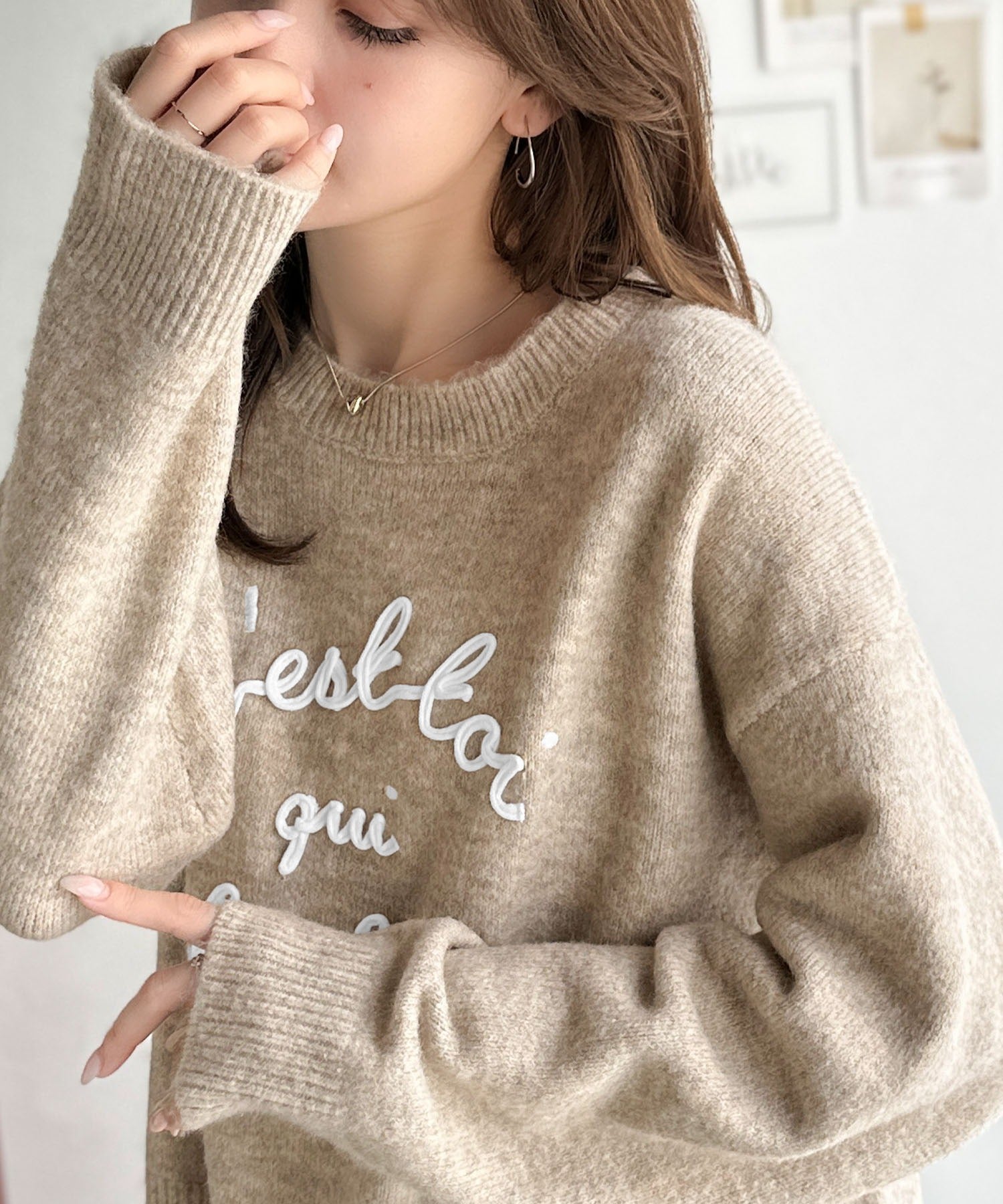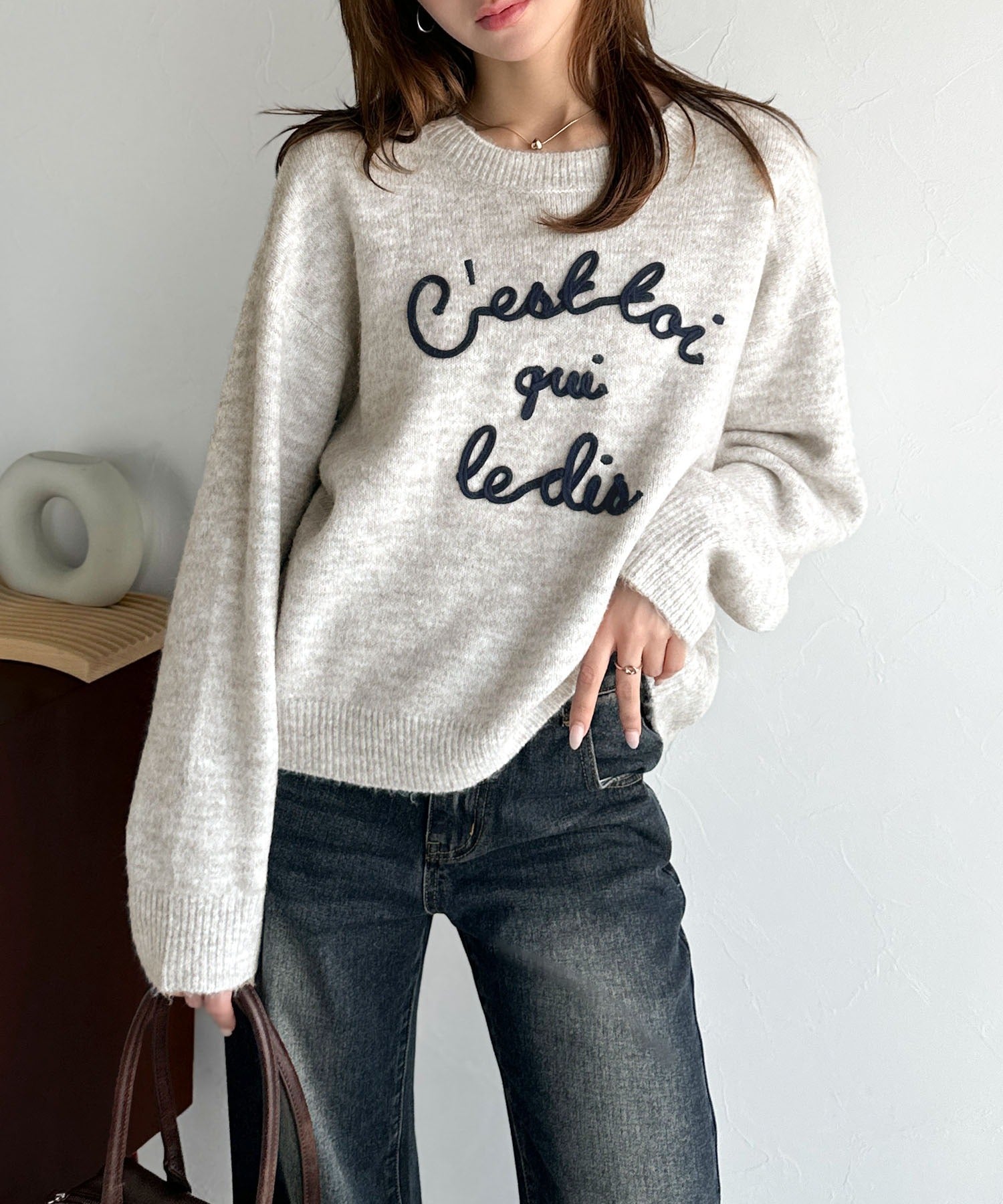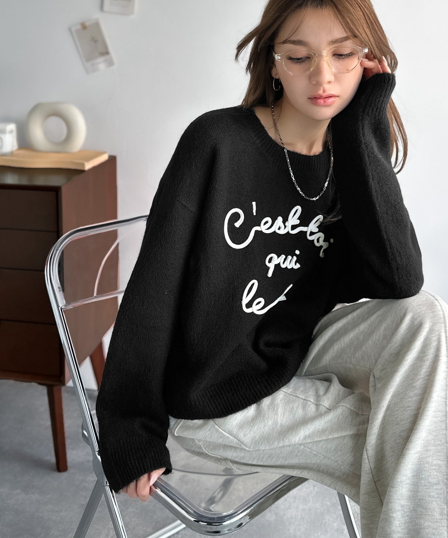 一枚で映える立体ロゴ刺繍のリラックスニット。