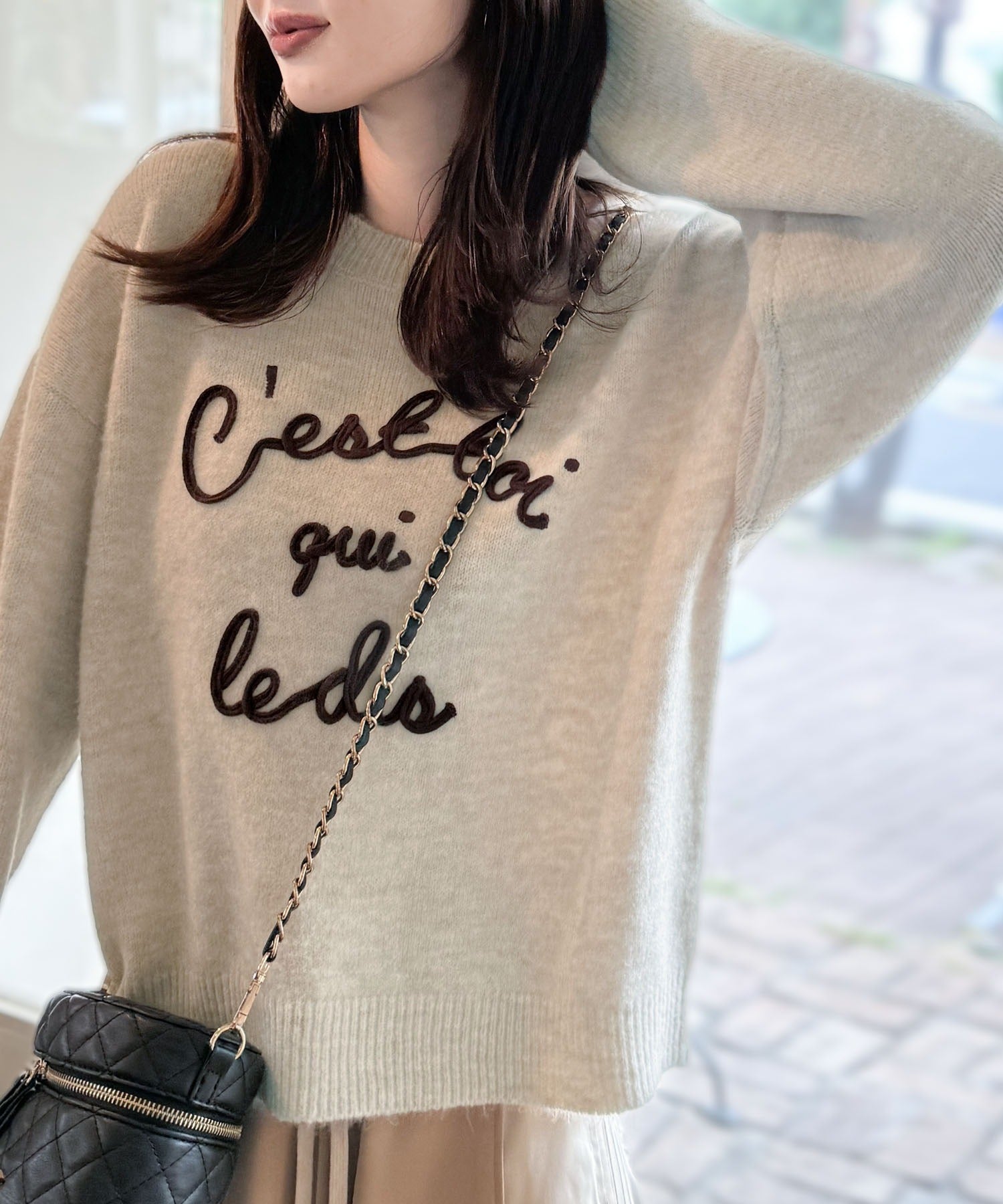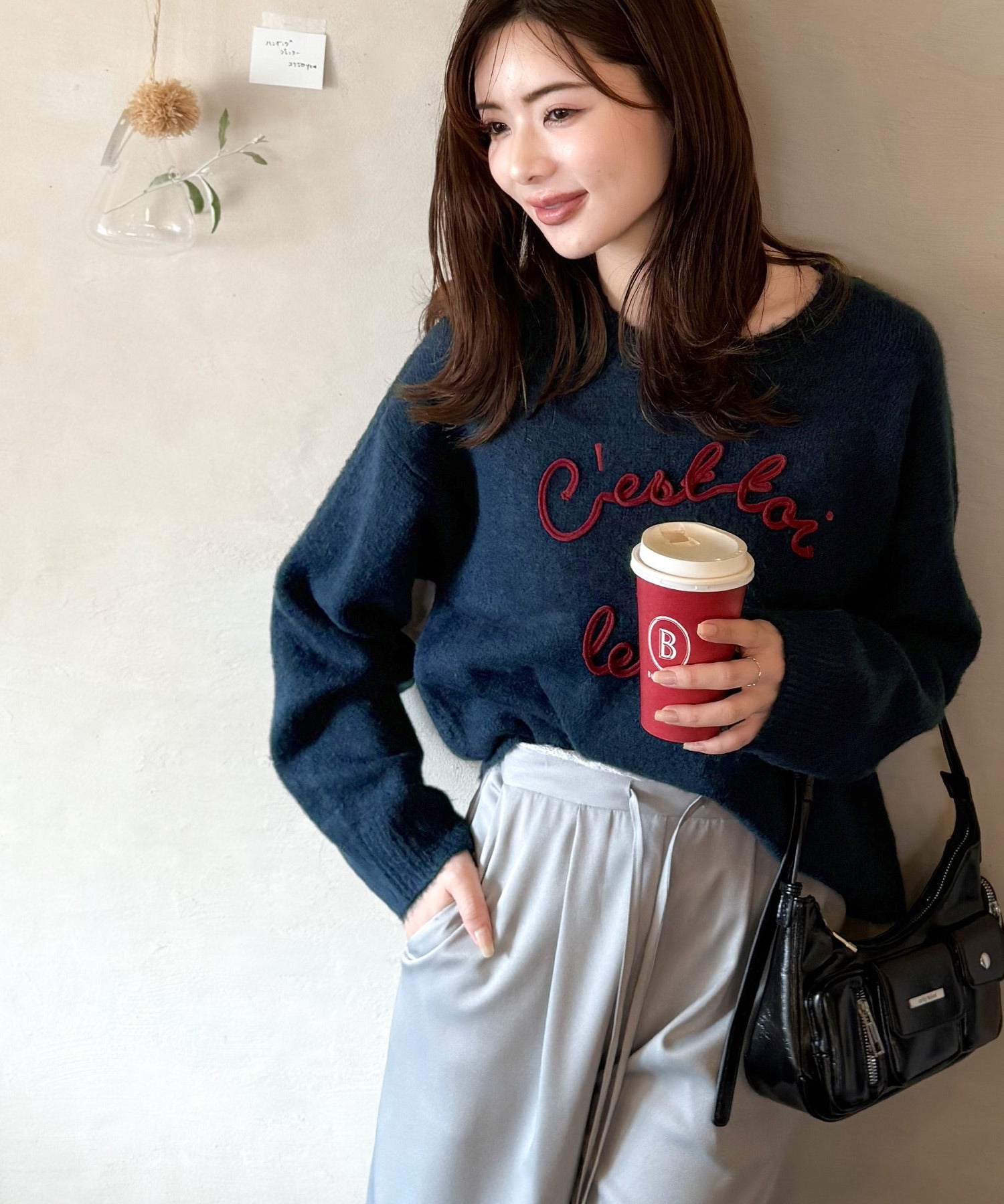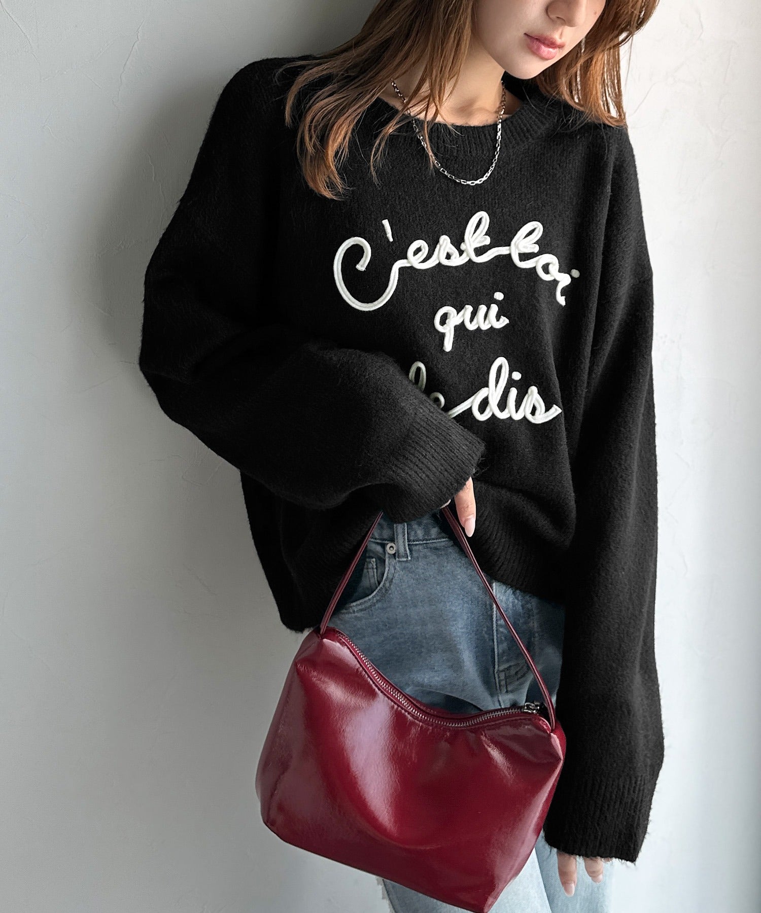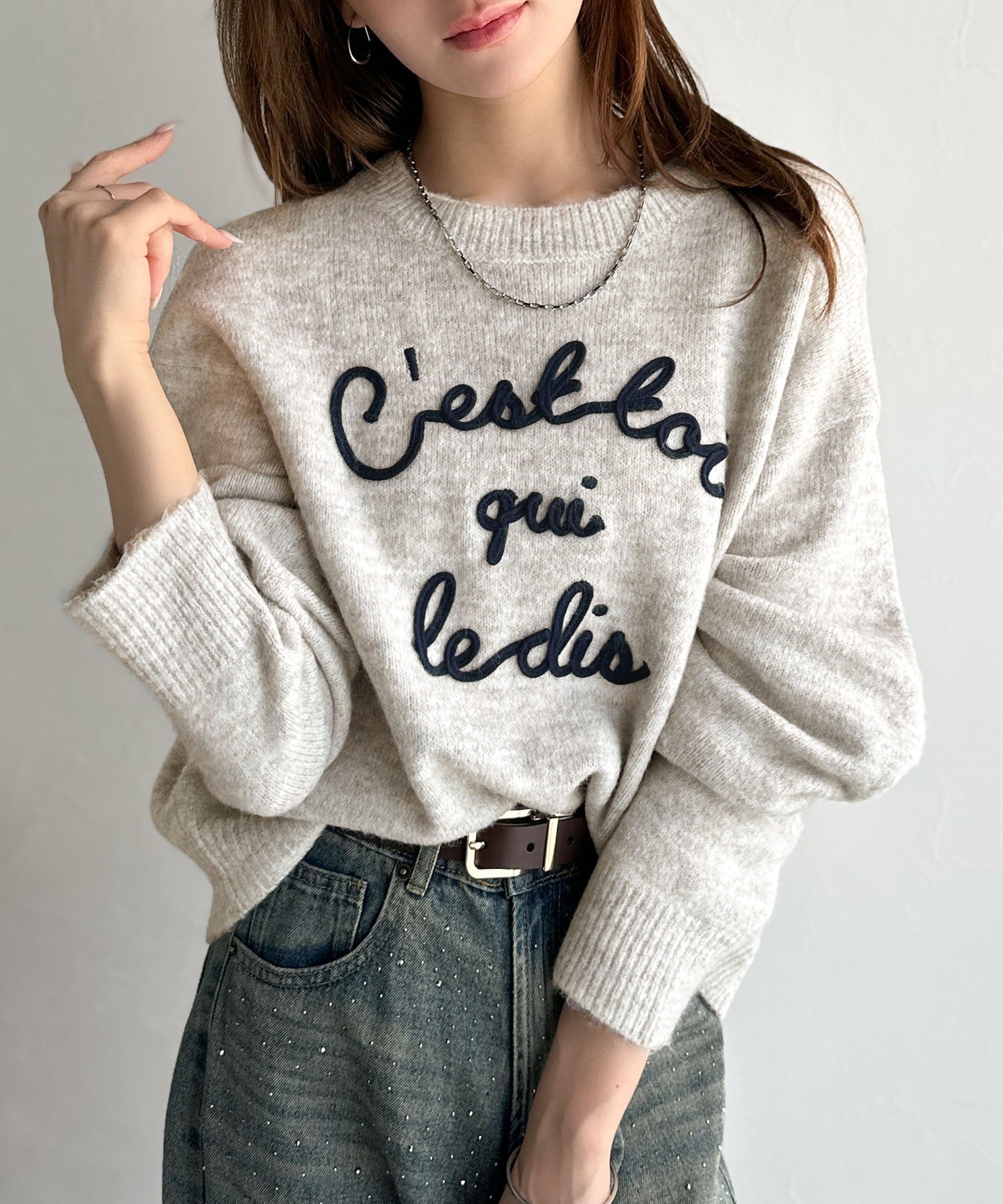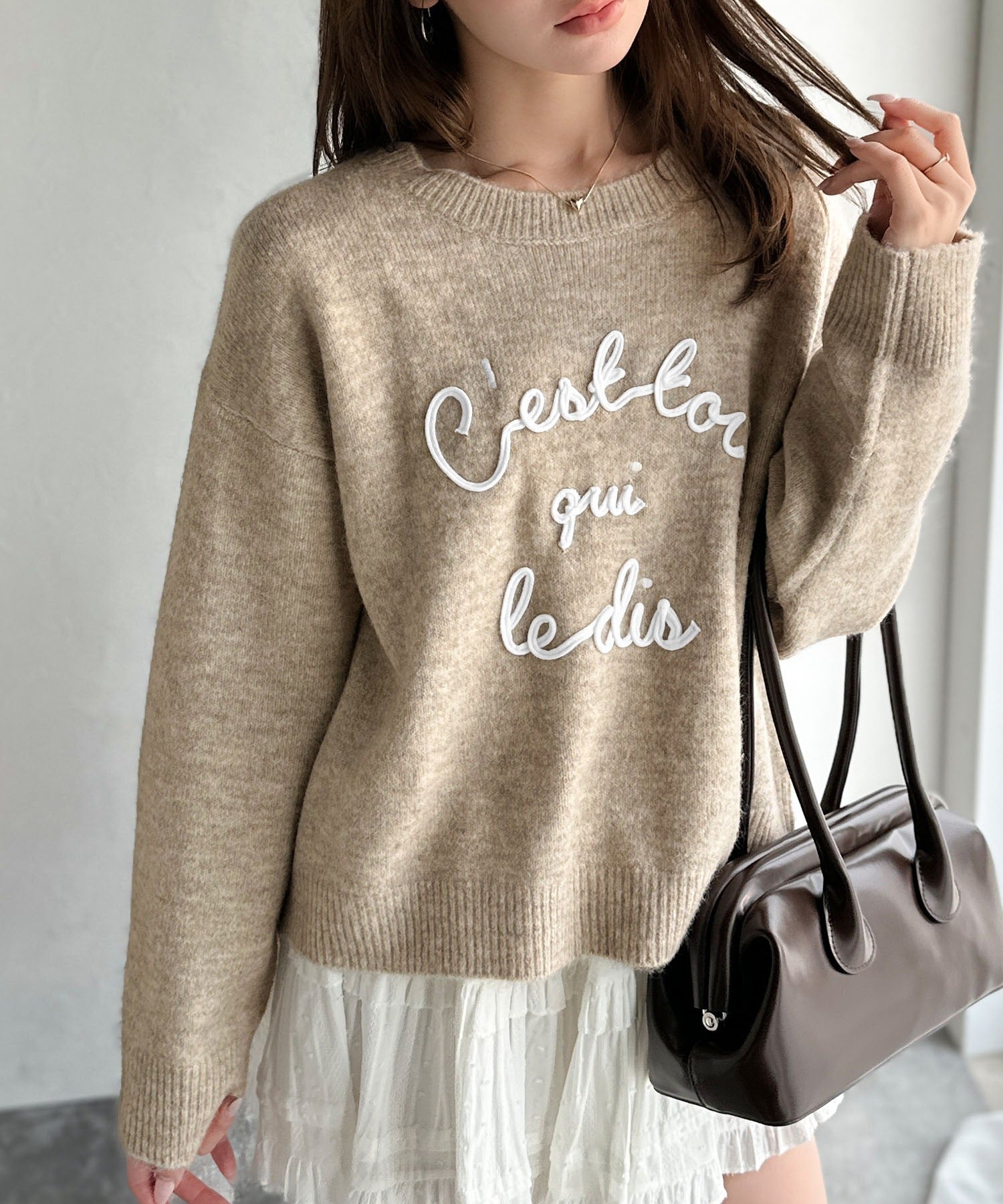 一枚で映える立体ロゴ刺繍のリラックスニット。