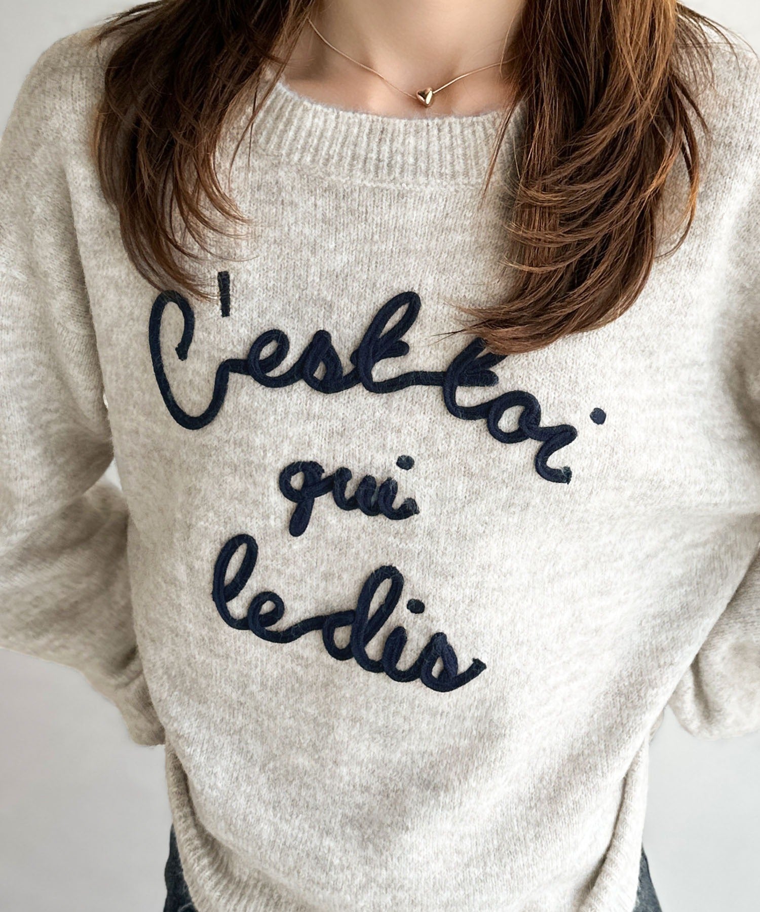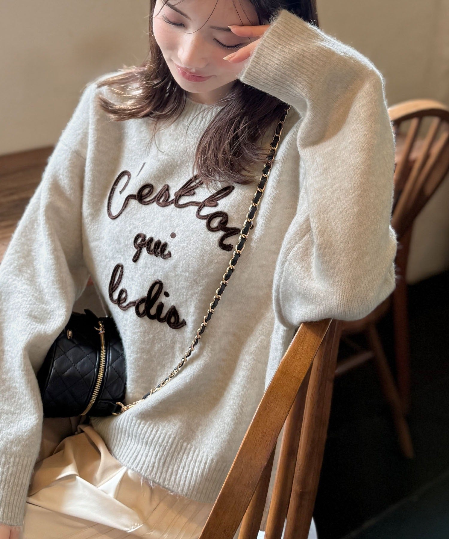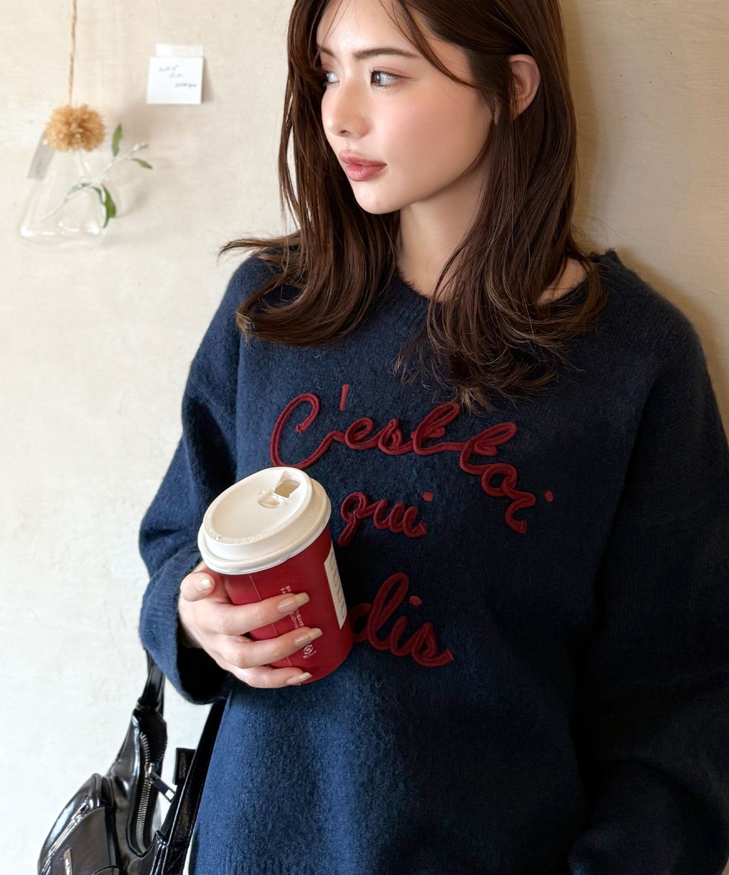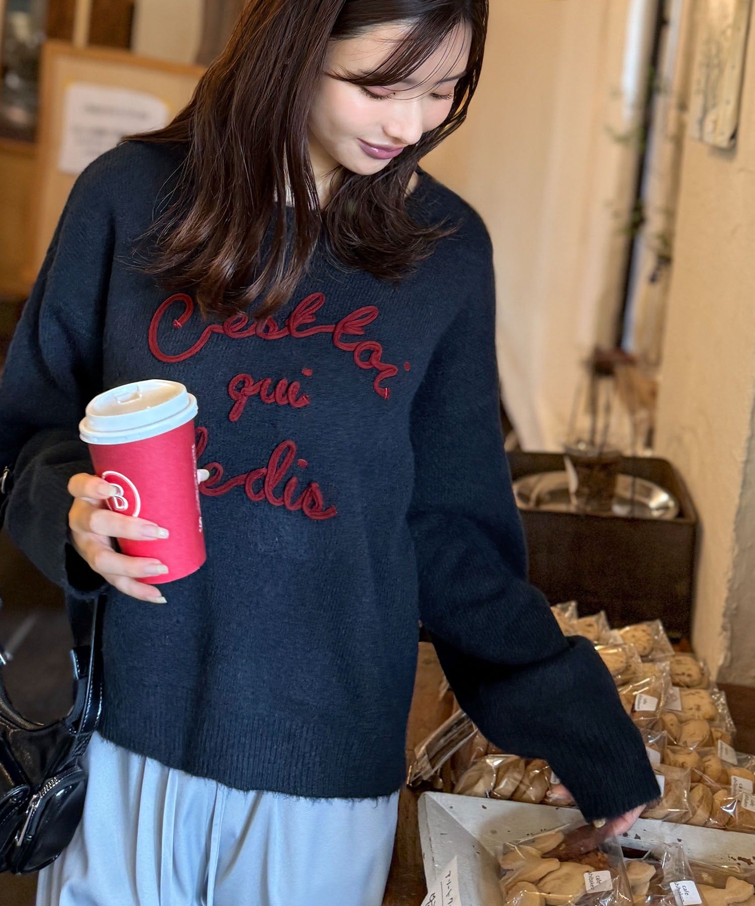 一枚で映える立体ロゴ刺繍のリラックスニット。