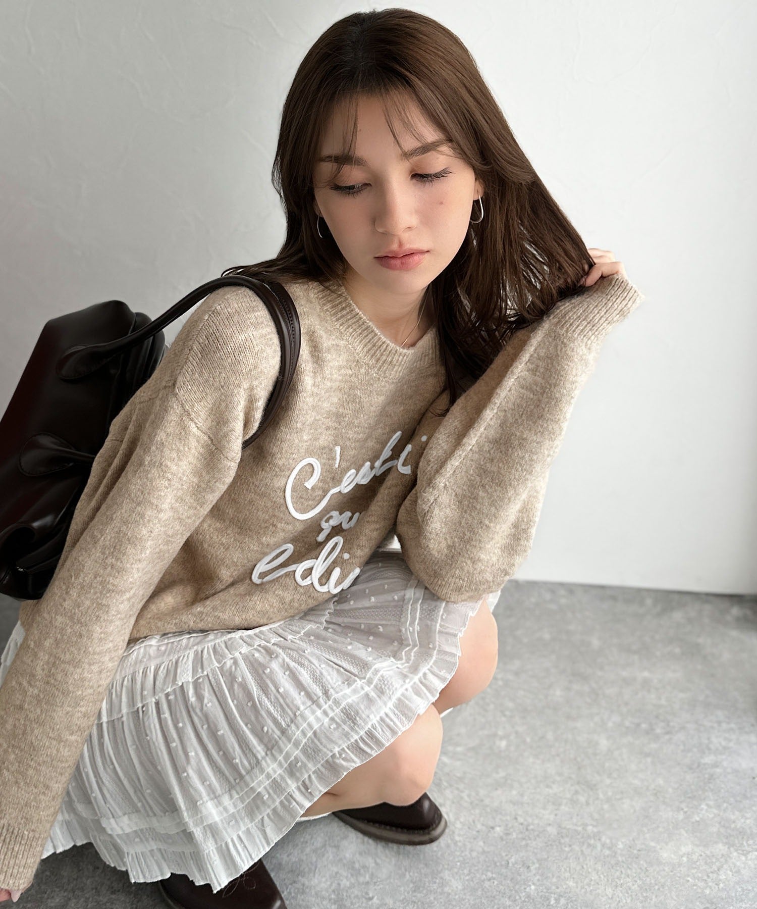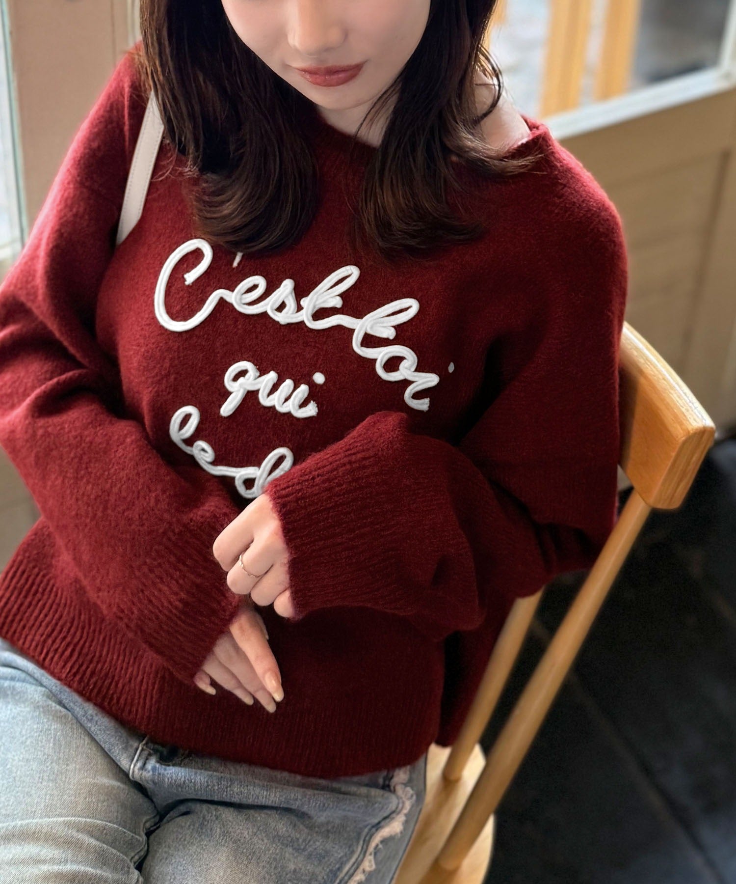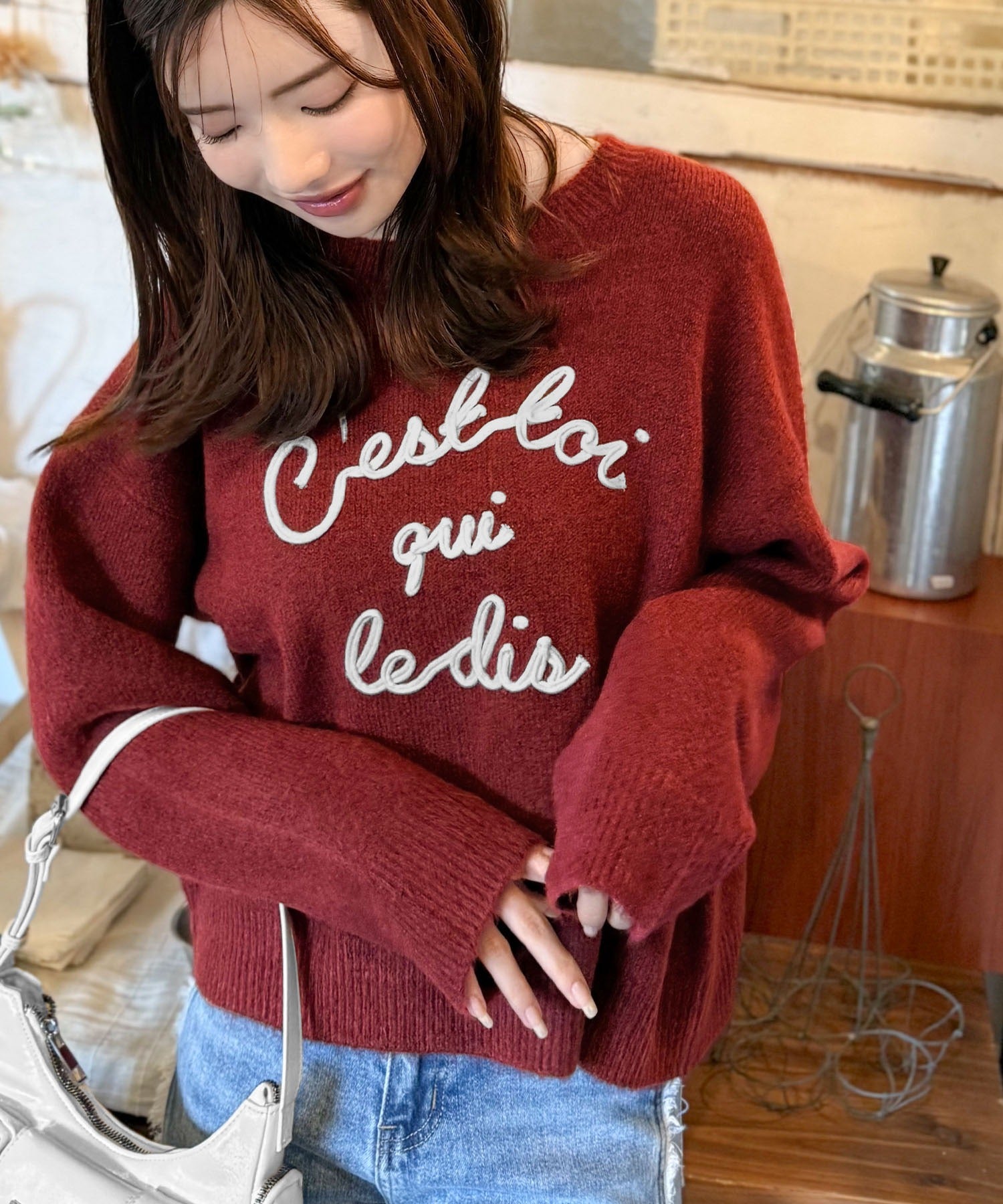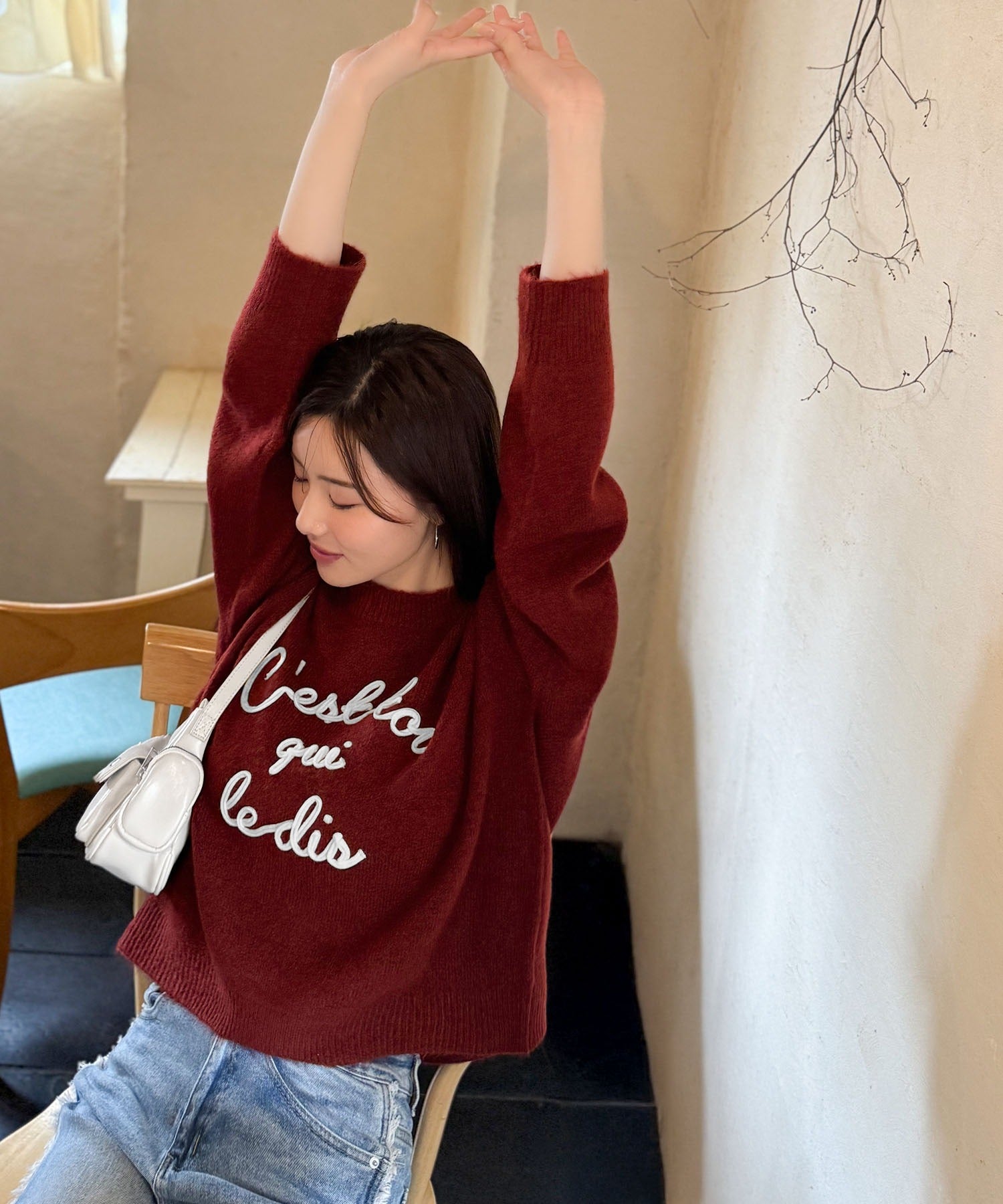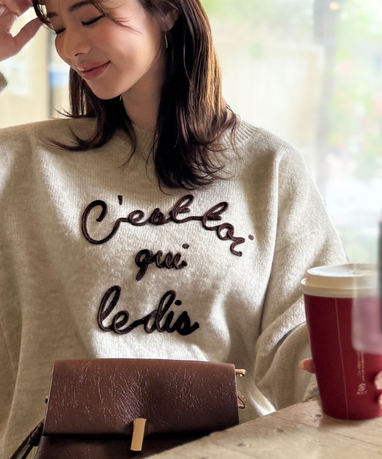 一枚で映える立体ロゴ刺繍のリラックスニット。