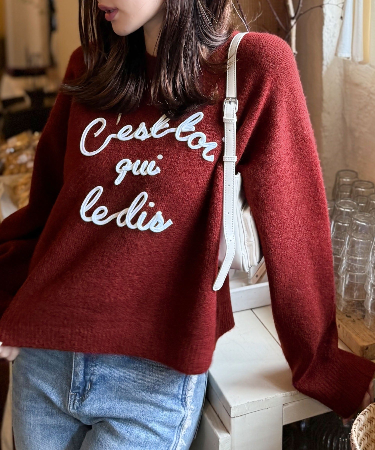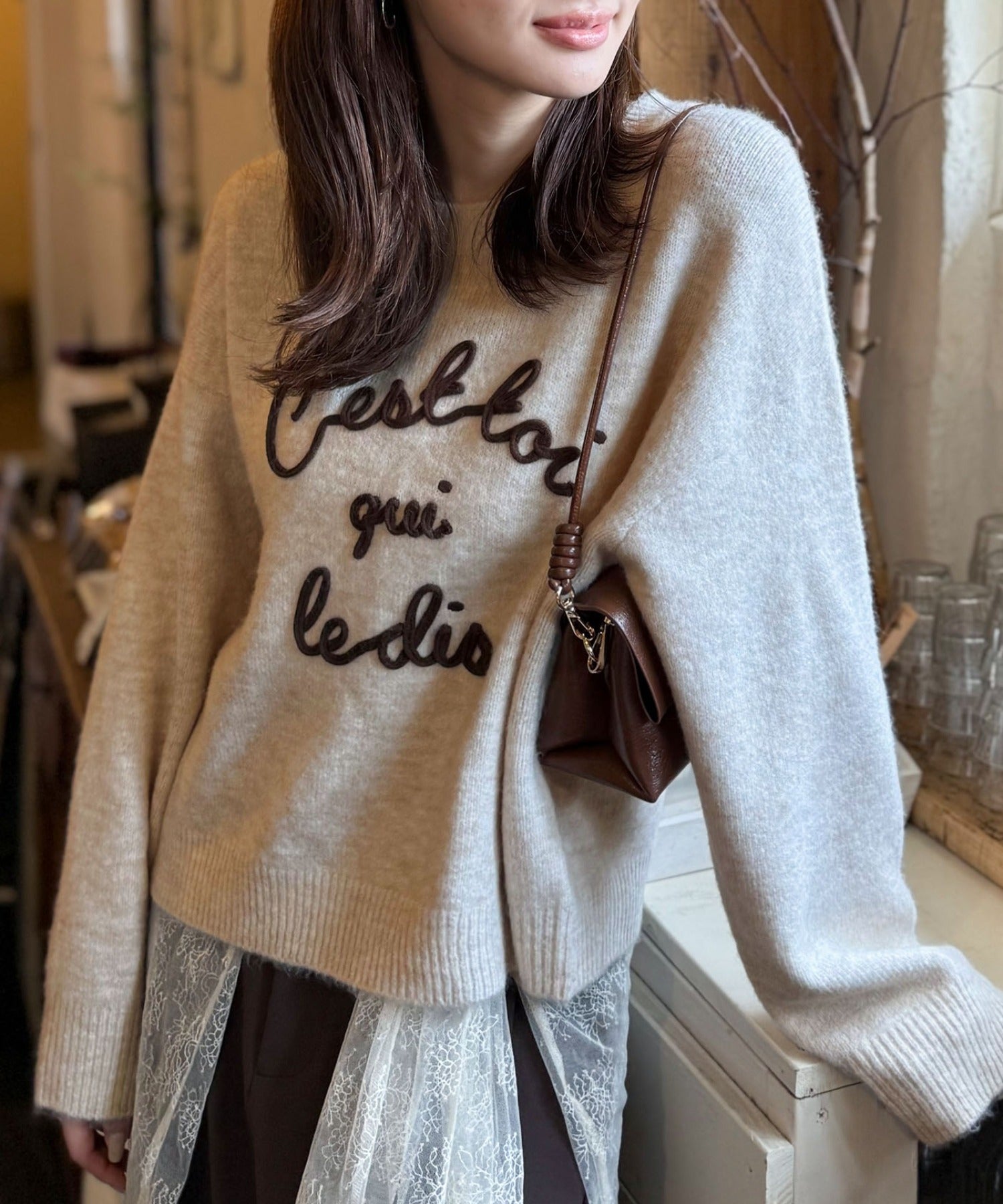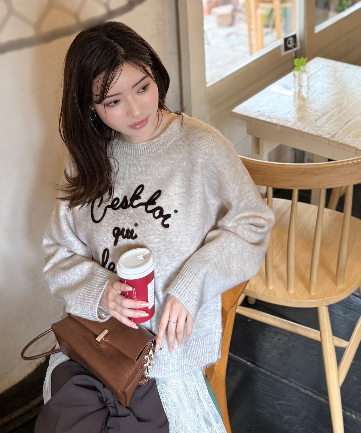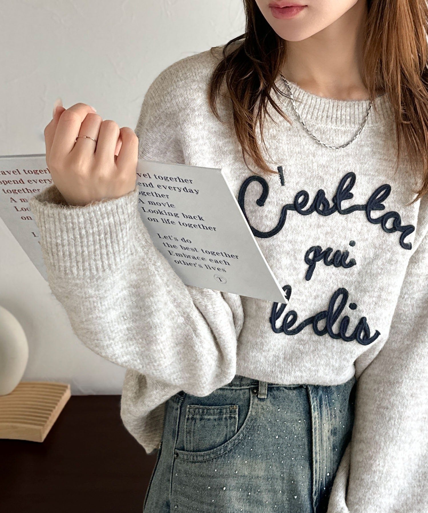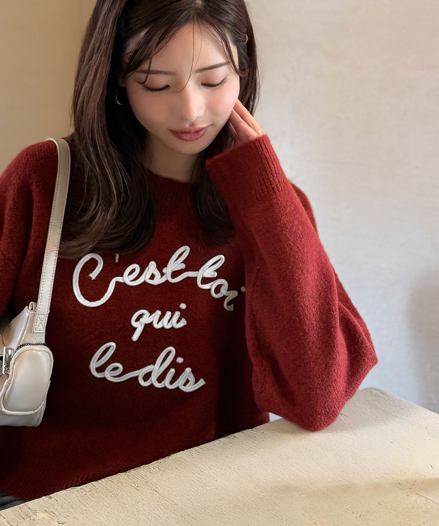 一枚で映える立体ロゴ刺繍のリラックスニット。