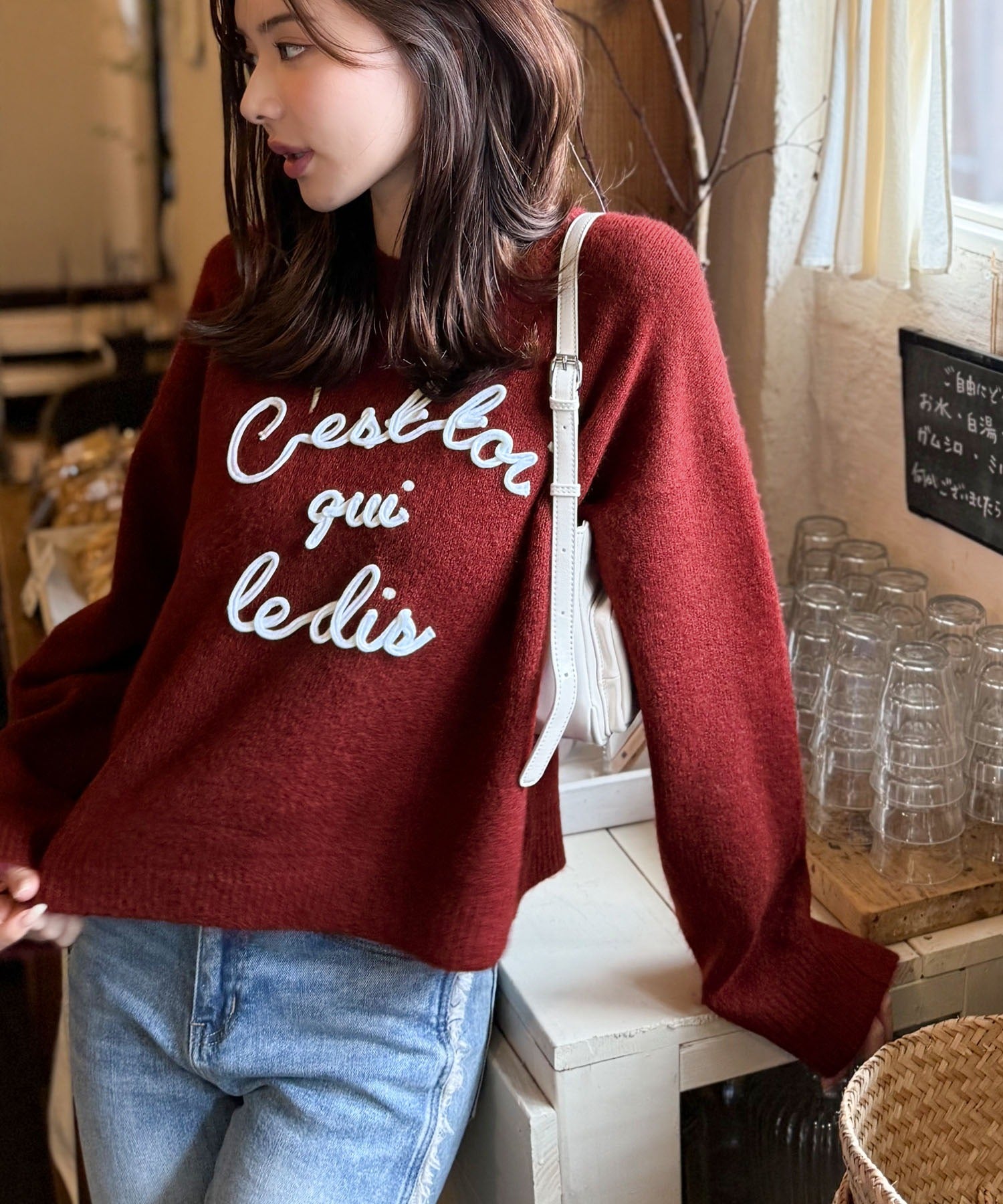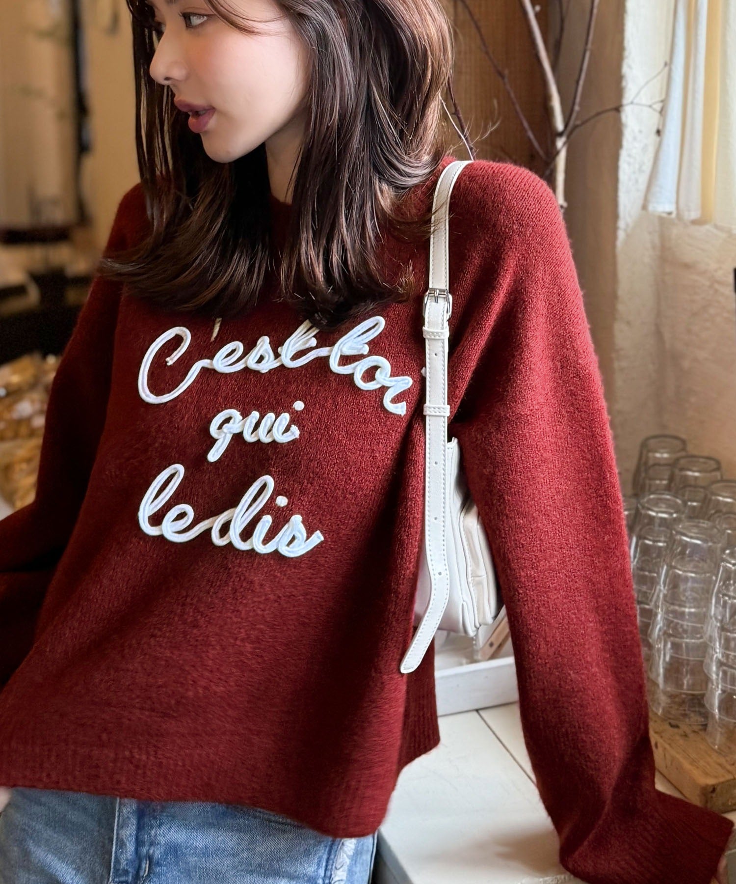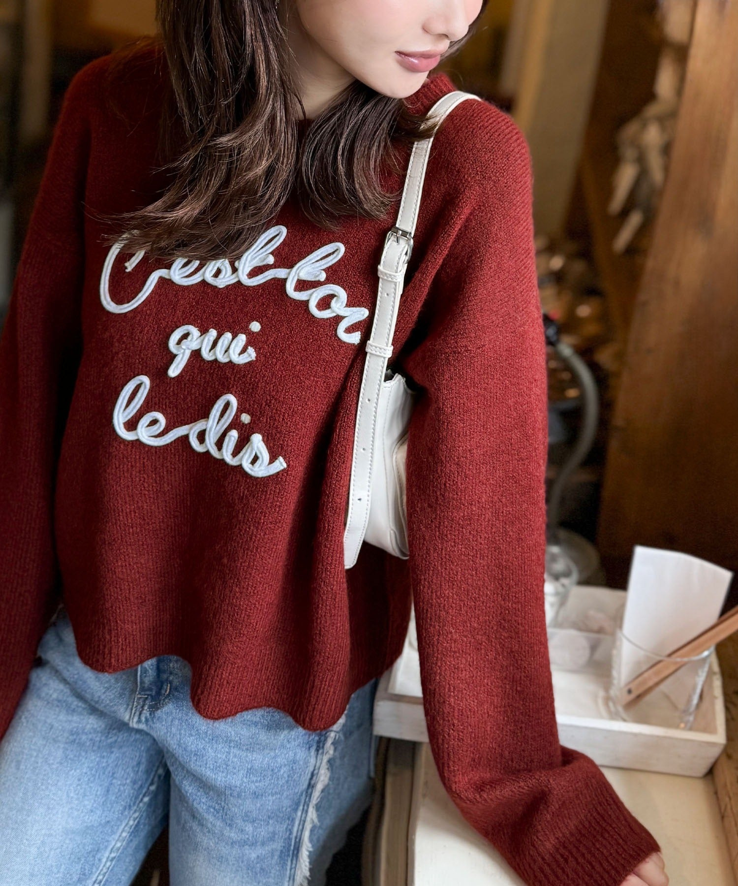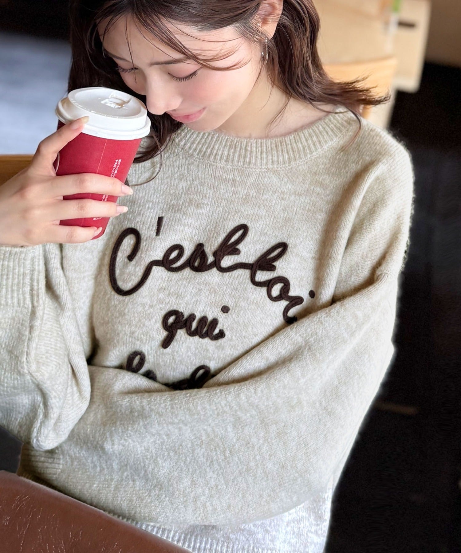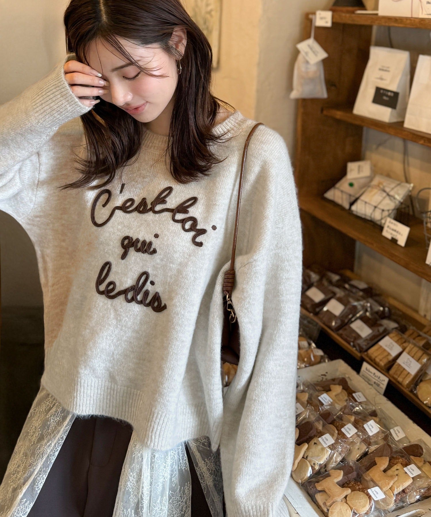 一枚で映える立体ロゴ刺繍のリラックスニット。