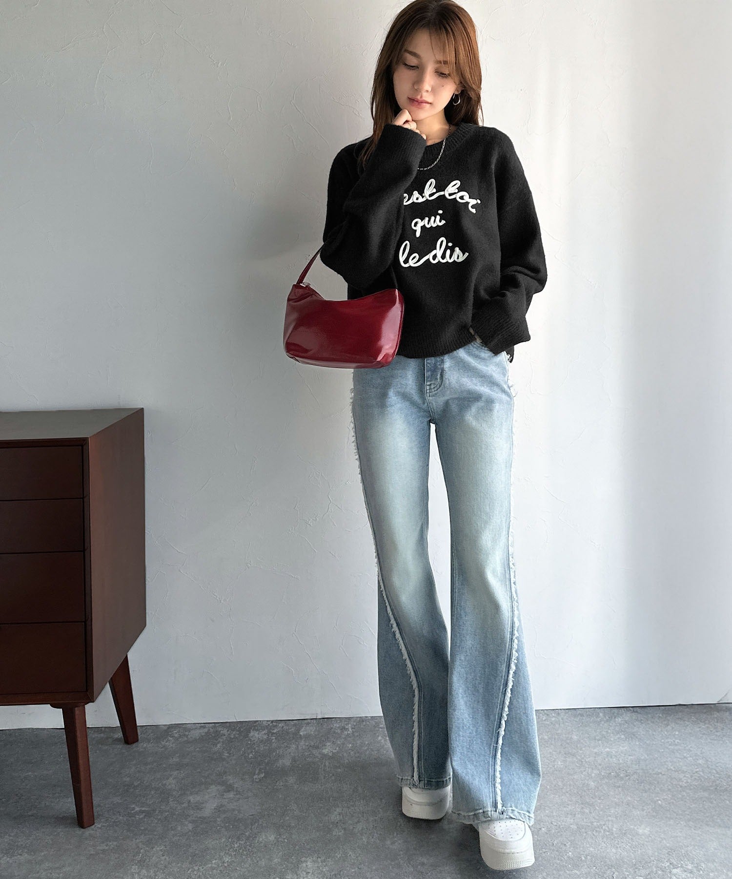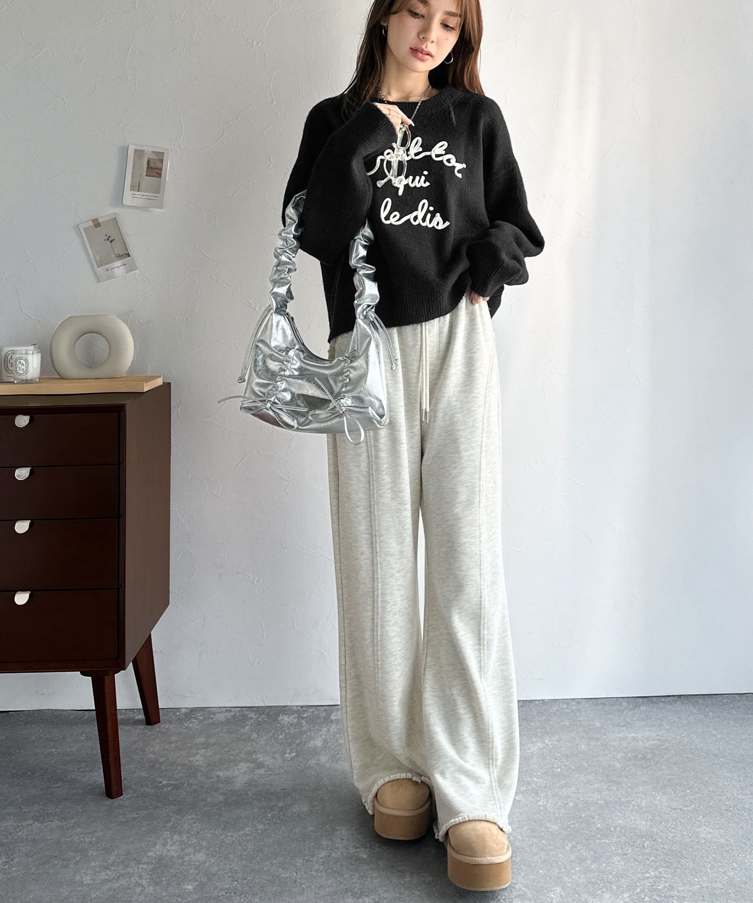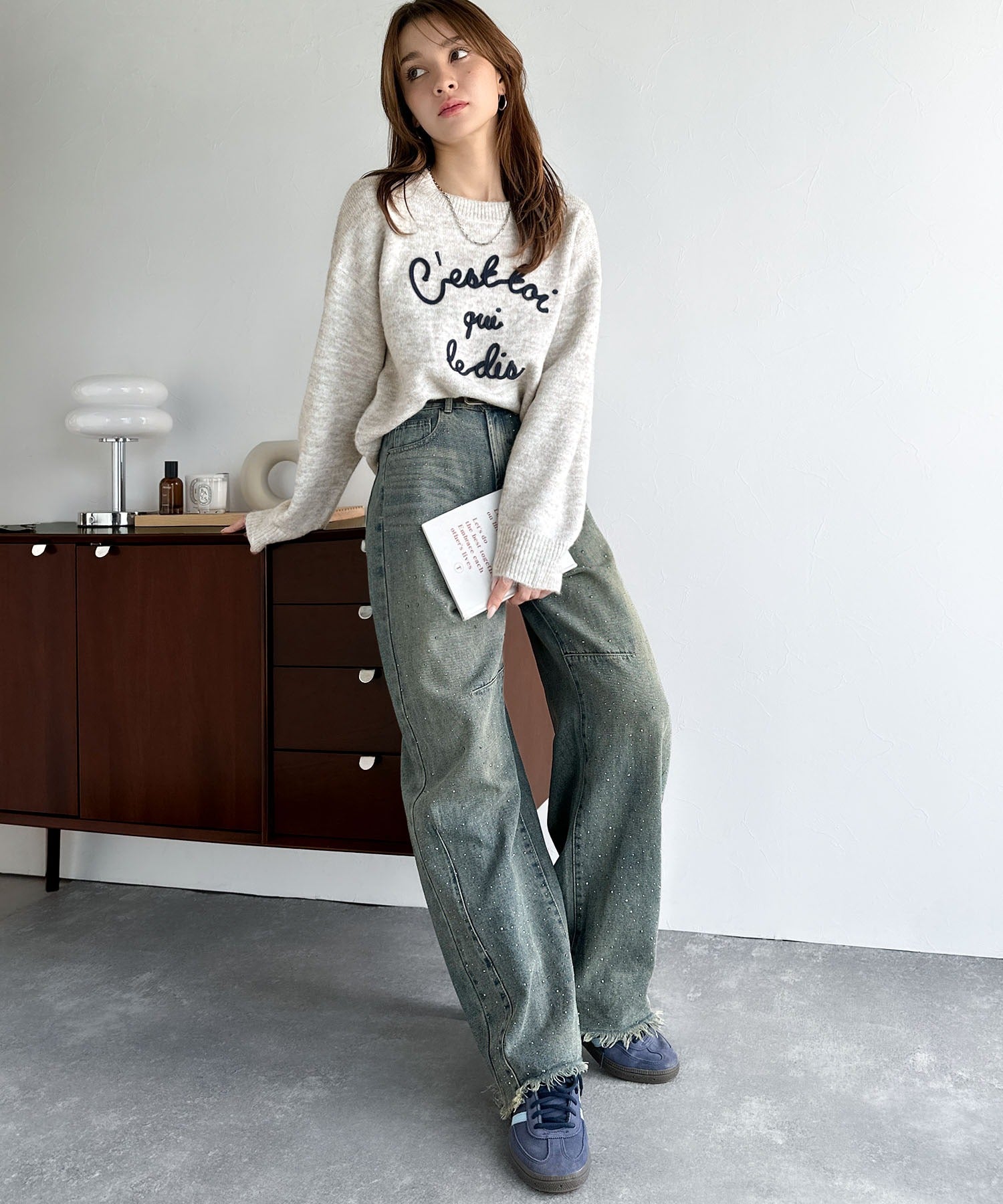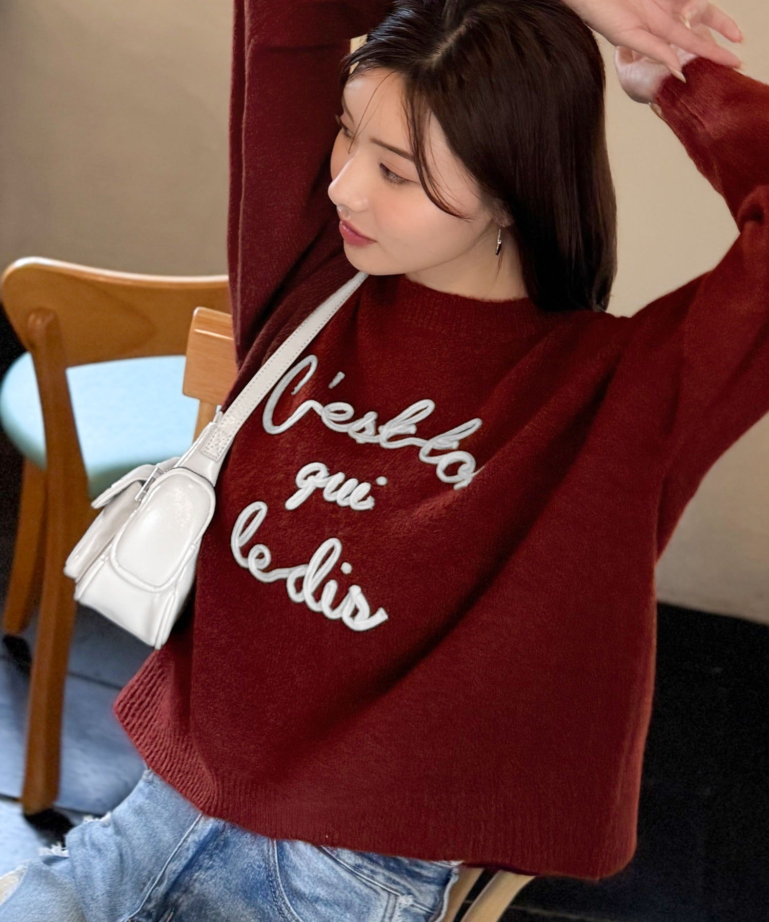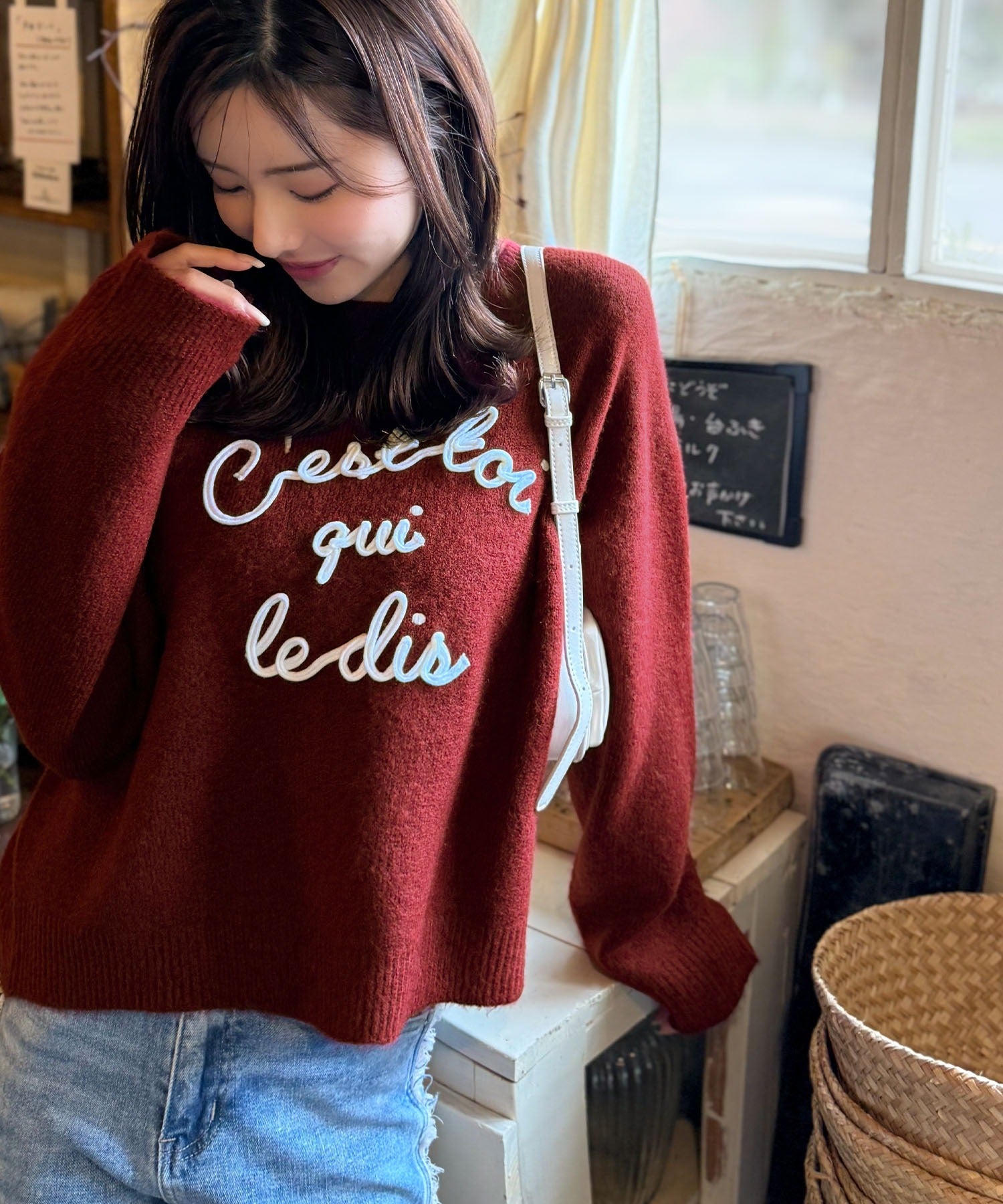 一枚で映える立体ロゴ刺繍のリラックスニット。