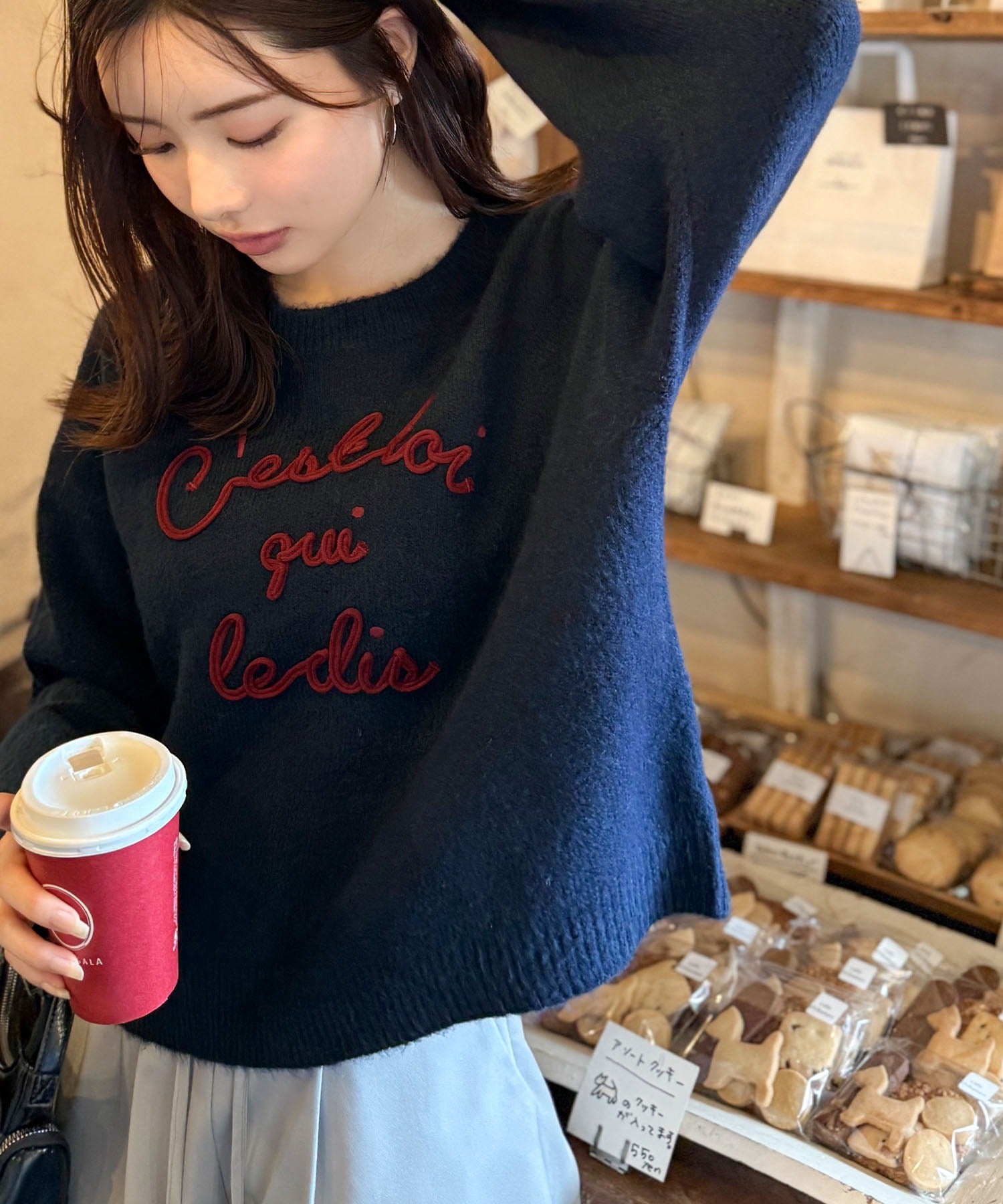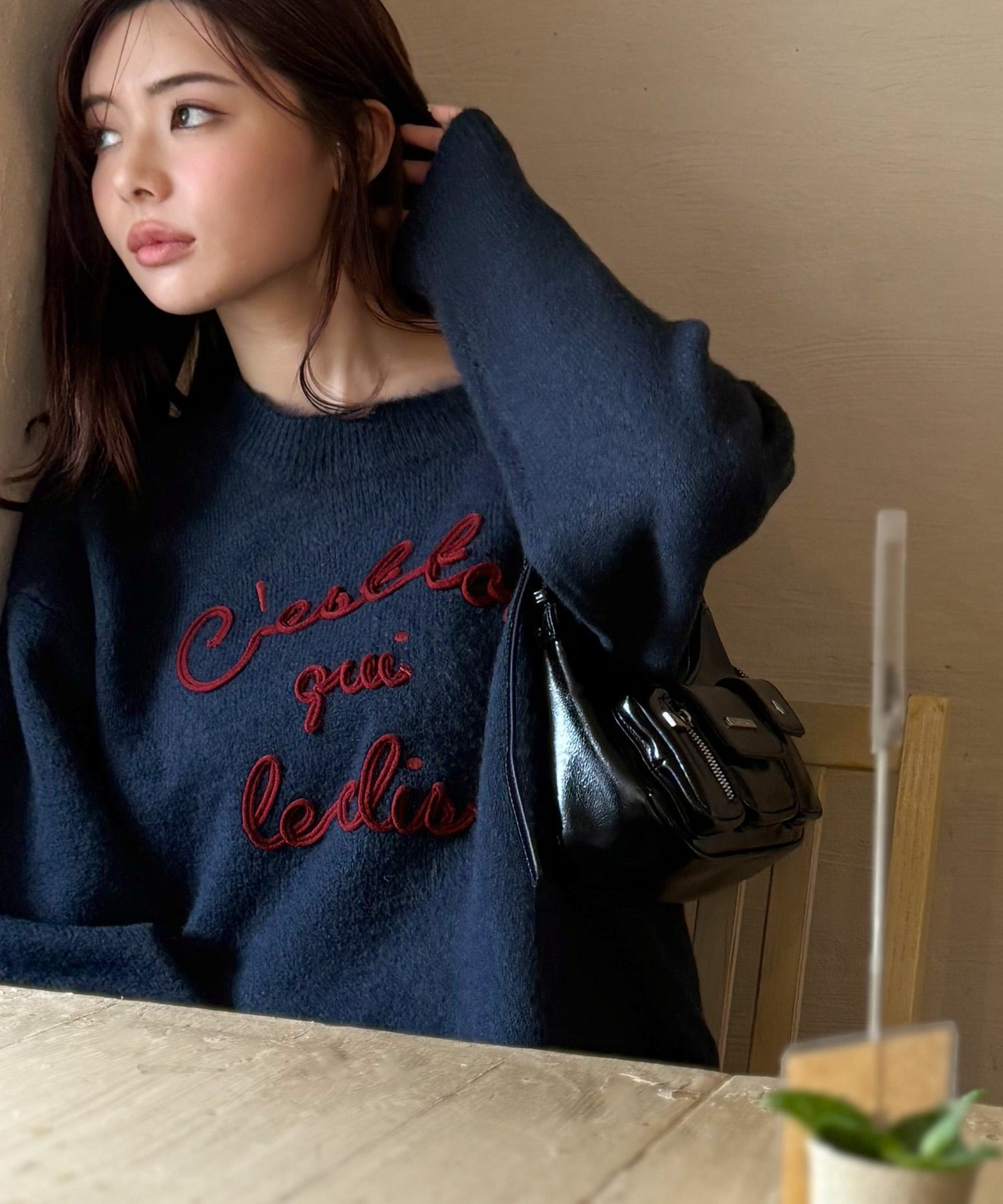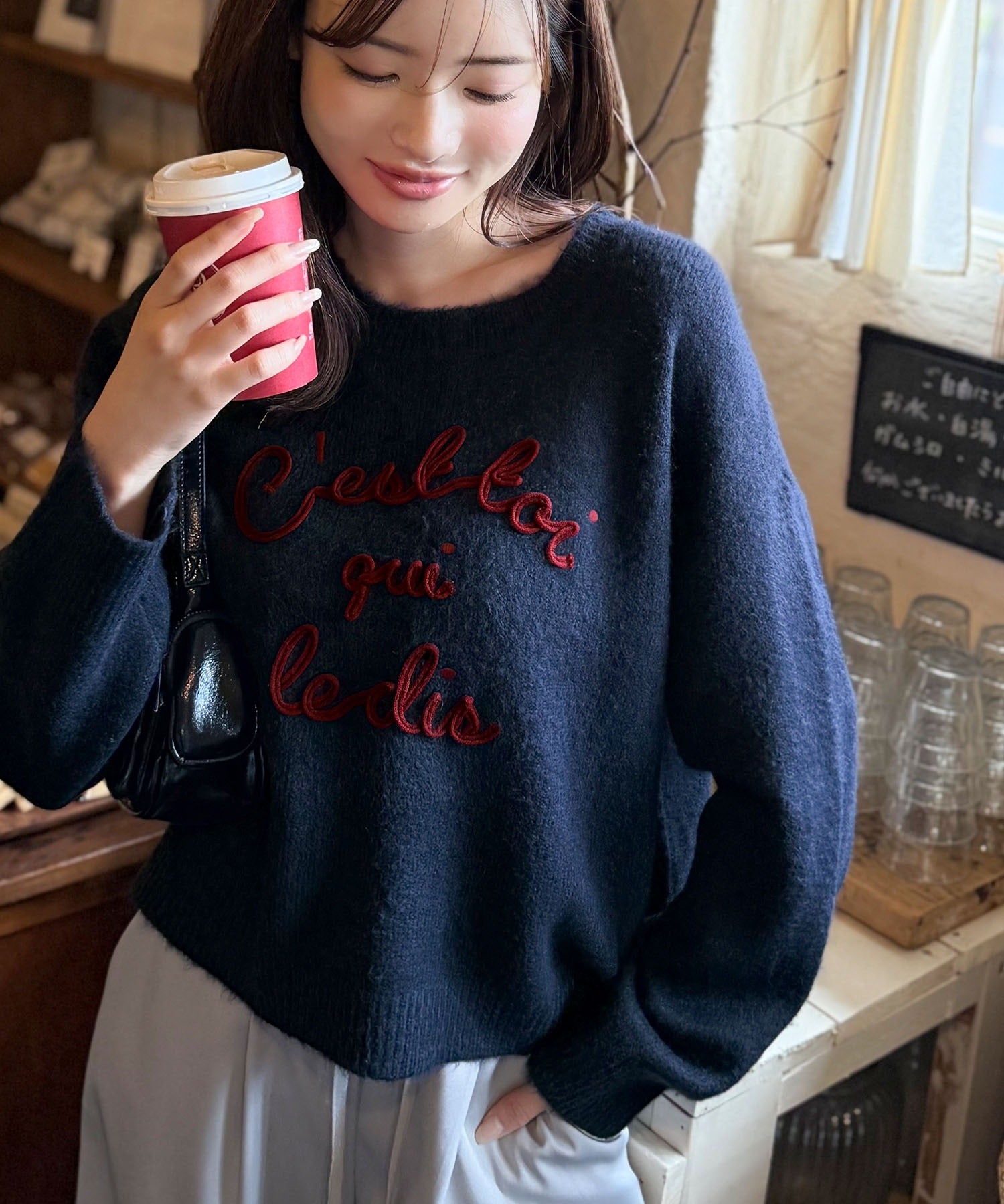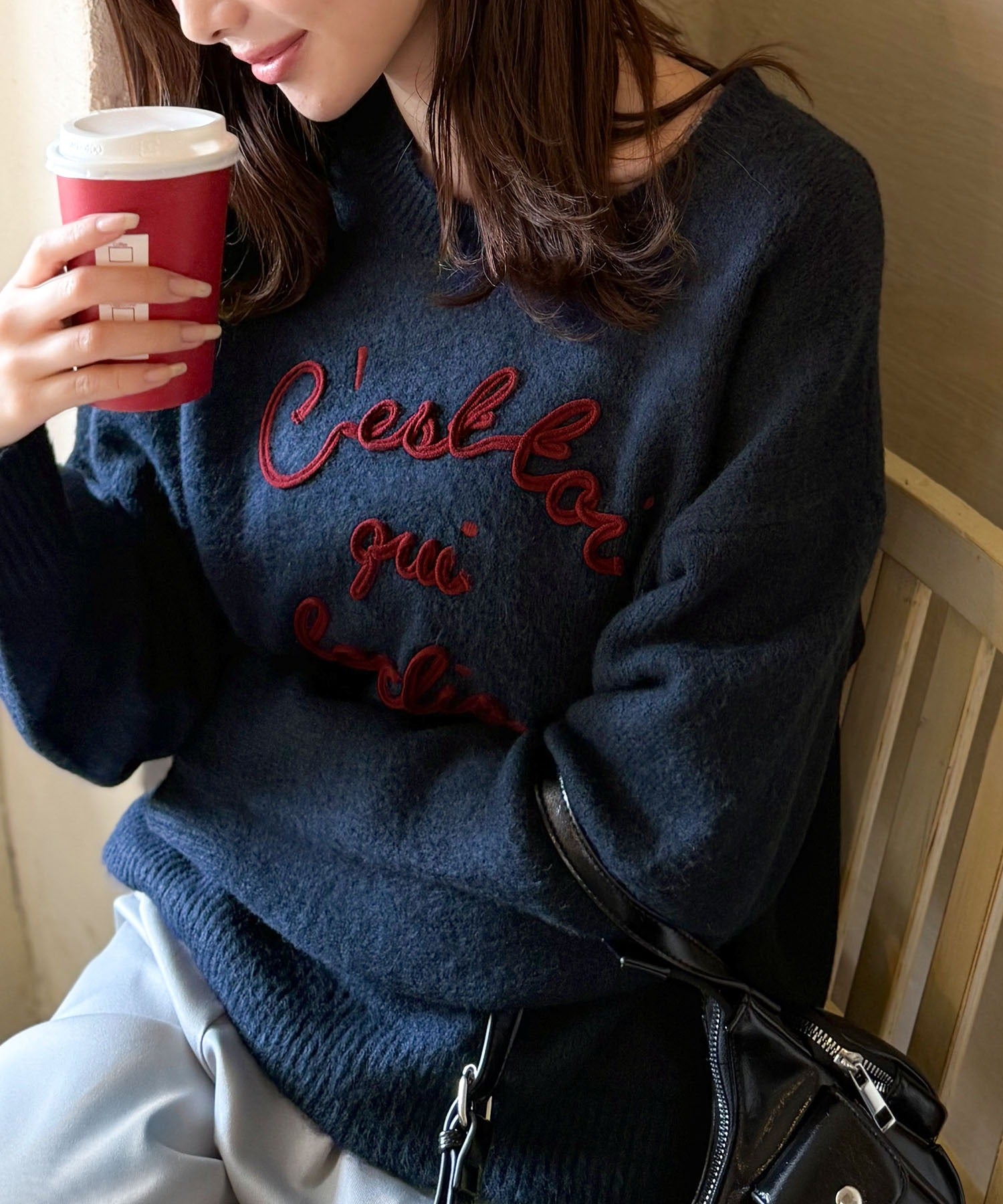 【mily bilet】おしゃれ女子の今シーズンイチ押し♪カラーコード刺繍ミックスニットプルオーバー mi1329045