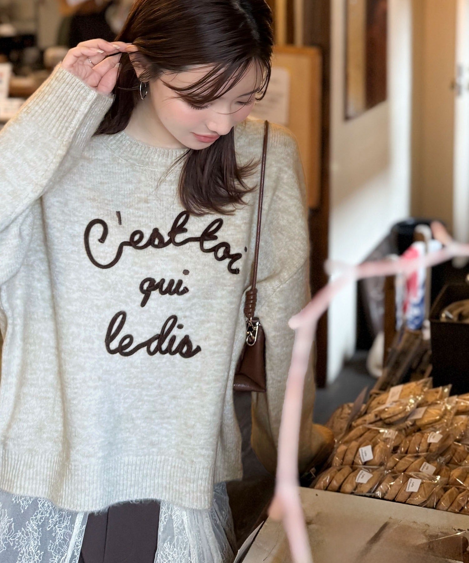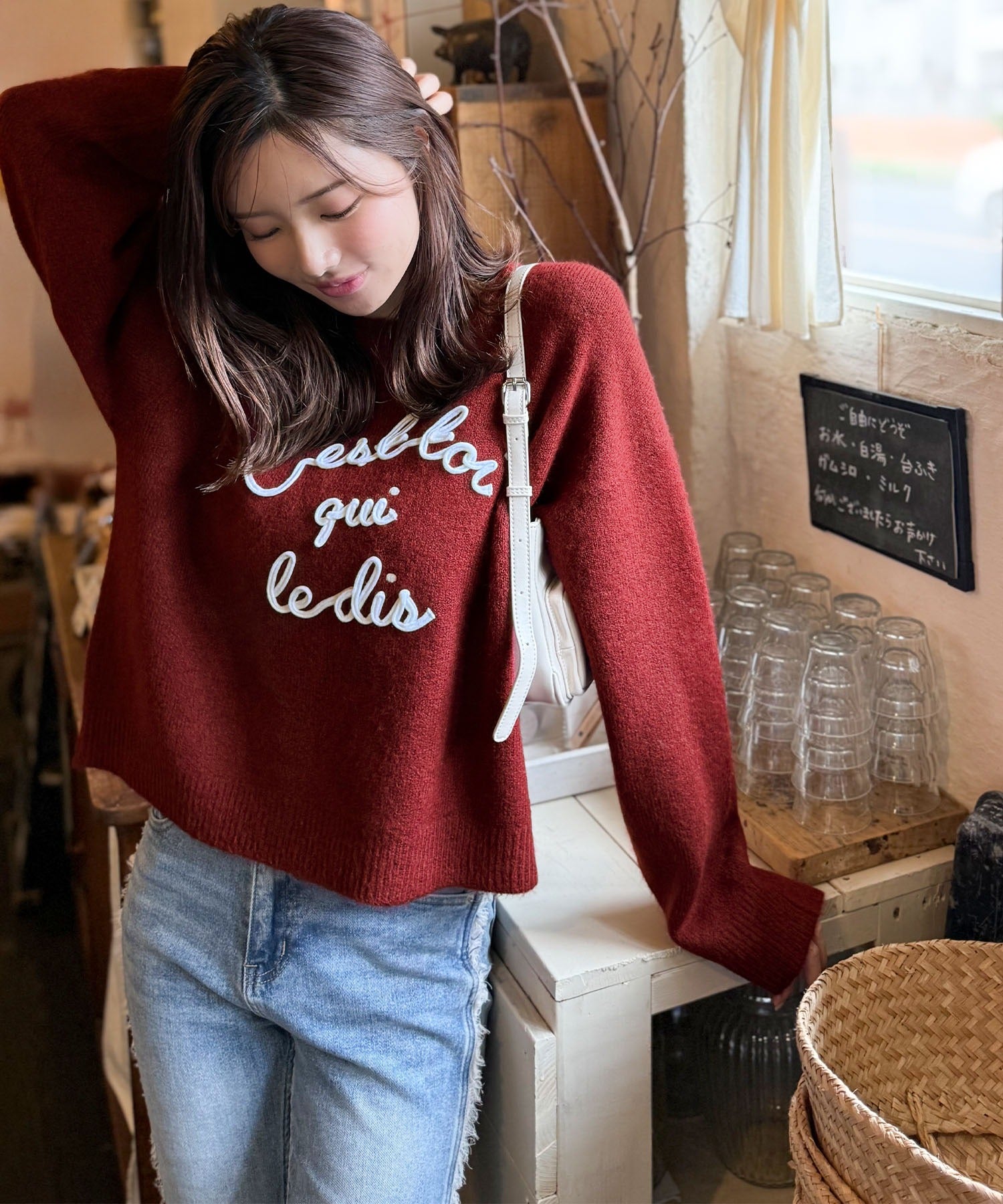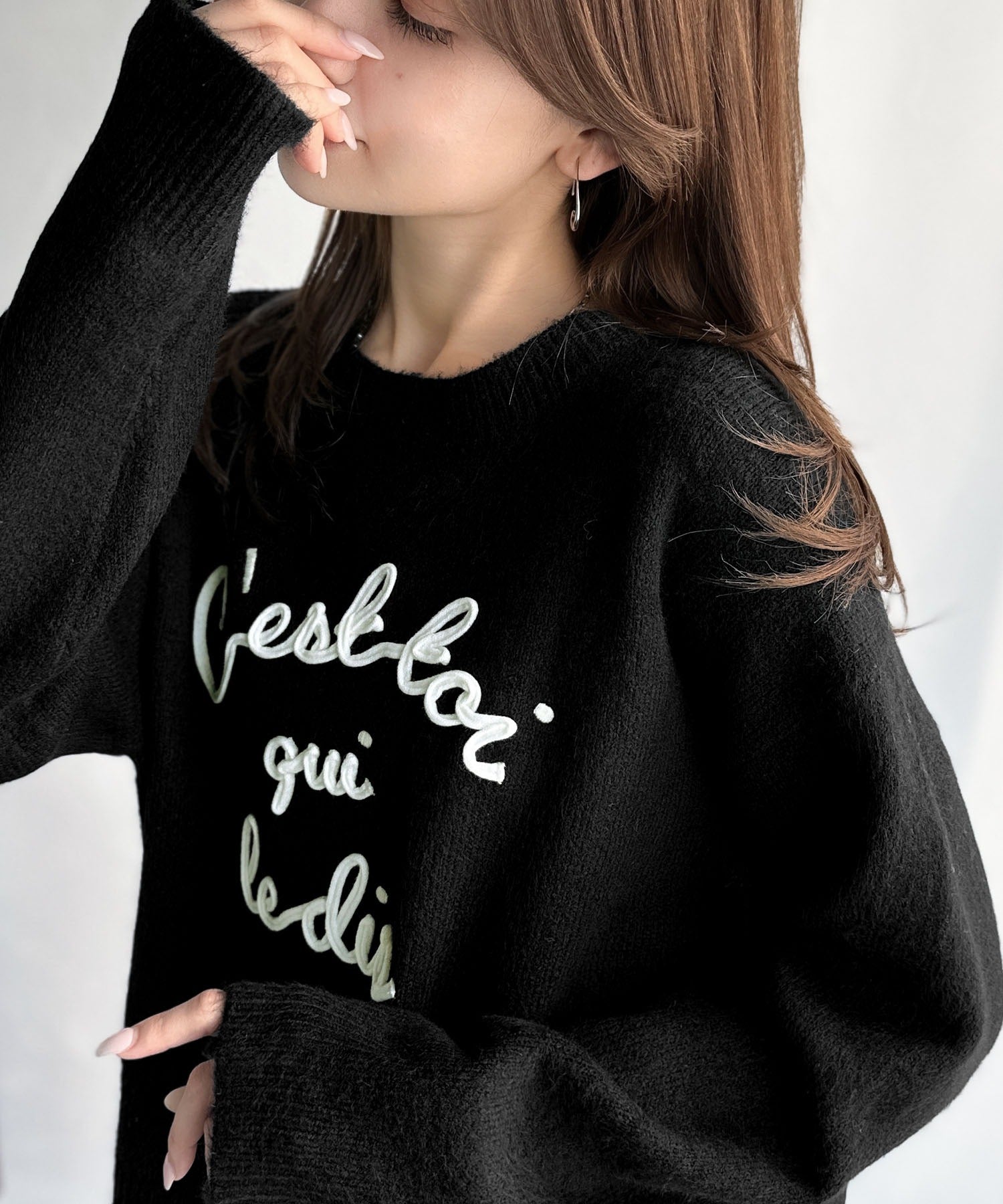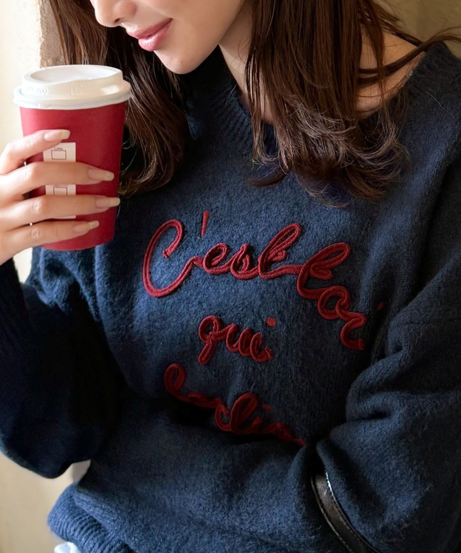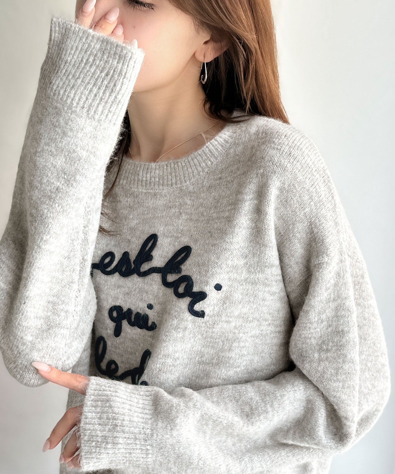 【mily bilet】おしゃれ女子の今シーズンイチ押し♪カラーコード刺繍ミックスニットプルオーバー mi1329045