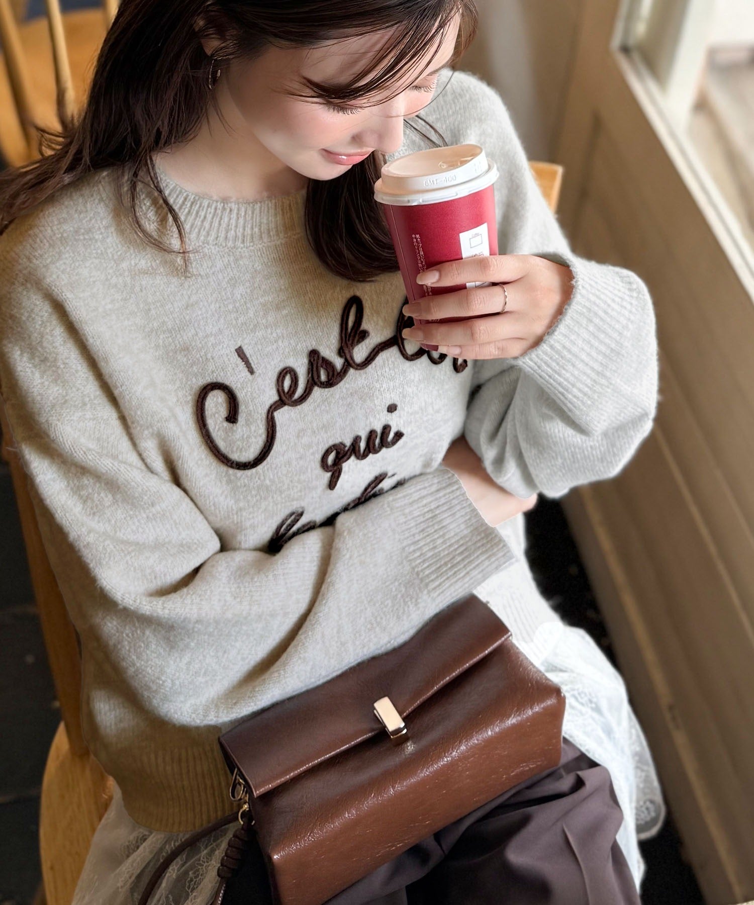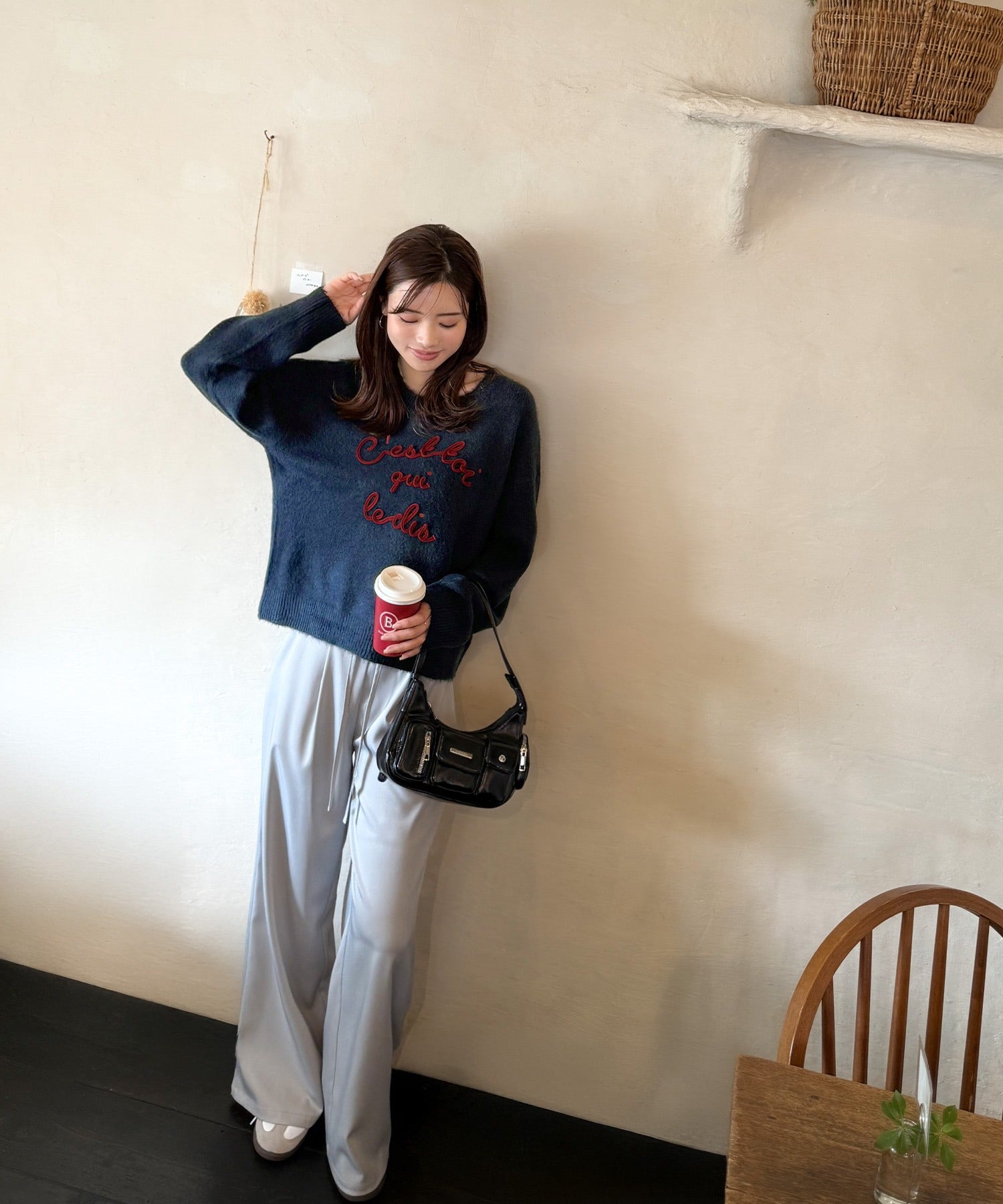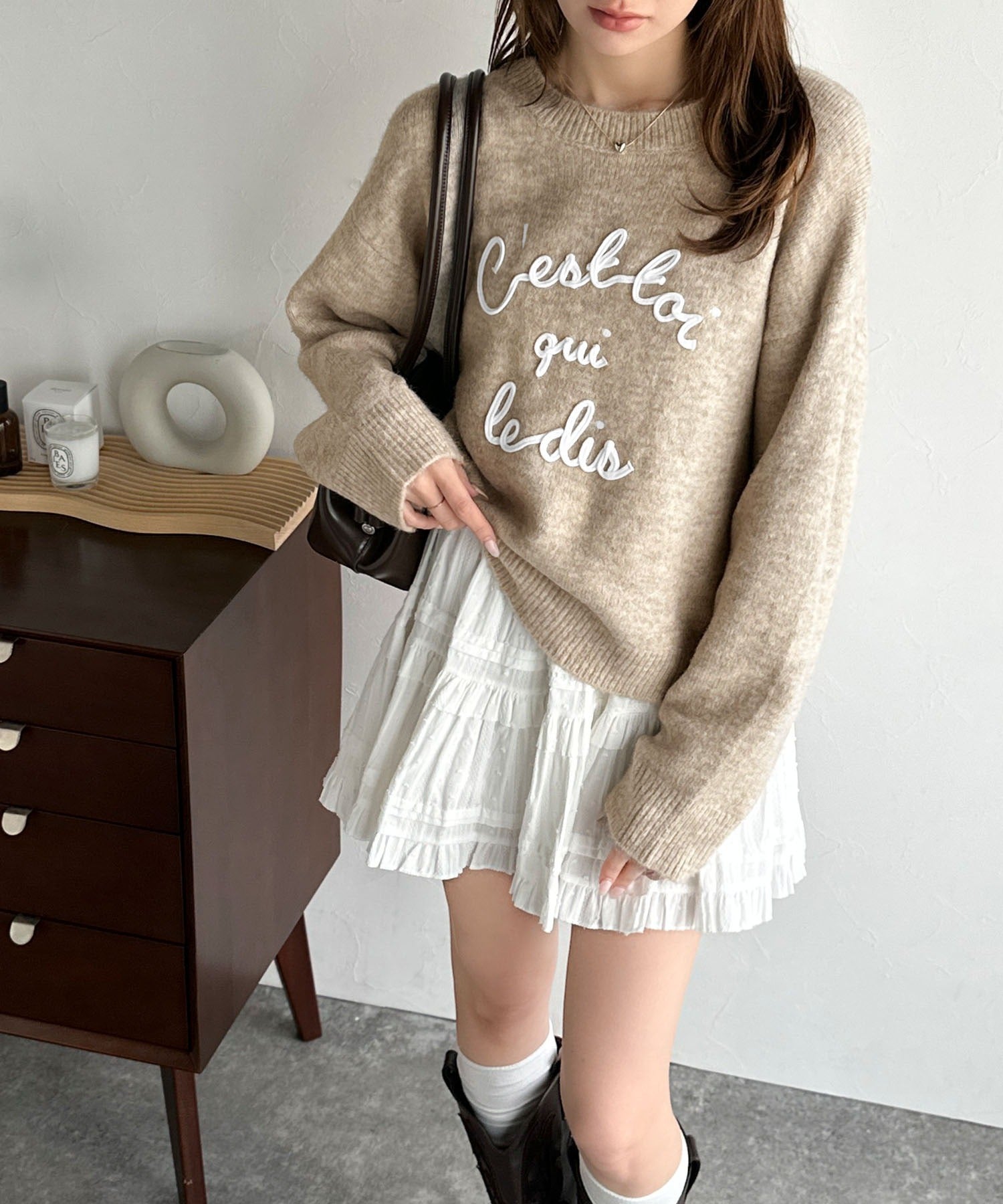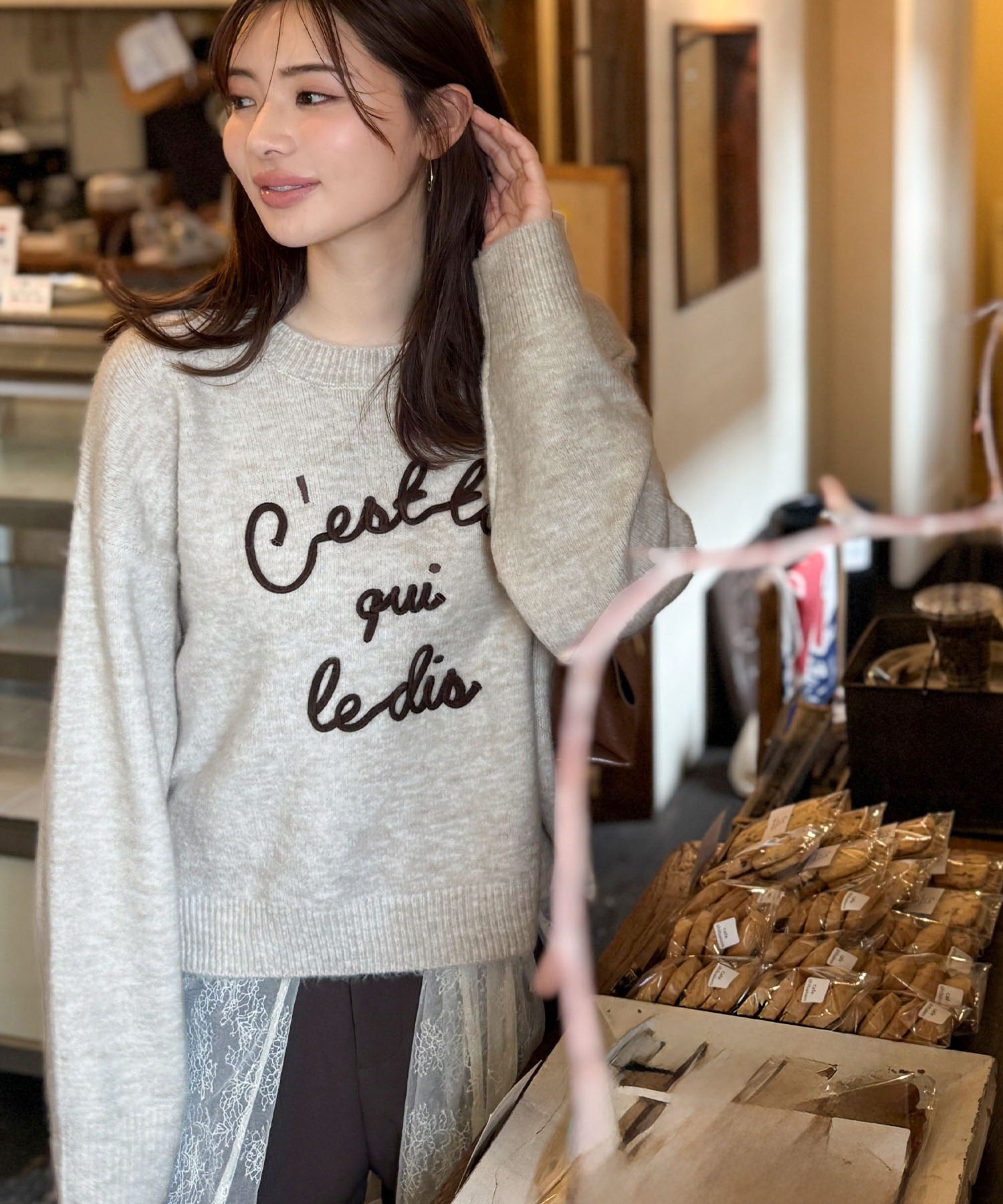 【mily bilet】おしゃれ女子の今シーズンイチ押し♪カラーコード刺繍ミックスニットプルオーバー mi1329045
