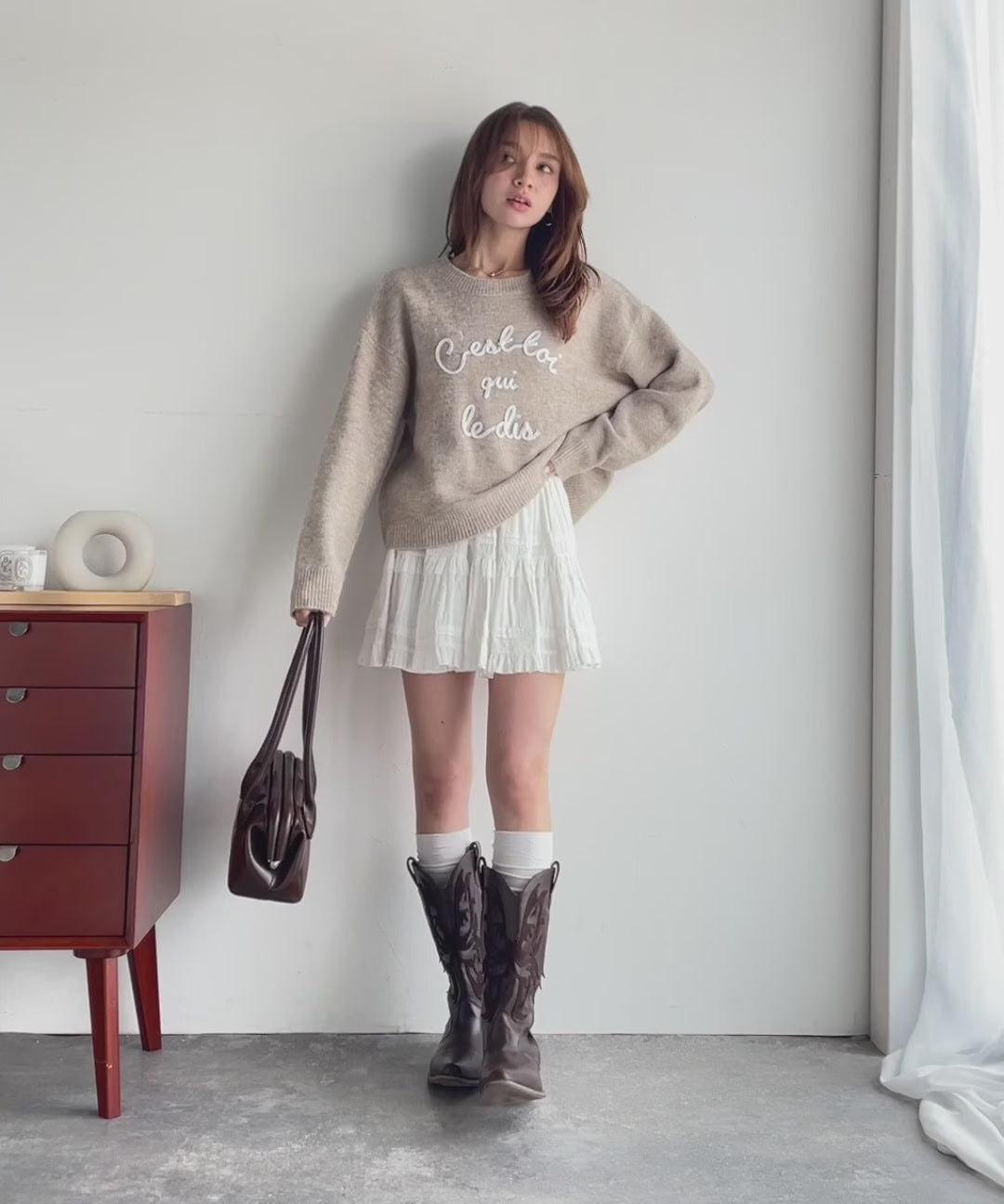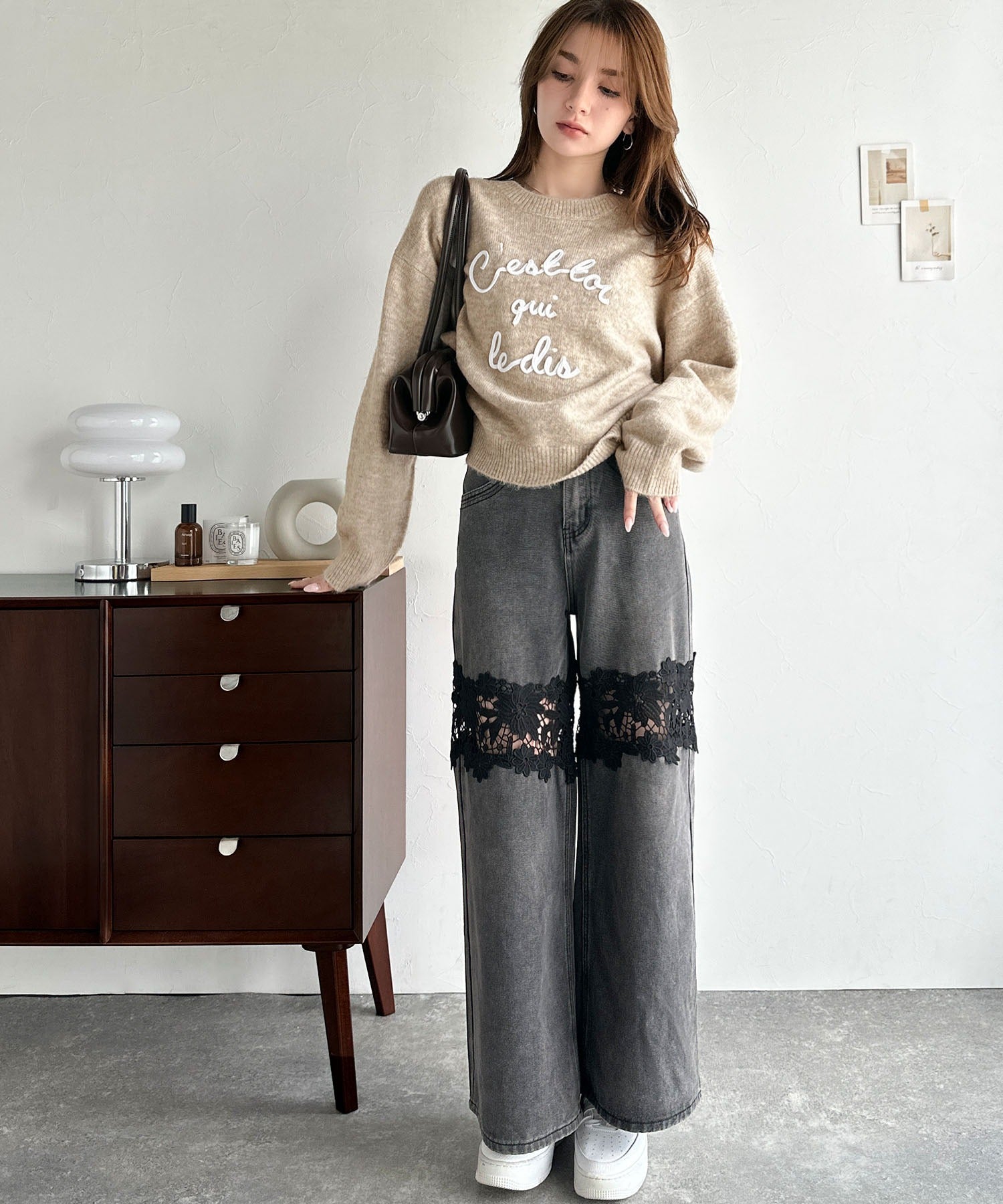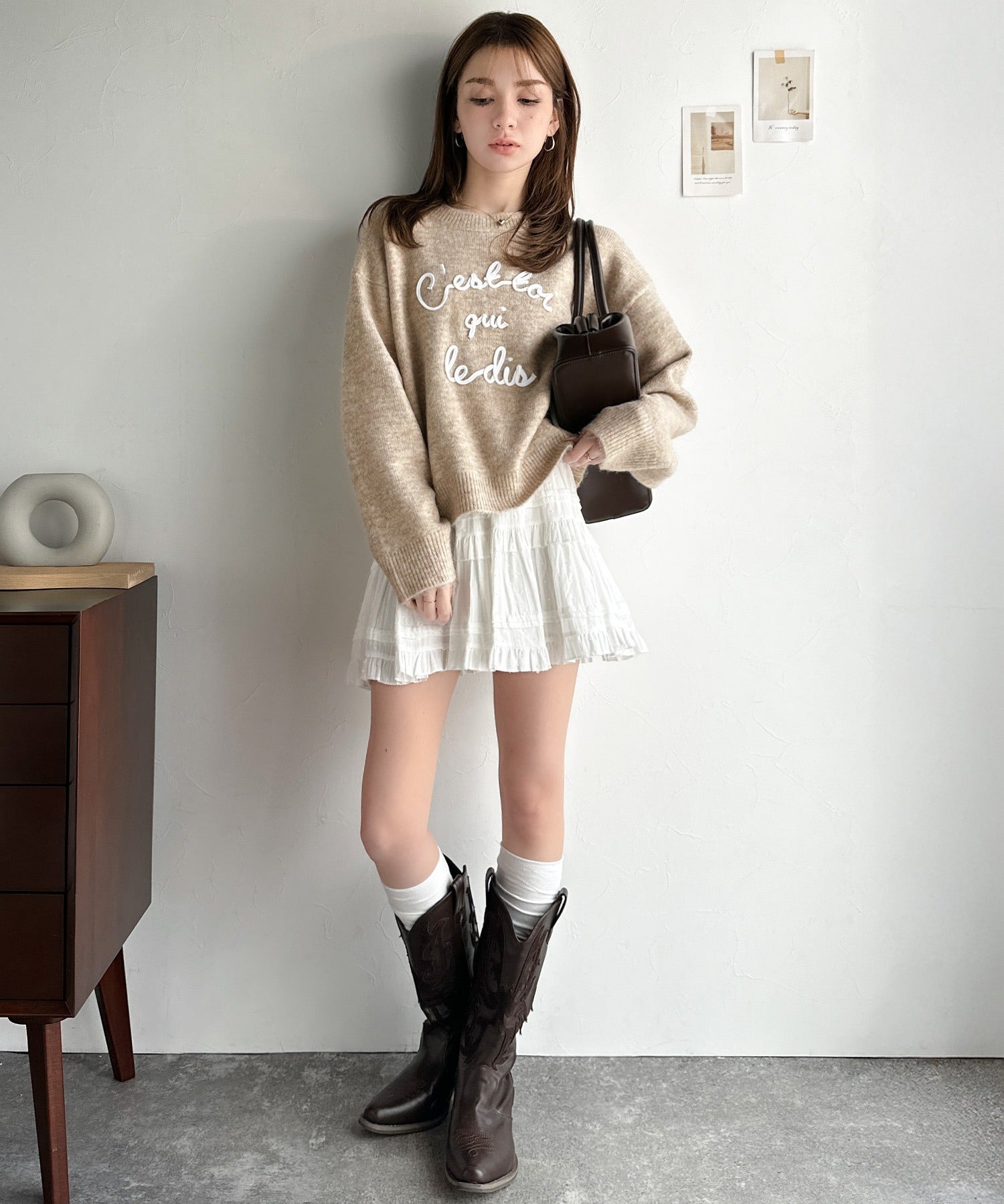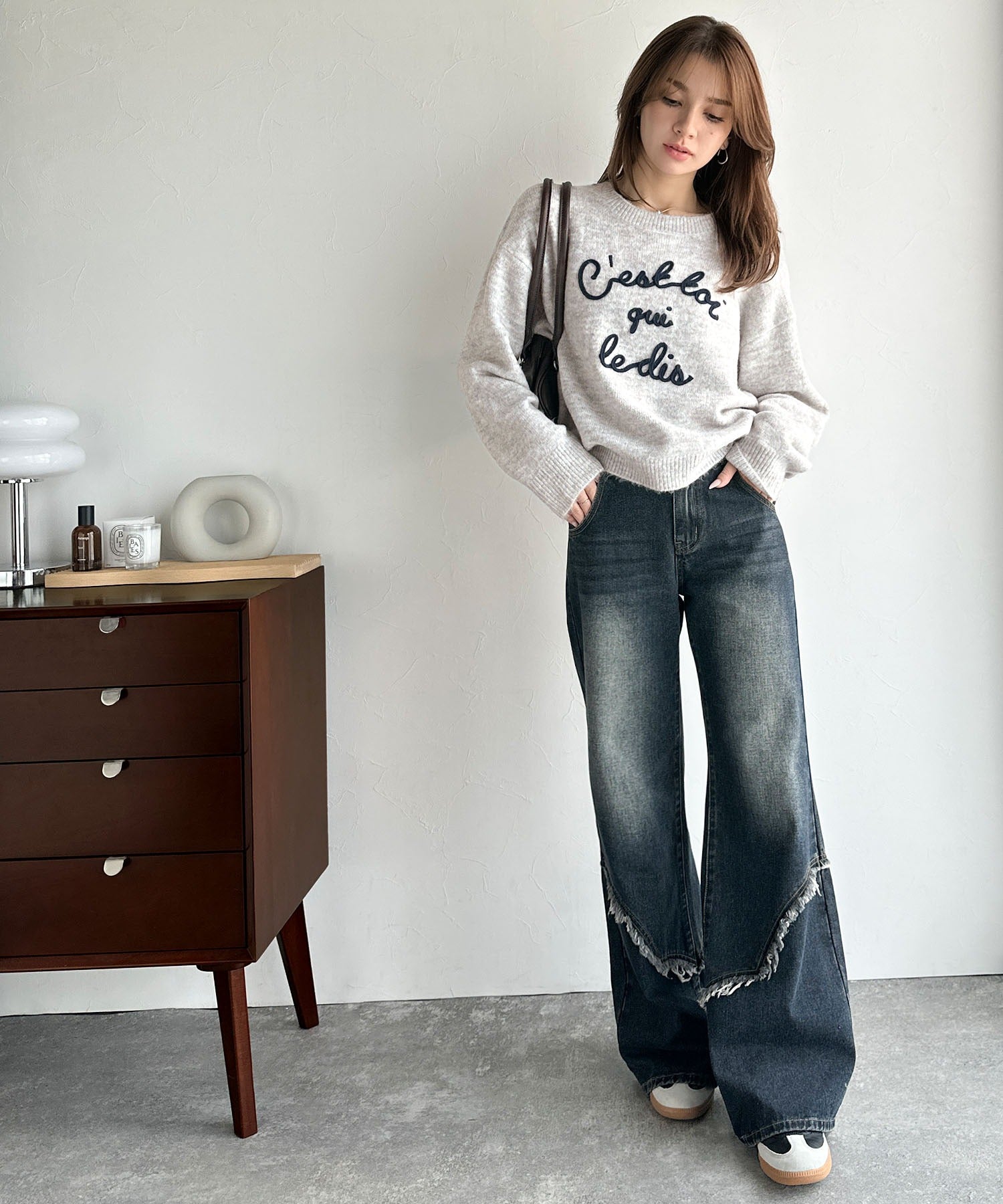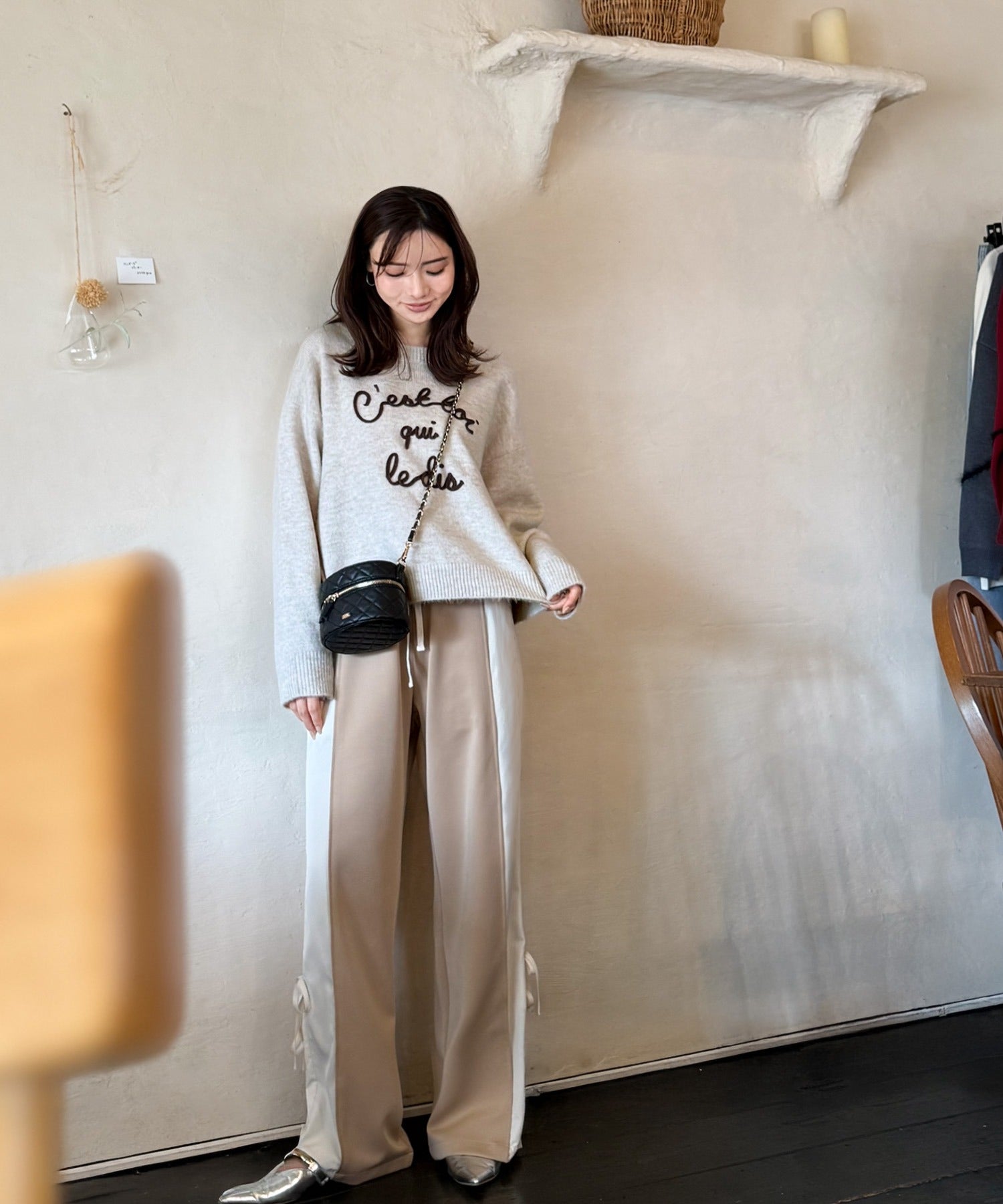 【mily bilet】おしゃれ女子の今シーズンイチ押し♪カラーコード刺繍ミックスニットプルオーバー mi1329045