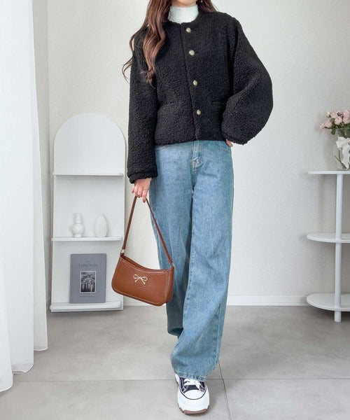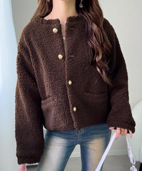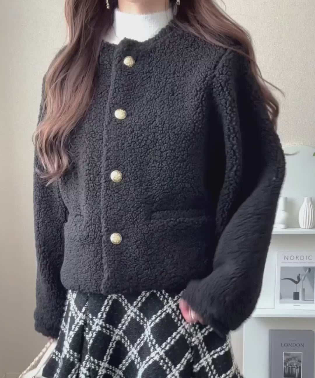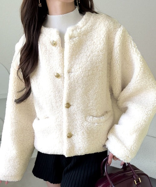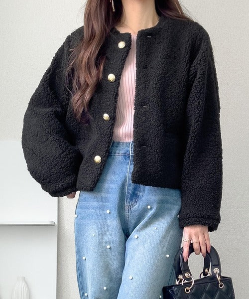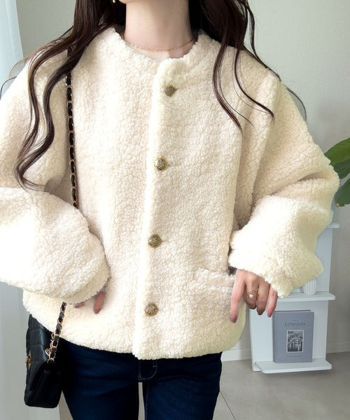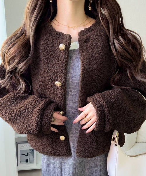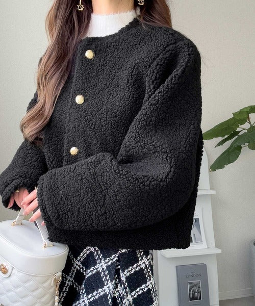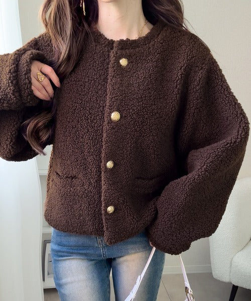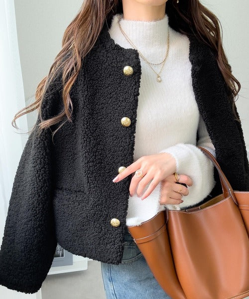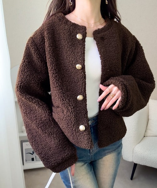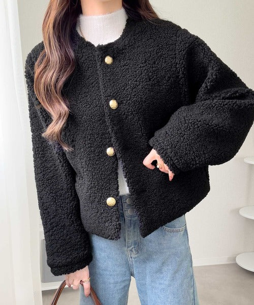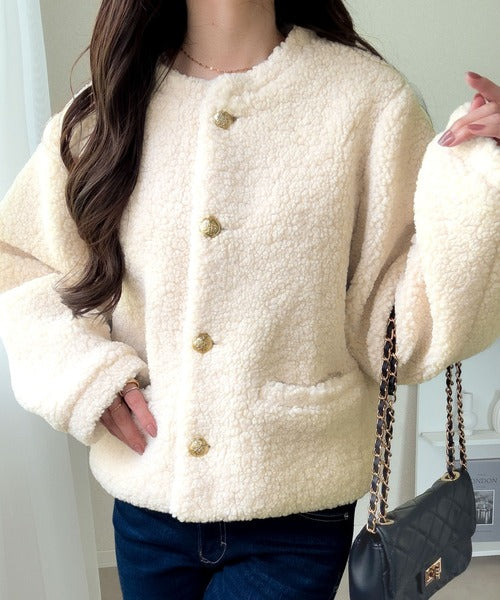 【mily bilet】リッチ感漂うゴールド釦×ふんわりボアで、羽織るだけで華やかに。エンブレムボタン使いボアジャケット mi1329051