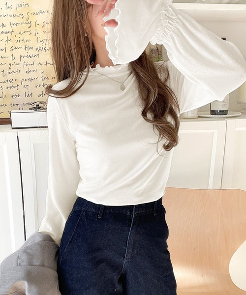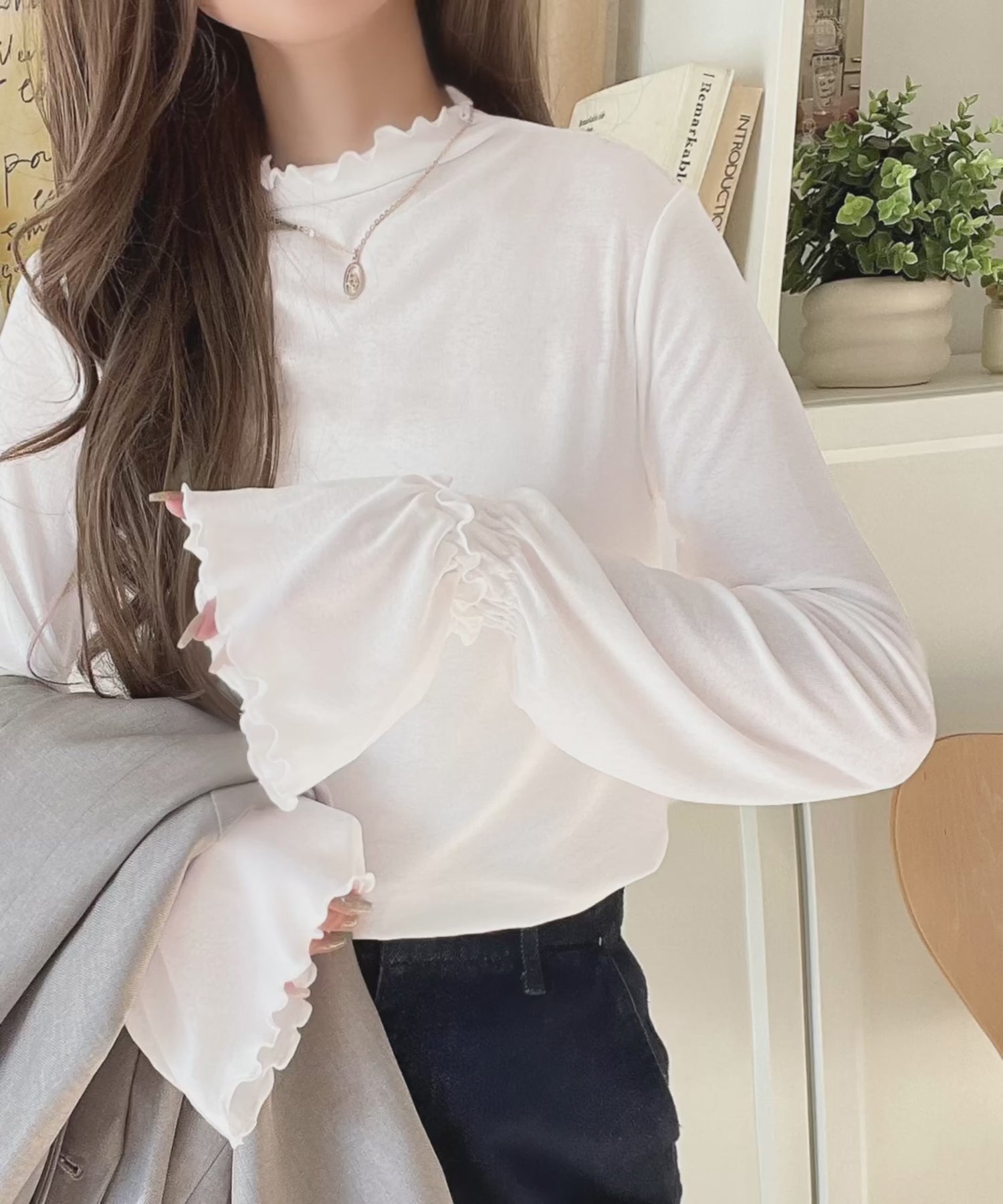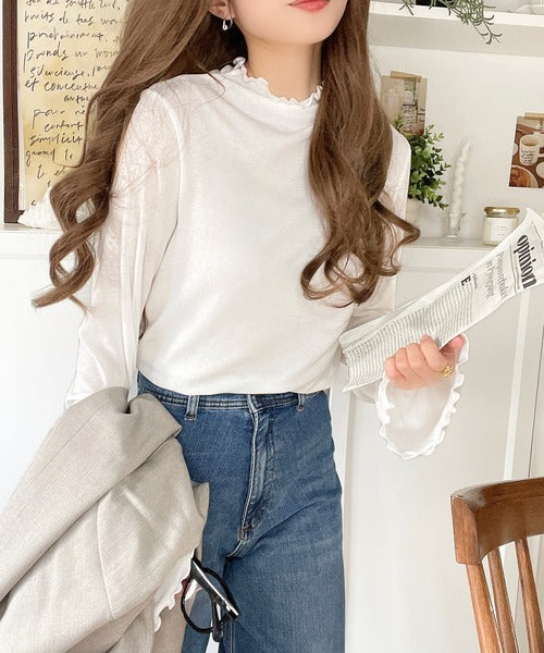 顔回りと手元を大人可愛く演出する、メローフリルが魅力の