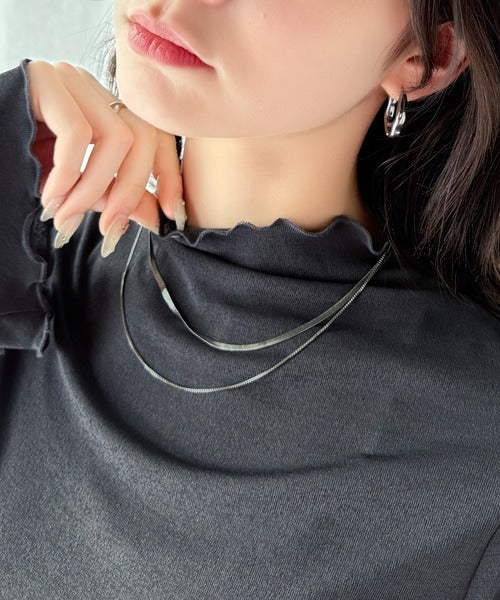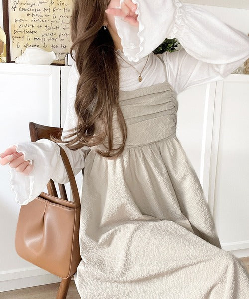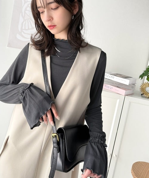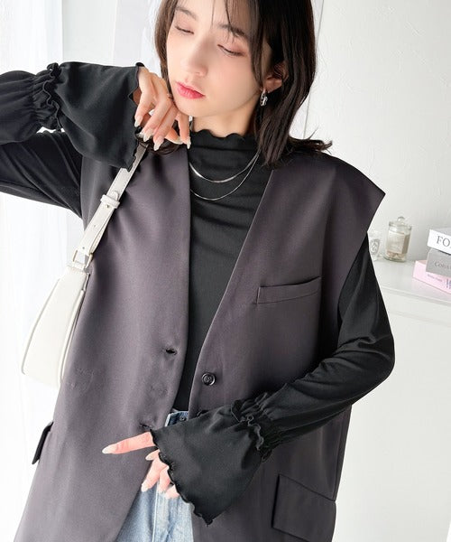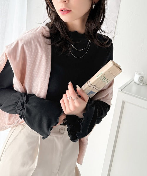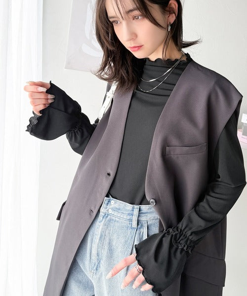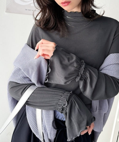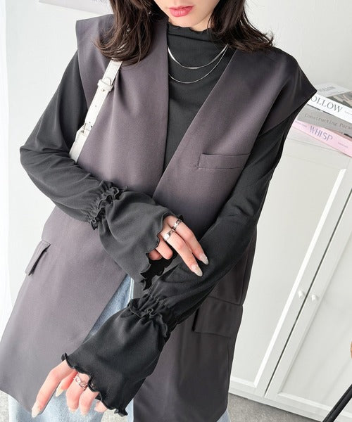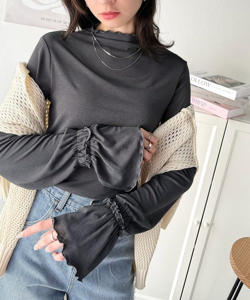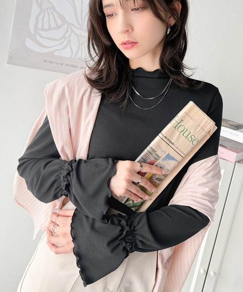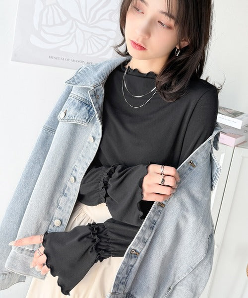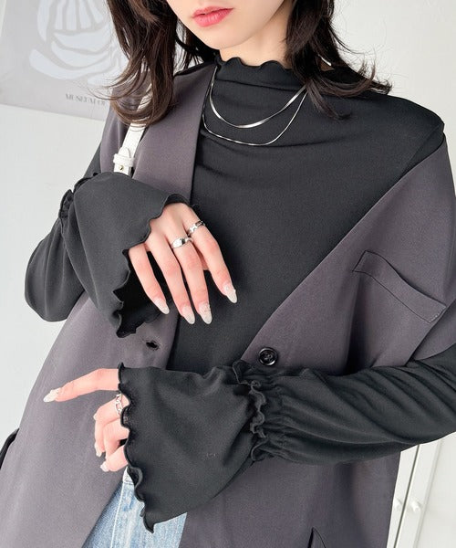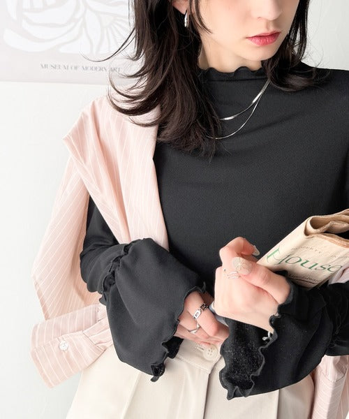 とのレイヤードで、首元と袖口からフリルをのぞかせれば