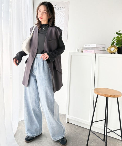 春には、ジレやジャンバースカートとのレイヤードスタイルがおすすめ♪