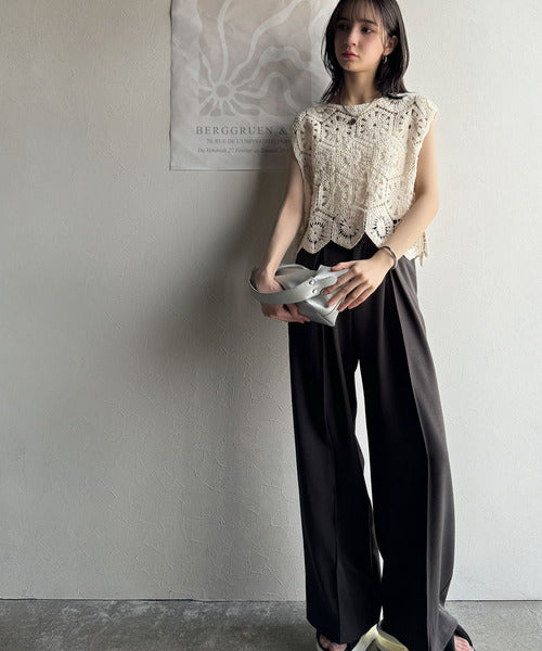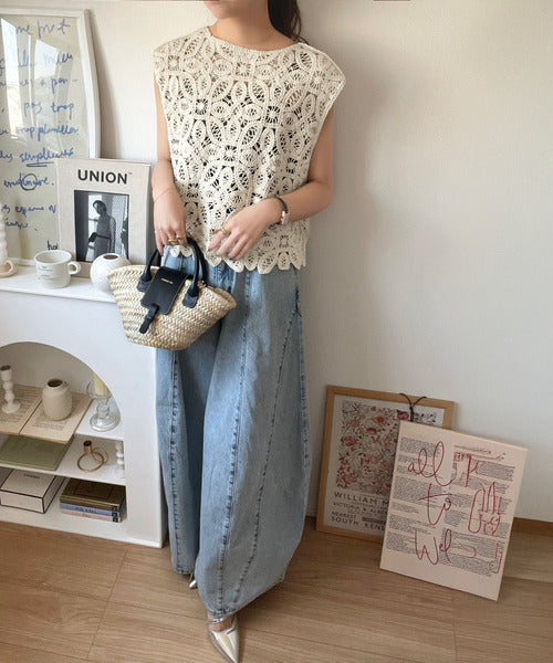 このアイテムは、見え過ぎない程よい透け感の編みデザインが