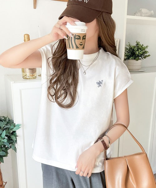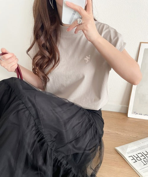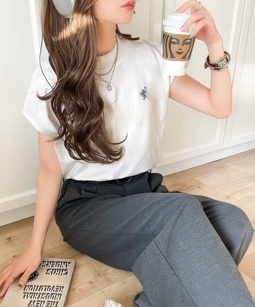 胸元のワンポイント刺繍がさりげないアクセントに◎