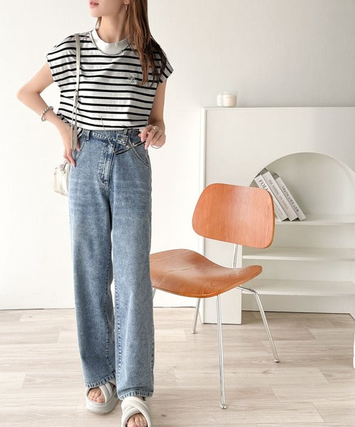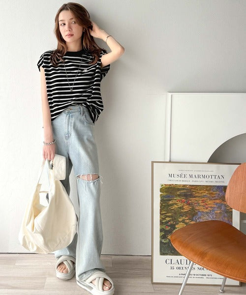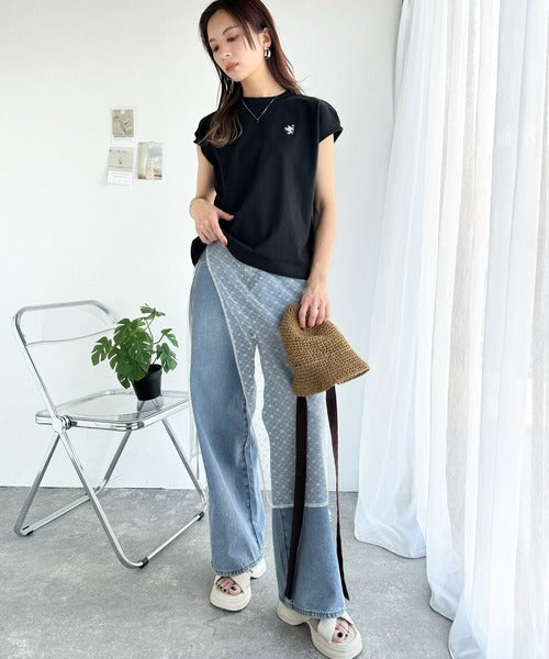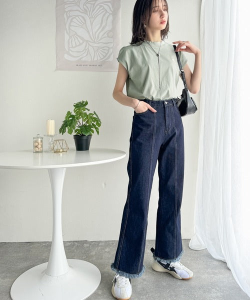 その日の気分に合わせてデニムやフレアパンツを合わせてもOK◎