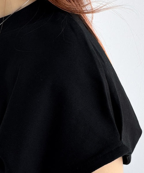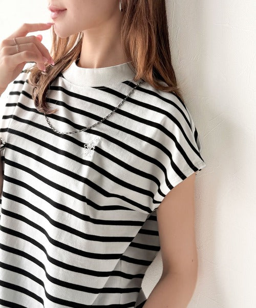 お洒落見えなモックネックにフレンチスリーブデザインで、