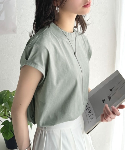 なめらかな質感が上品さを演出する、「シルケットモックネックフレンチTシャツ」!
