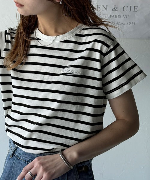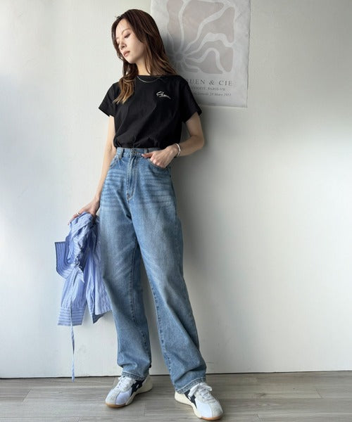 シンプルなデザインながらも、ロゴ刺繍がポイントの半袖Tシャツ。
