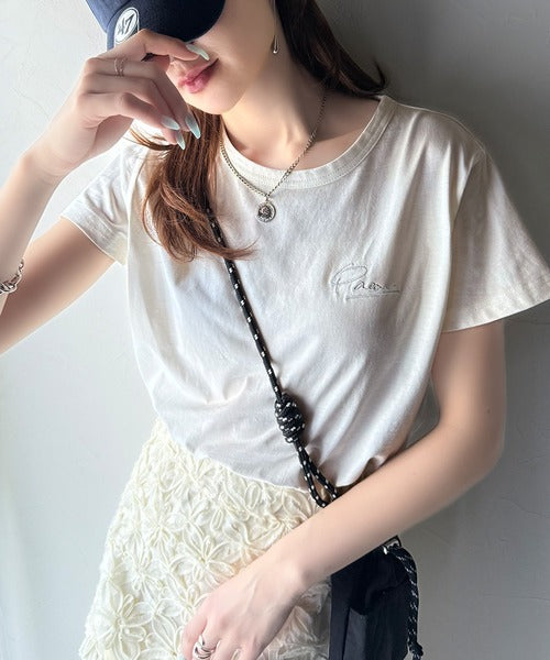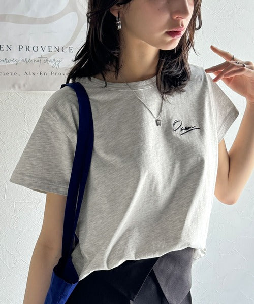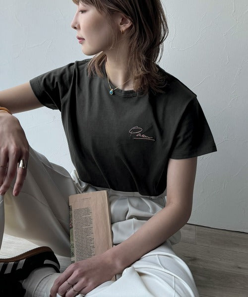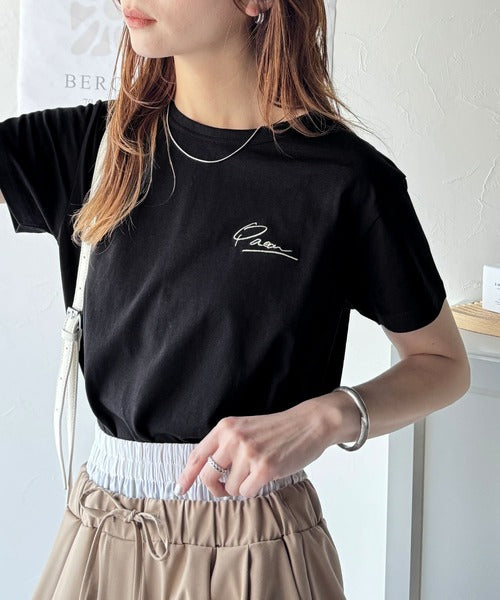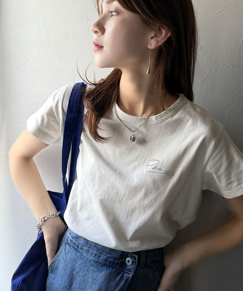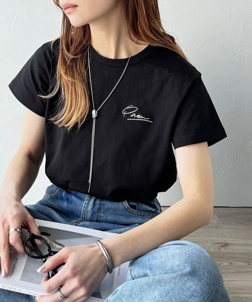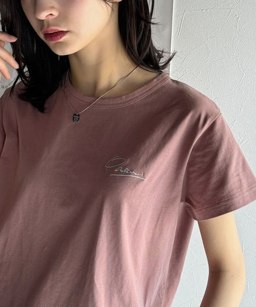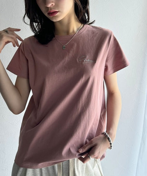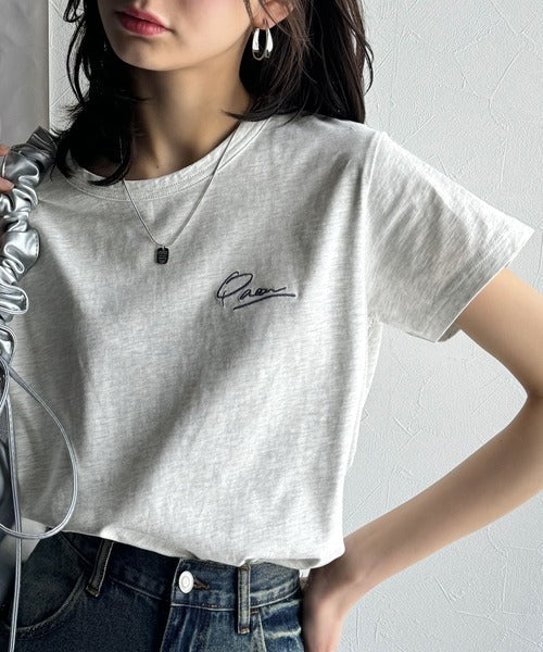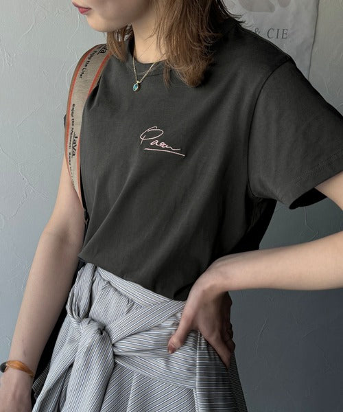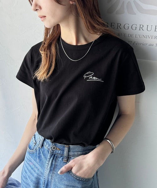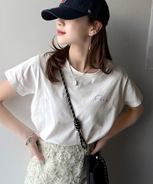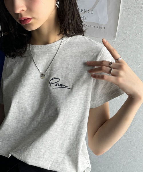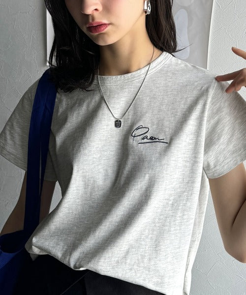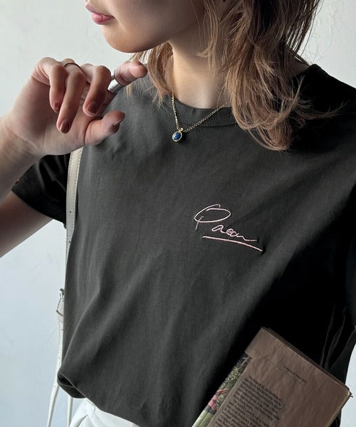 【sustaina+】こなれ感たっぷり。オーガニックコットン100%胸元PAEAN刺繍Tシャツ(半袖) ce1260401