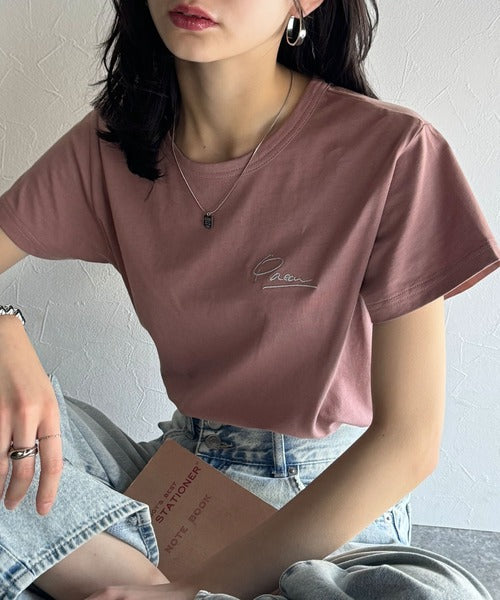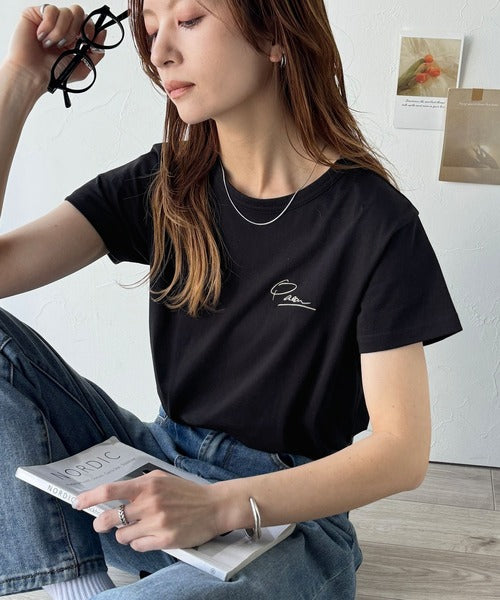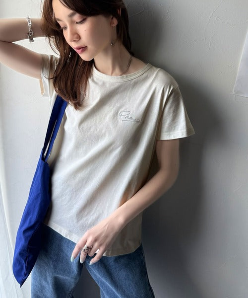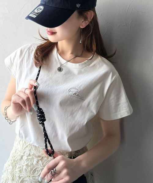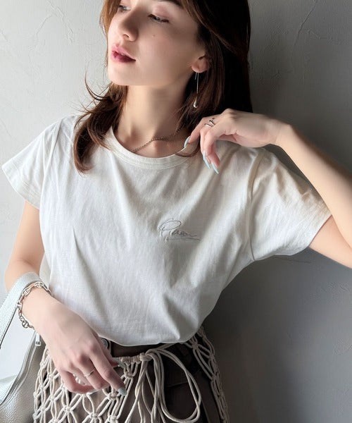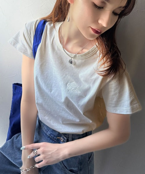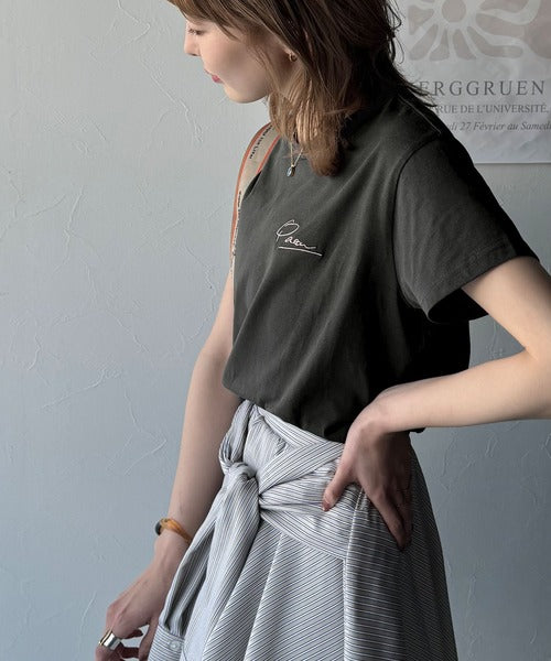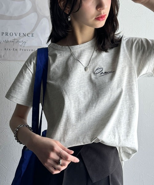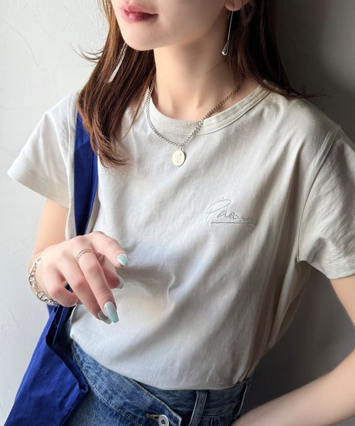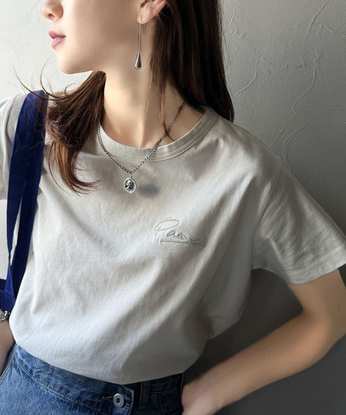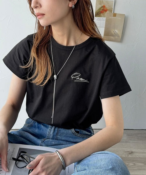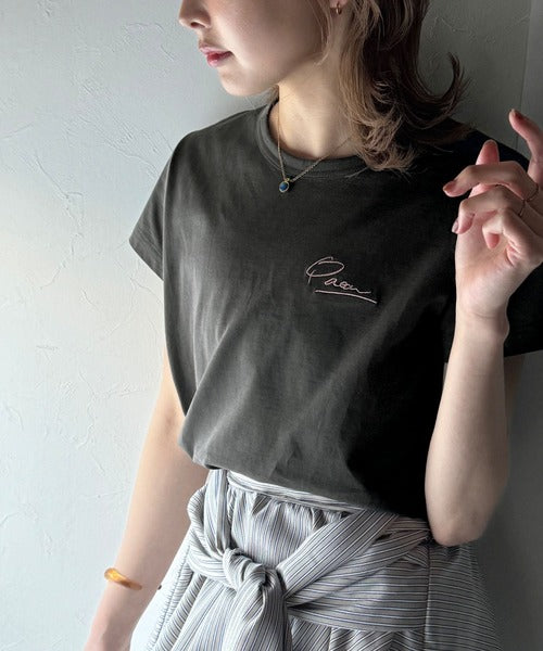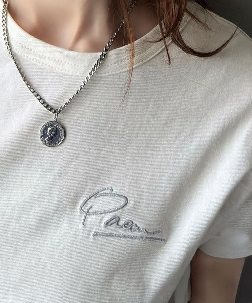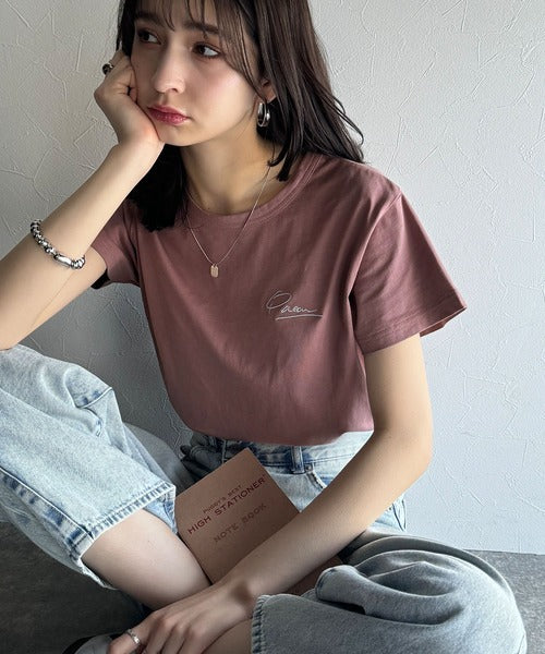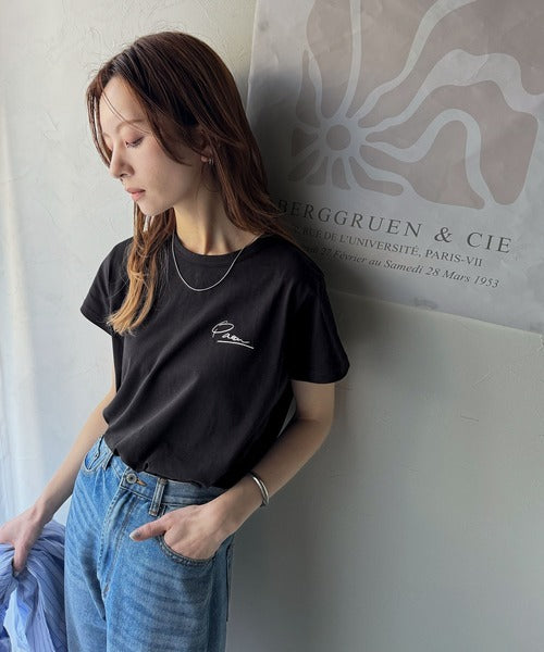 【sustaina+】こなれ感たっぷり。オーガニックコットン100%胸元PAEAN刺繍Tシャツ(半袖) ce1260401