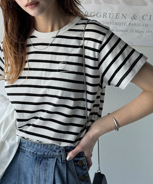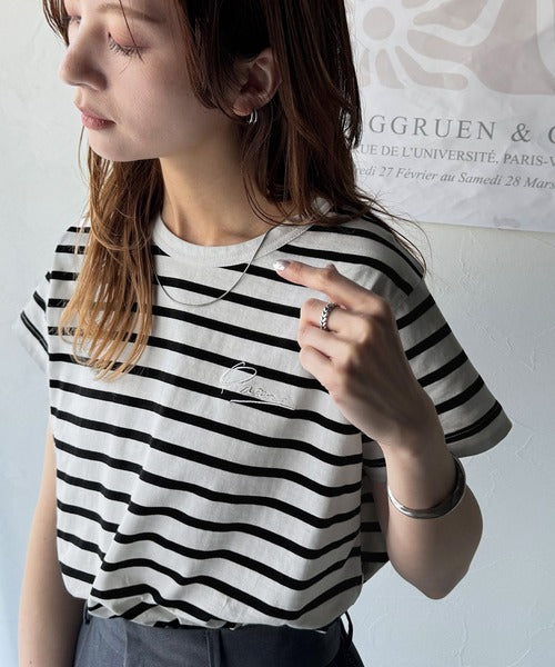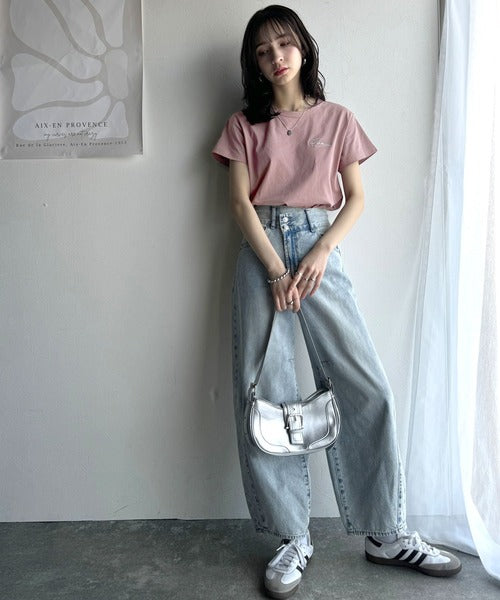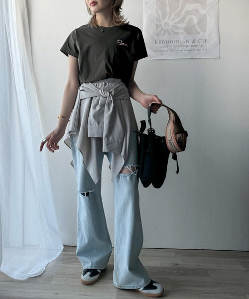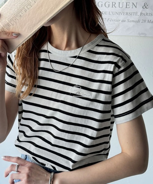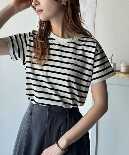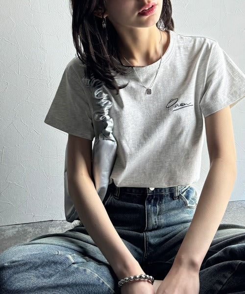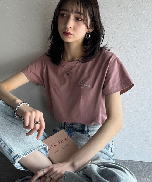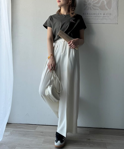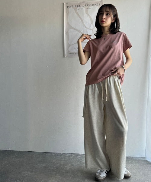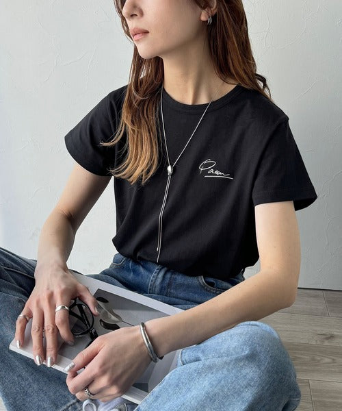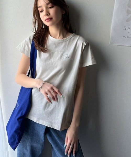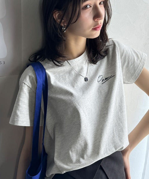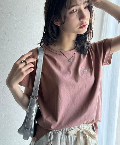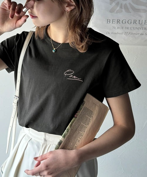 【sustaina+】こなれ感たっぷり。オーガニックコットン100%胸元PAEAN刺繍Tシャツ(半袖) ce1260401