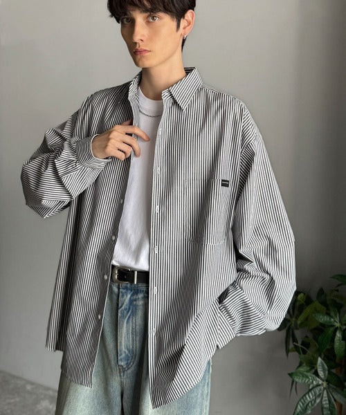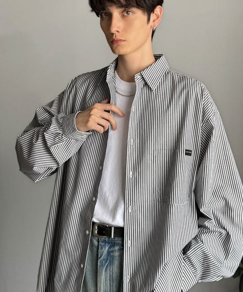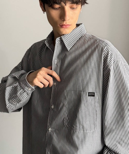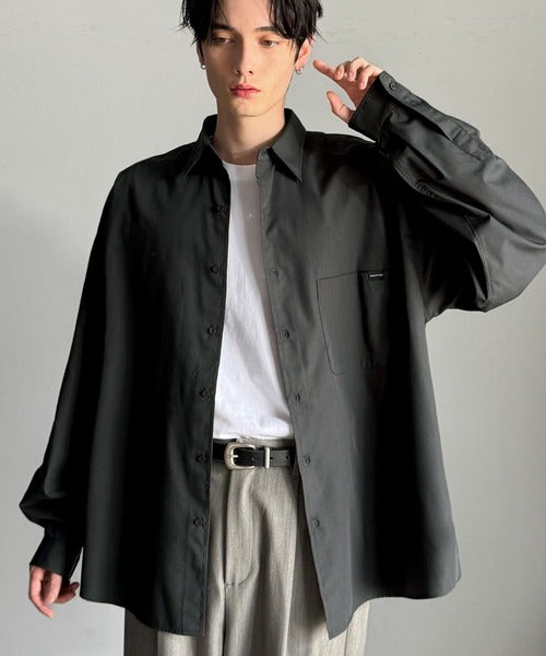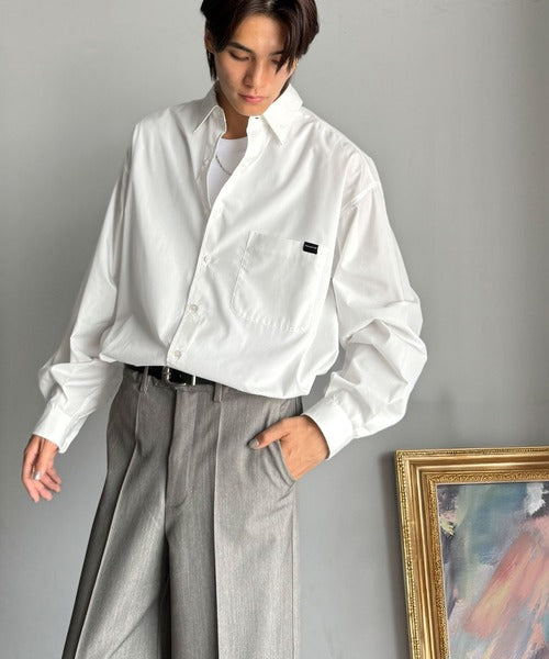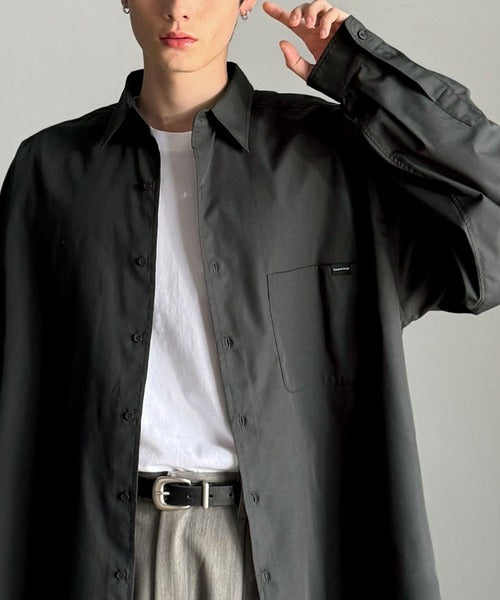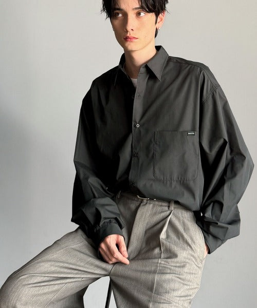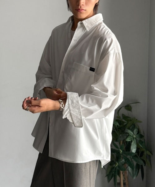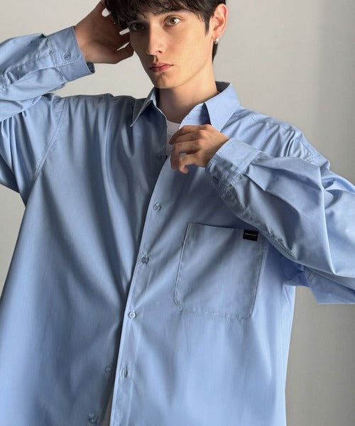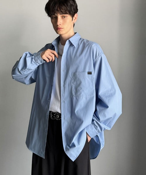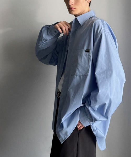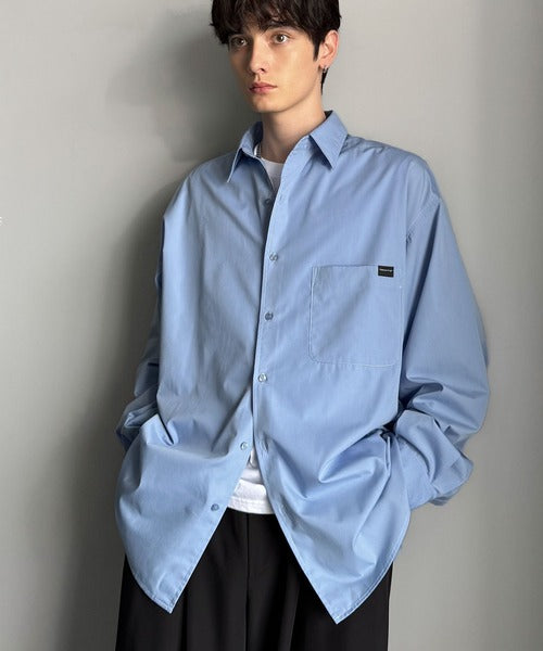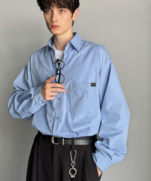 【Classical Origin】ゆとりを着る。ネーム付き胸ポケットビッグシャツ(長袖)/Brand name & chest pocket long sleeved big shirt ao1110147