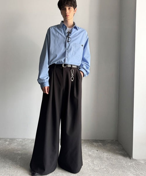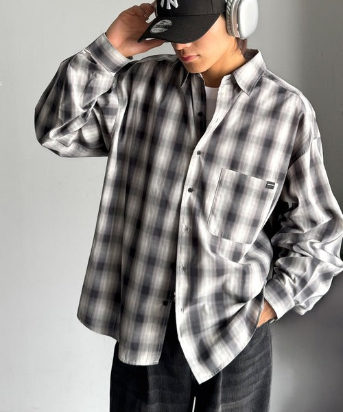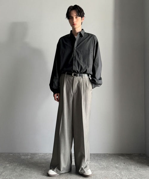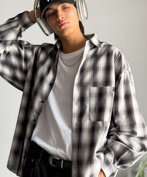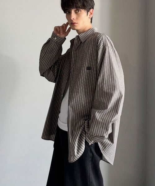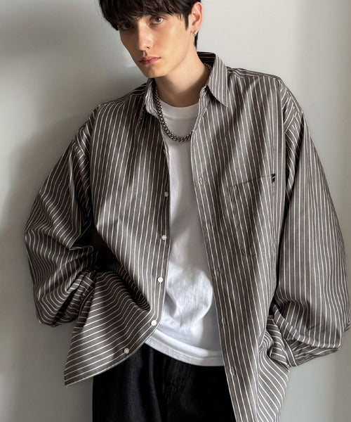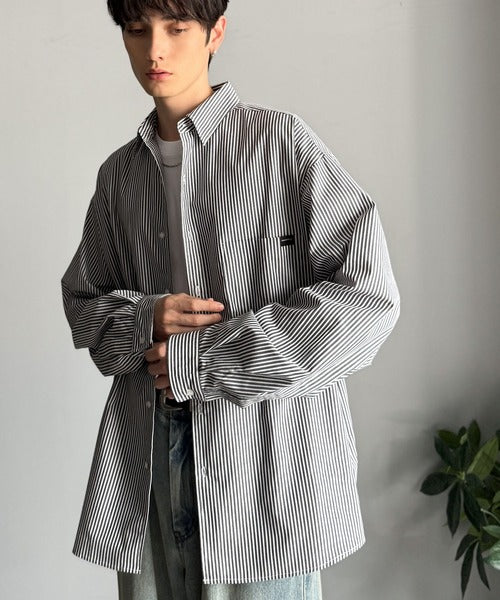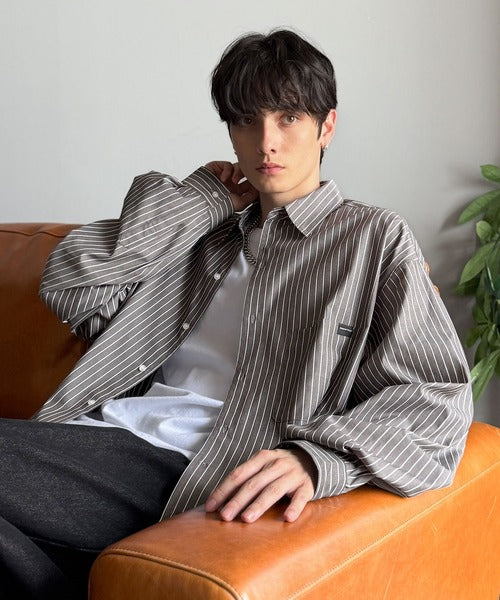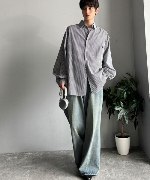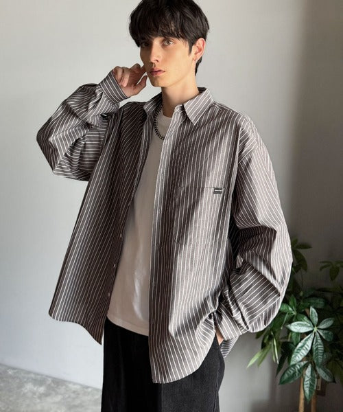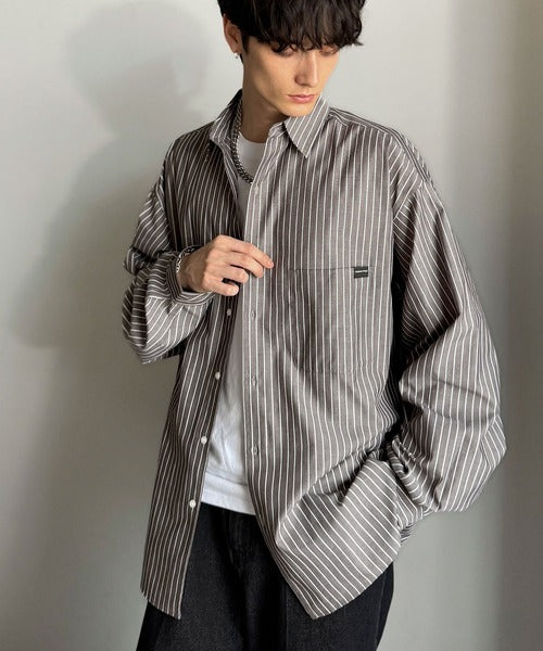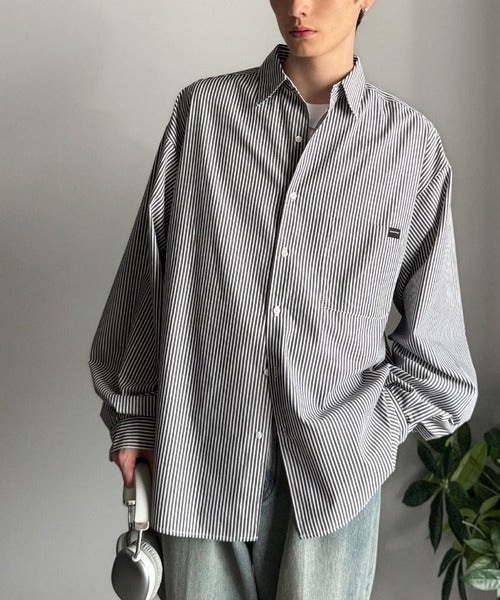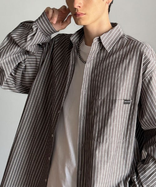 【Classical Origin】ゆとりを着る。ネーム付き胸ポケットビッグシャツ(長袖)/Brand name & chest pocket long sleeved big shirt ao1110147